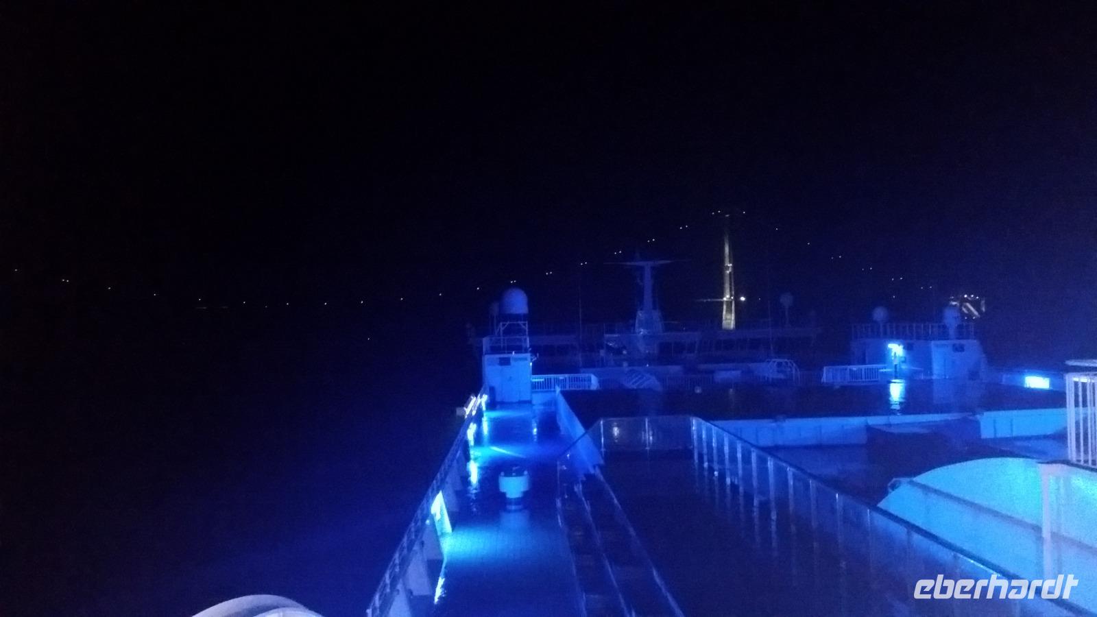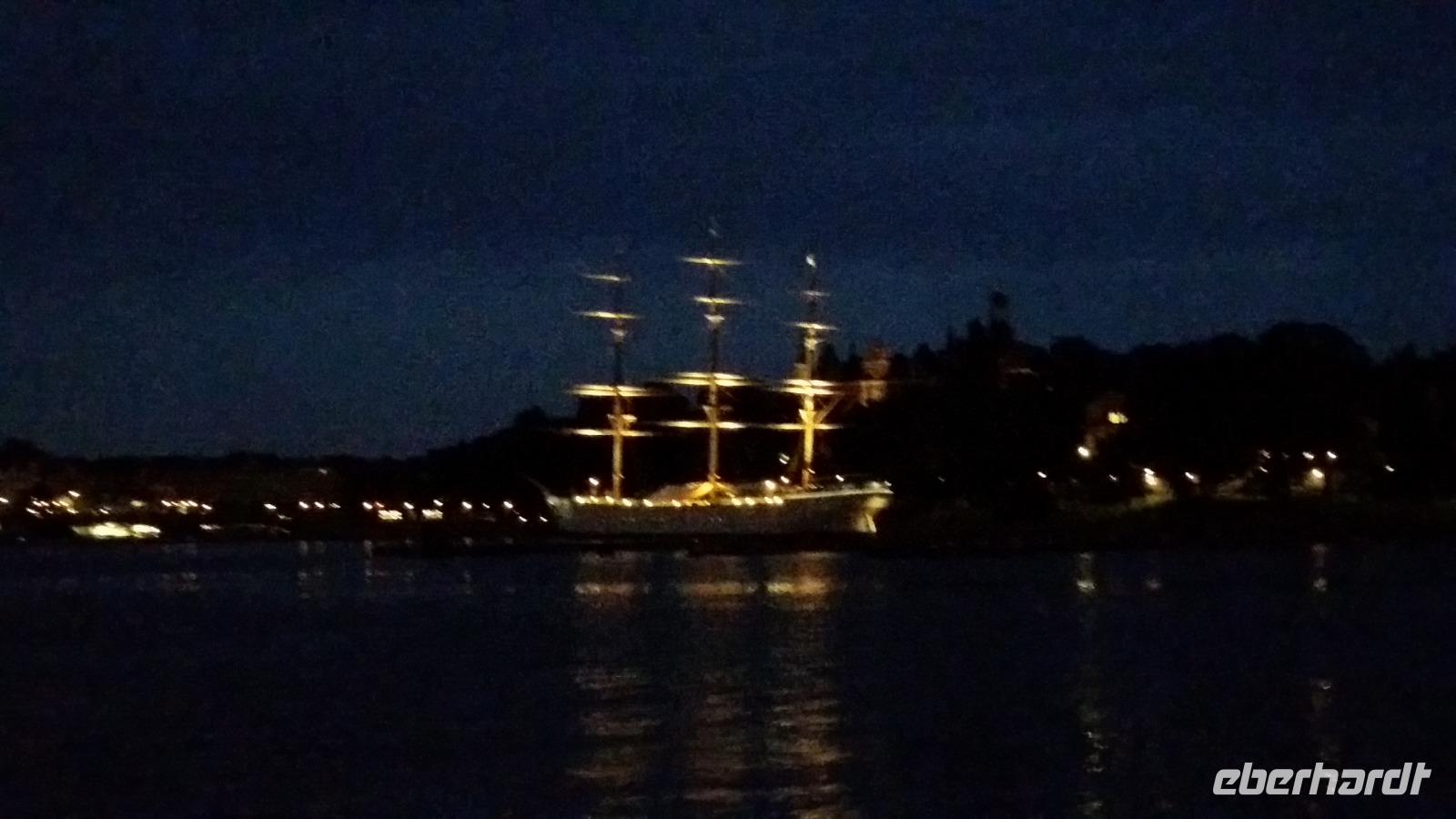 Trotz eines kleinen Schreckmoments (abgelaufener Personalausweis), dürfen dann doch alle Gäste mit nach Schweden reisen.Während des Abendessen laufen wir aus Kiel aus, begleitet von zahlreichen sehenswerten Segelschiffen. Leider verschlechtert sich das Wetter.