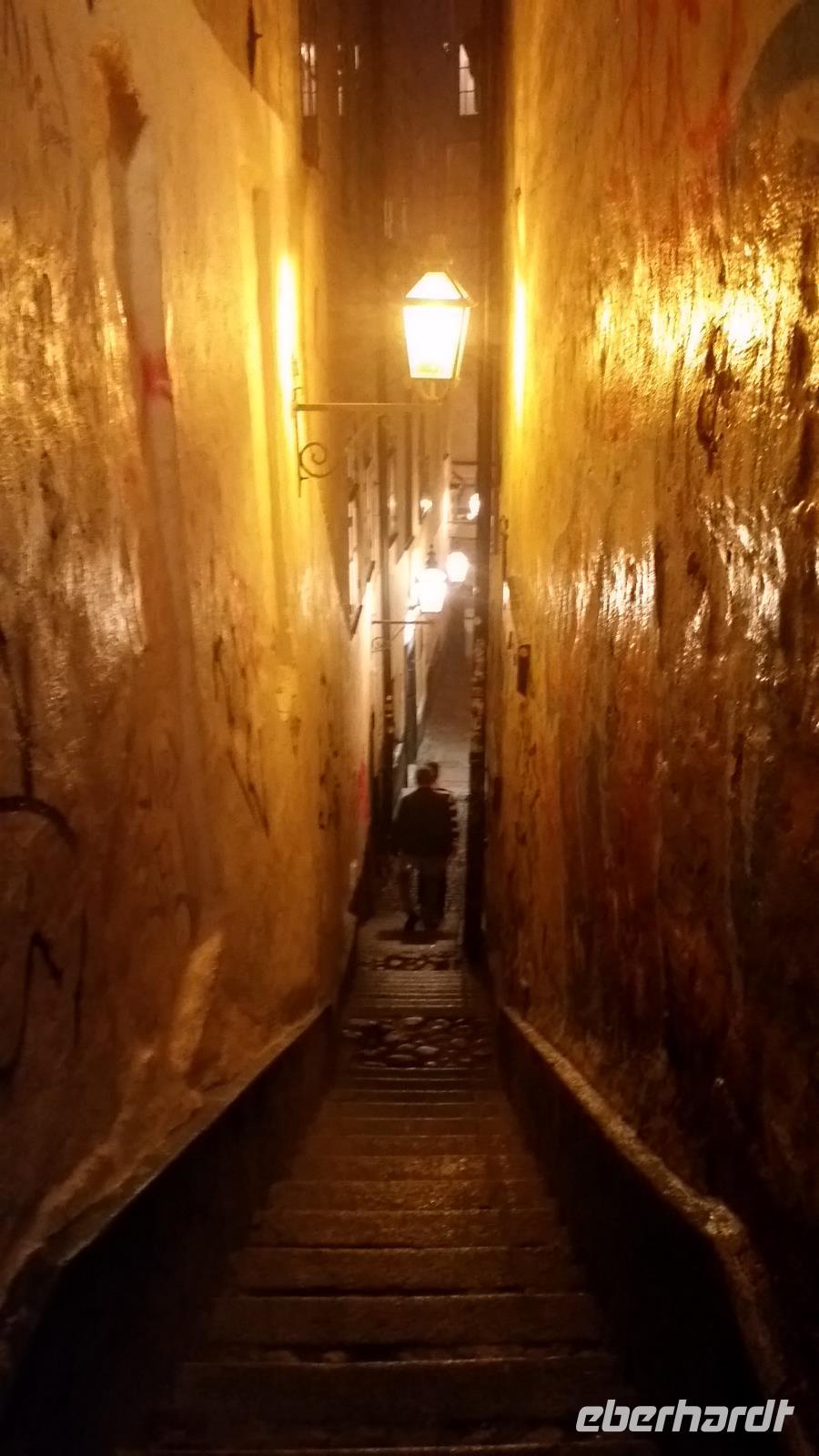 Die Hälfte der Gruppe findet sogar noch Kraft für einen gemeinsamen Spaziergang durch die schöne Altstadt von Gamla Stan, Stockholm.