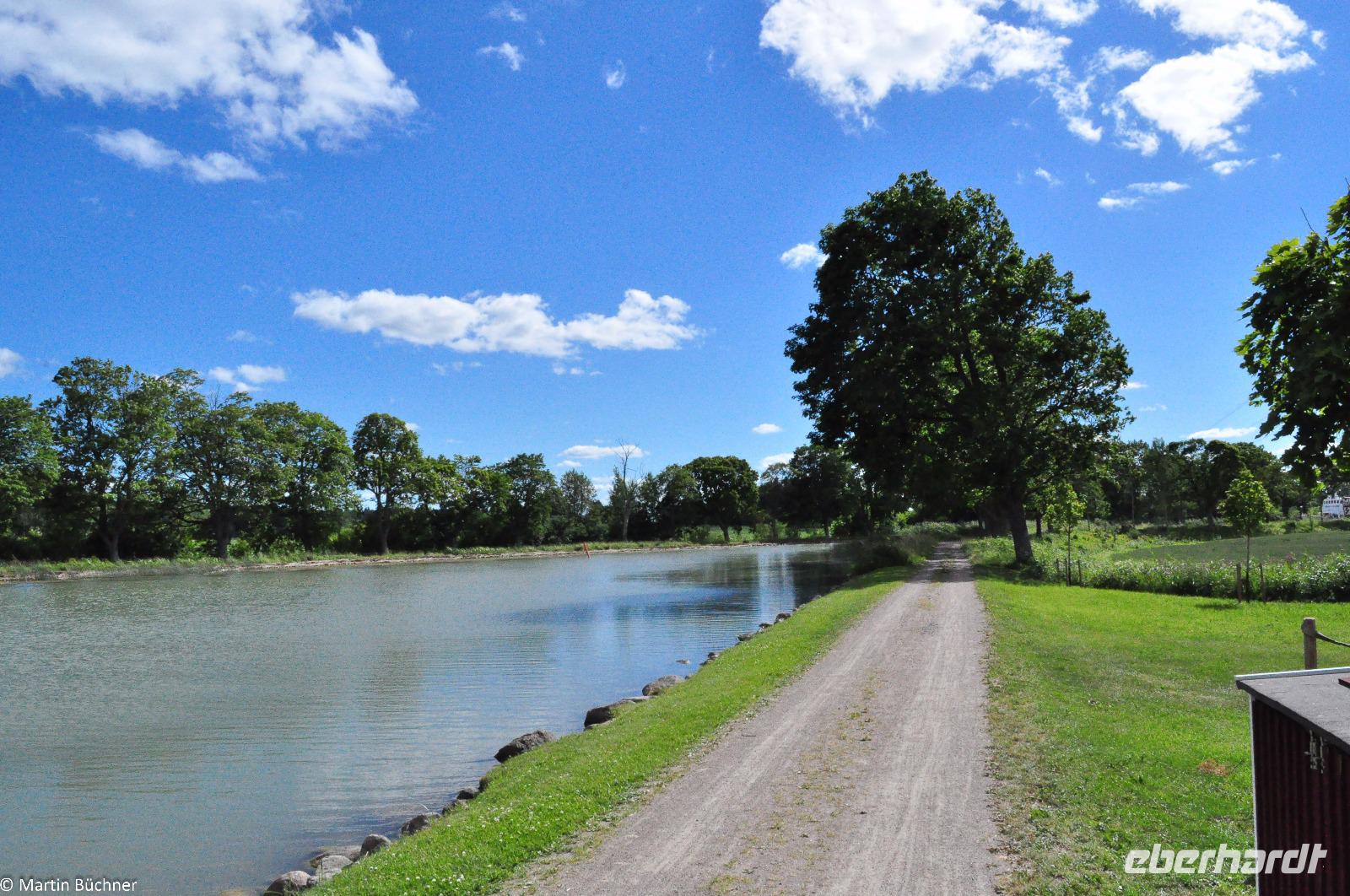 Von hier starten wir zu unserer Radtour entlang des Kanals. Bis Borensberg folgen wir einer asphaltierten Nebenstraße. Im ersten Teil der Etappe wird der Göta Kanal durch den natürlichen See „Boren" gebildet.