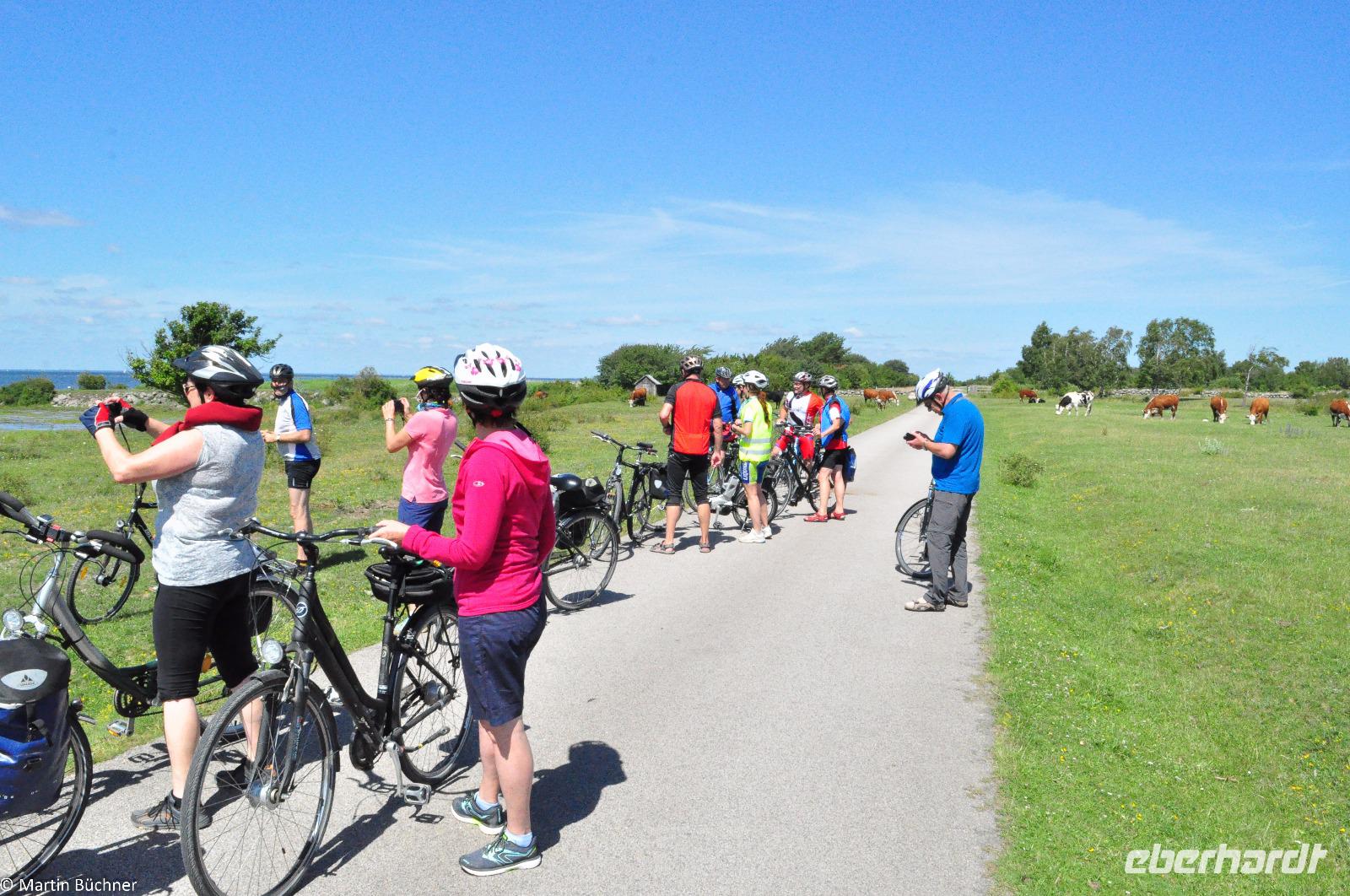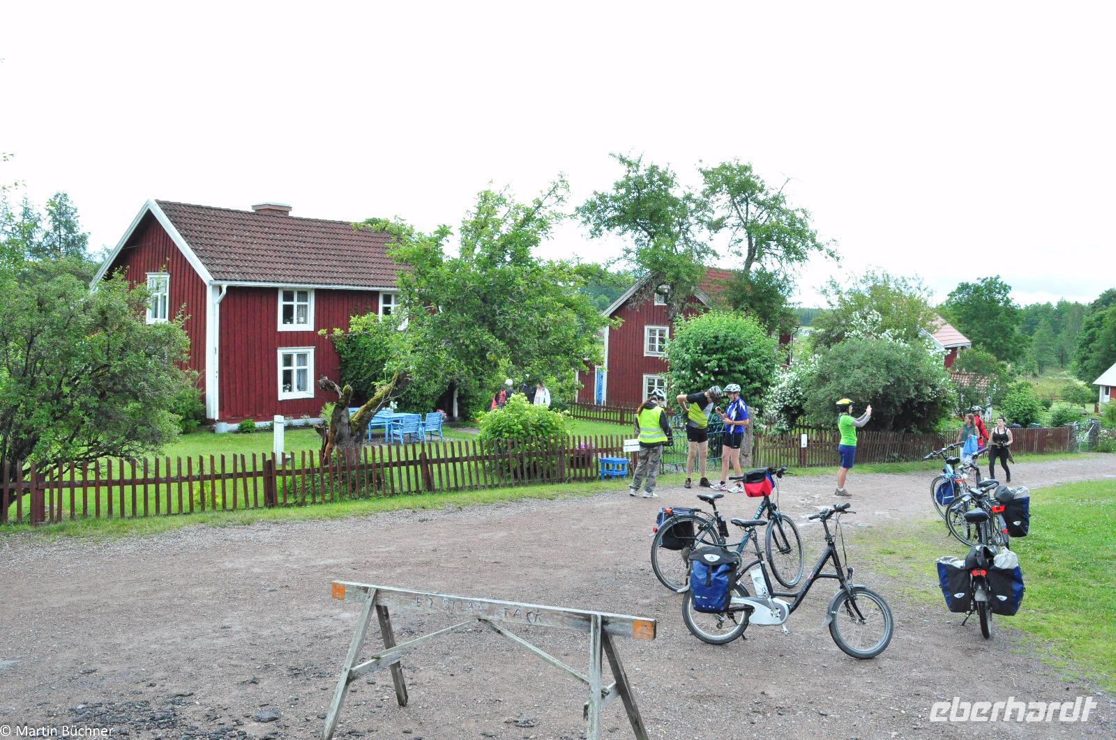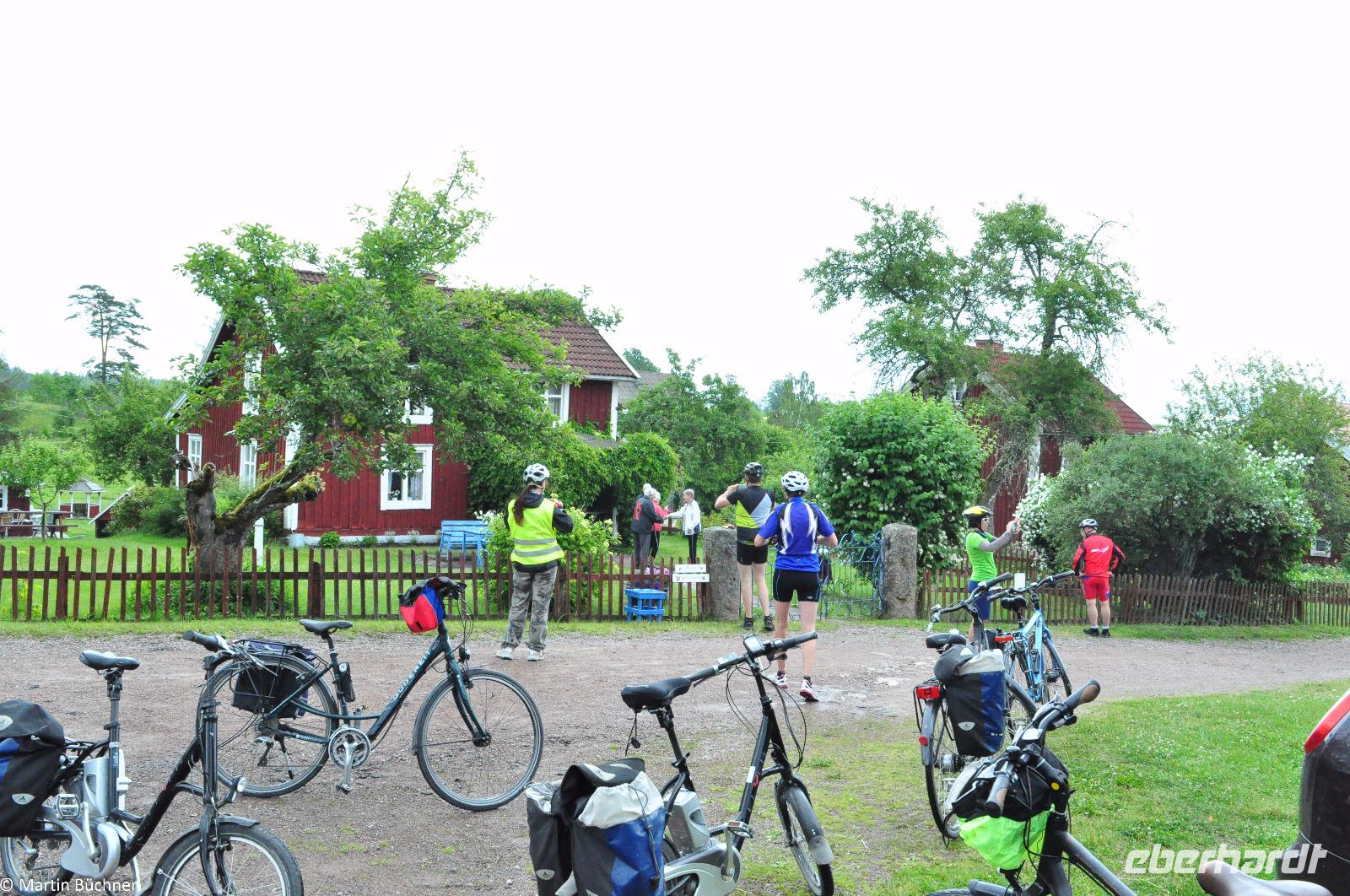 Da es zu Beginn der Etappe in Pelarne regnet, verzichtet eine Mehrheit auf die heutige Radetappe. Die verbliebenen Gäste sind an diesem Tag um so motivierter. Auf Wunsch jenes harten Kerns gibt es einen zusätzlichen Abstecher mit einigen Extra-Kraftanstiegen und einigen tollen Abfahrten nach Lönneberga und zurück nach Sevedstorp.