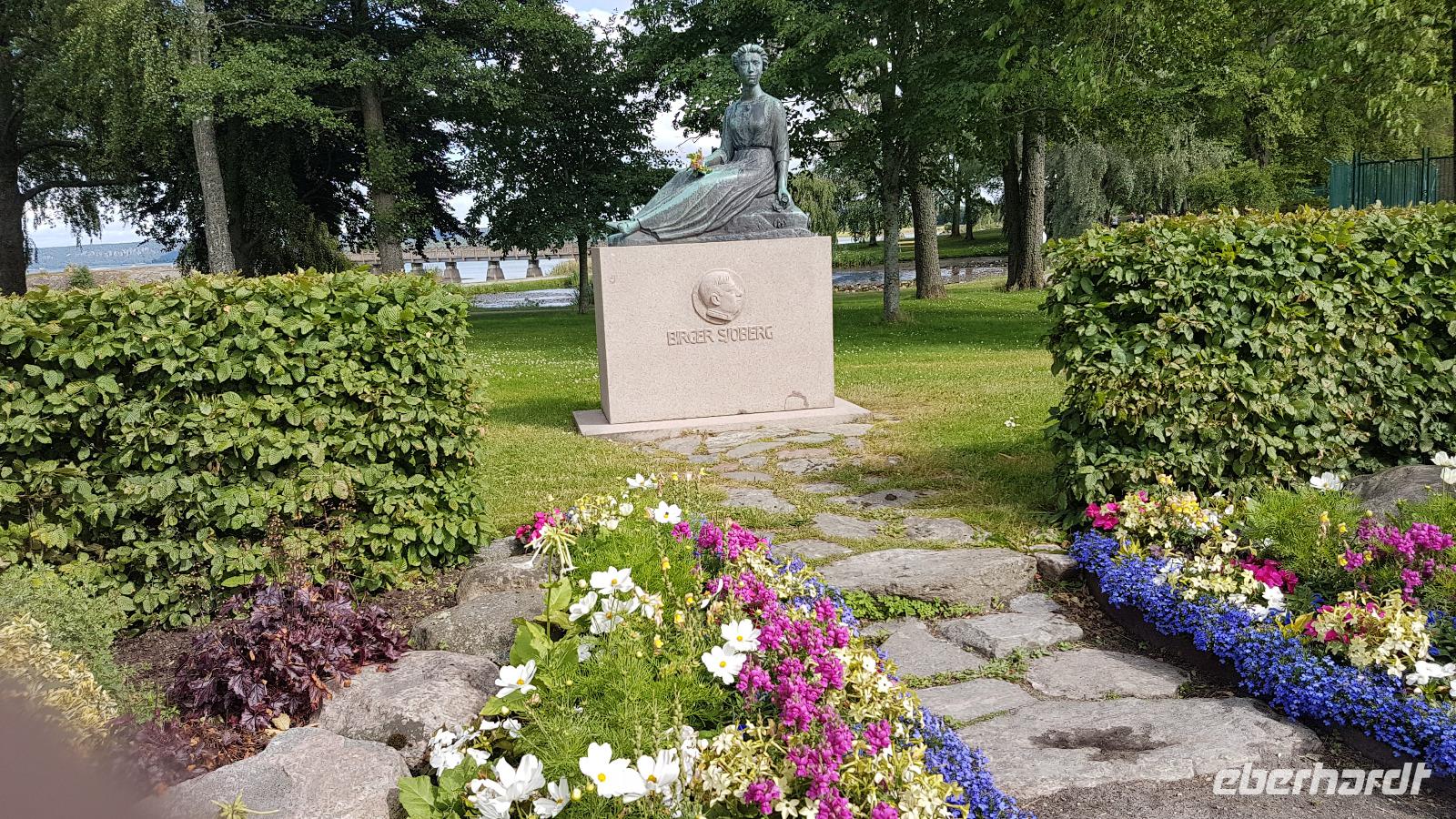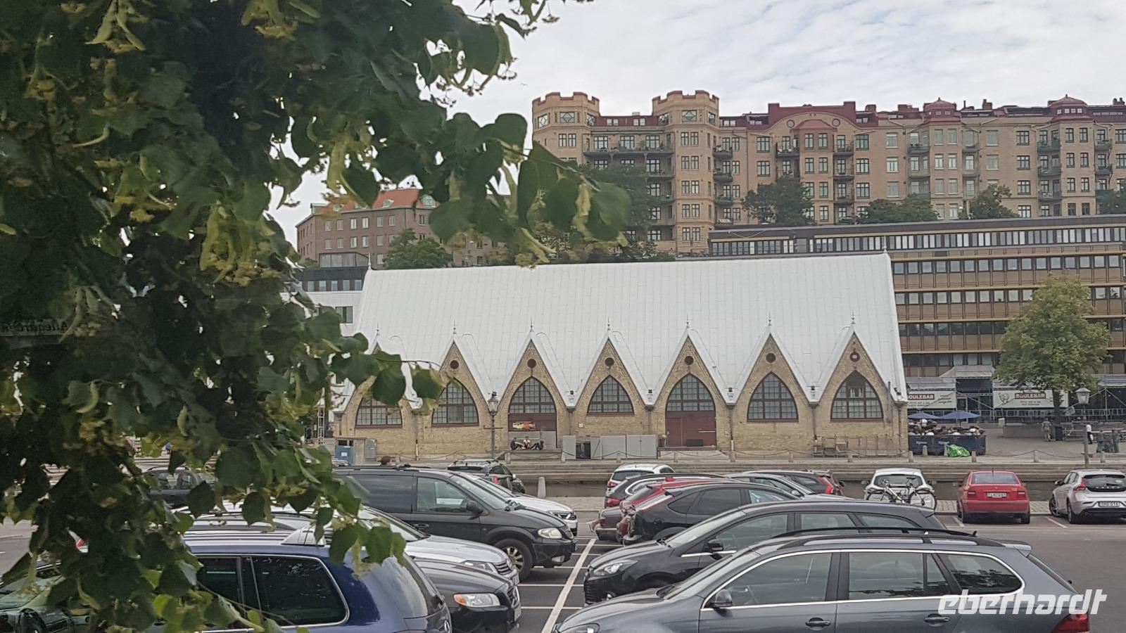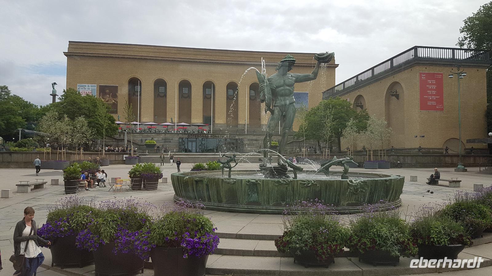 Wir fuhren auf einen Hügel hinauf zur Masthuggskirche und besichtigten den eindrucksvollen Sakralbau. Die Kirche feierte unlängst ihr 100-jähriges Jubiläum. Sie ist im nationalromantischen Stil gebaut, die hölzernen Decke aus Fichtenholz. Es hat die Form eines Schiffsrumpfes. Von diesem Hügel aus hat man einen phantastischen Blick überdies Stadt. Wir fahren durch verschiedene Stadtviertel, am Theater vorbei und dem Botanischen Garten. Am Gustav- Adolf- Platz erkunden wir die Umgebung zu Fuß.
