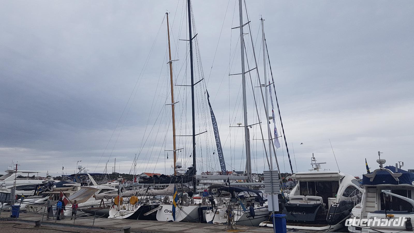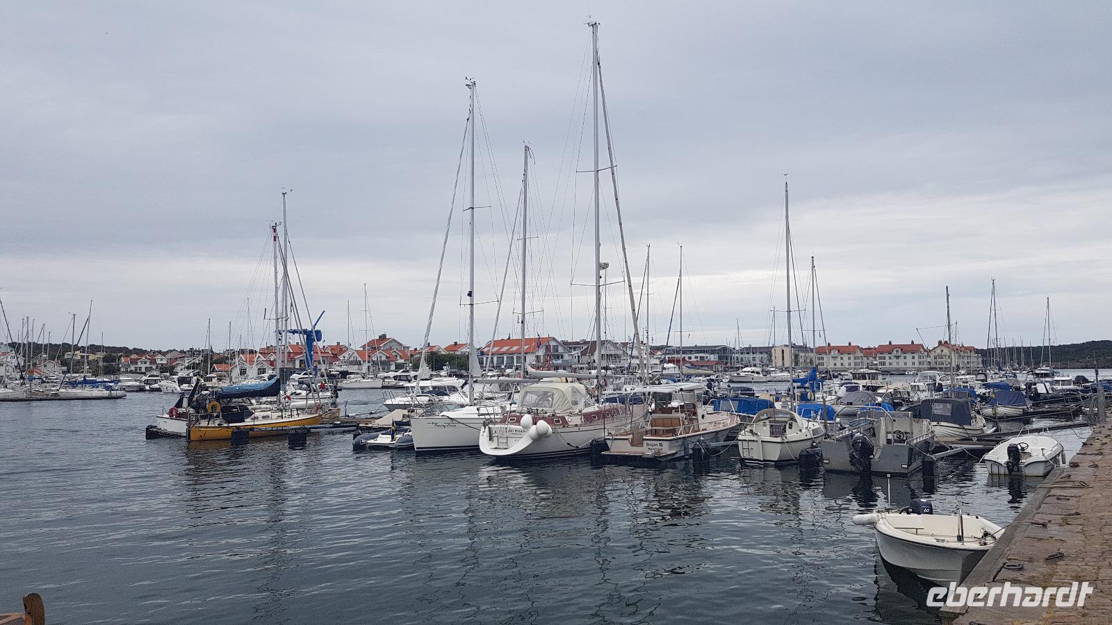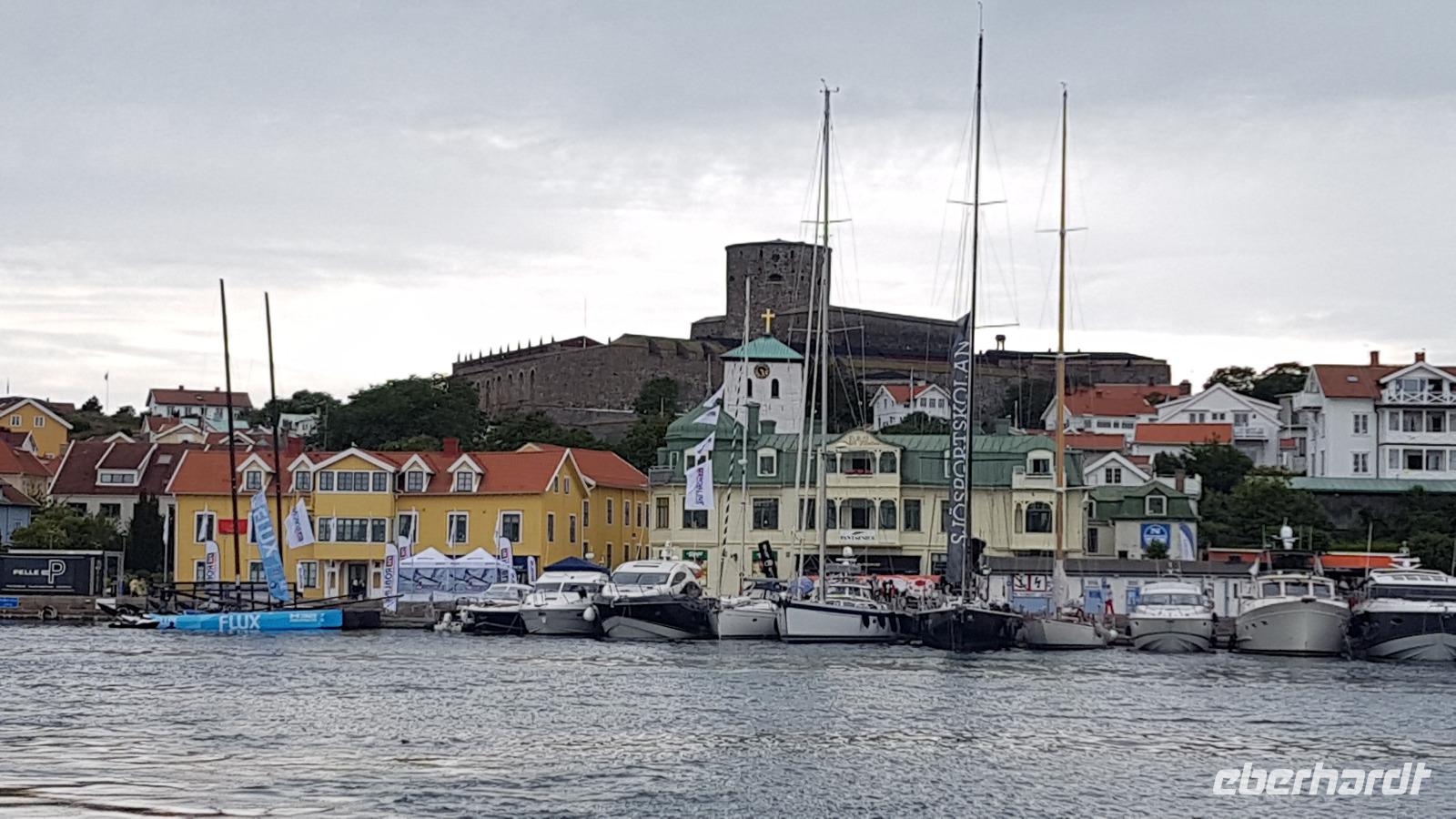 Am Nachmittag fuhren wir nach Marstrand, eine Kleinstadt etwa 30 km nordwestlich von Göteborg auf den Inseln Marstrandsö. Die mächtige Festung „Carlsten" liegt auf der Anhöhe hinter der Stadt. Wir erreichen die autofreie Insel mit der Fähre. Bei herrlichem Sonnenschein sind viele Menschen unterwegs. Ein Segel-Cup findet gerade statt.