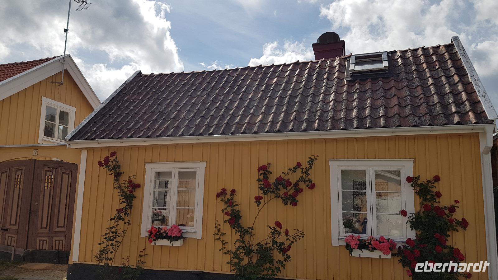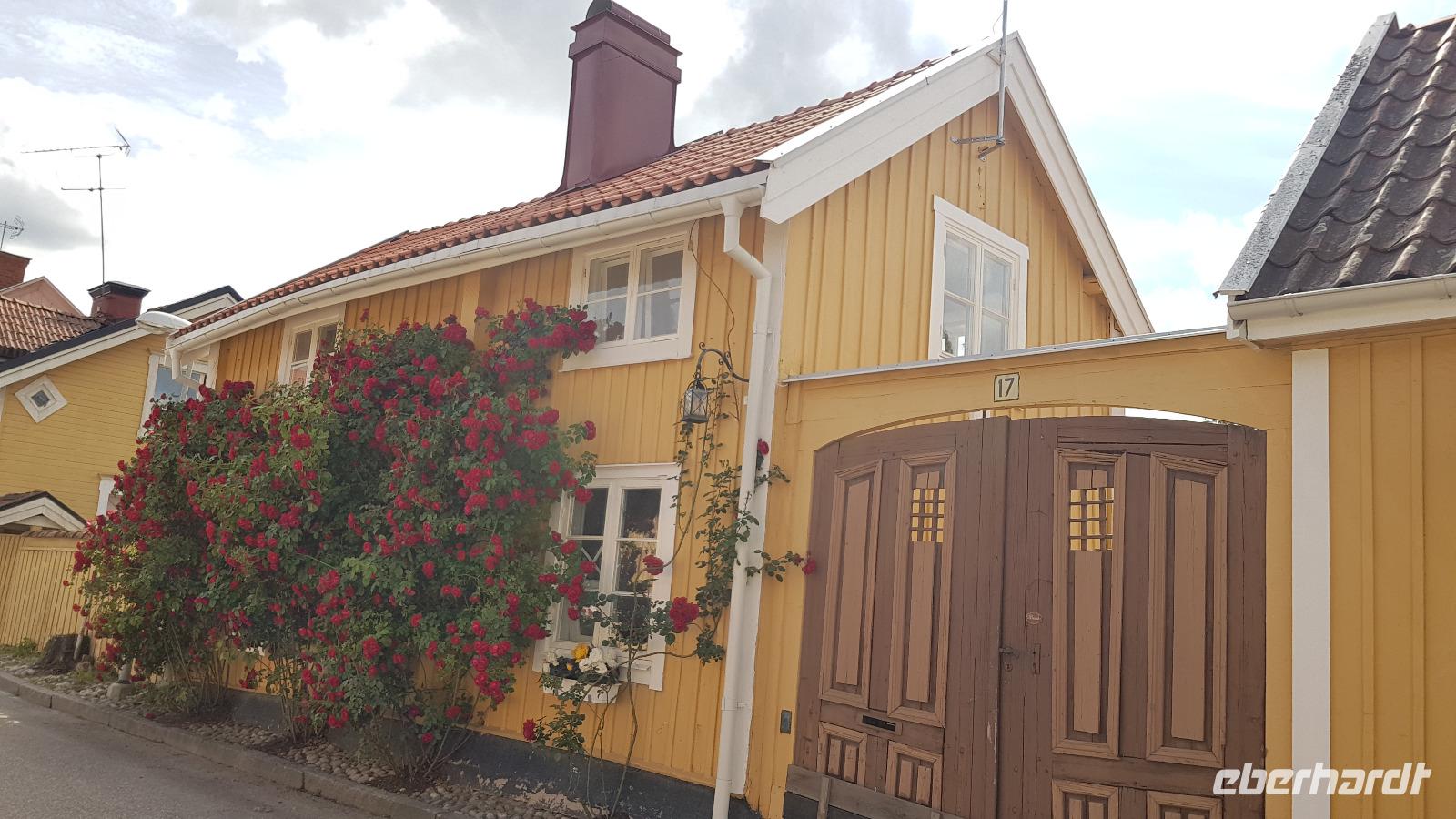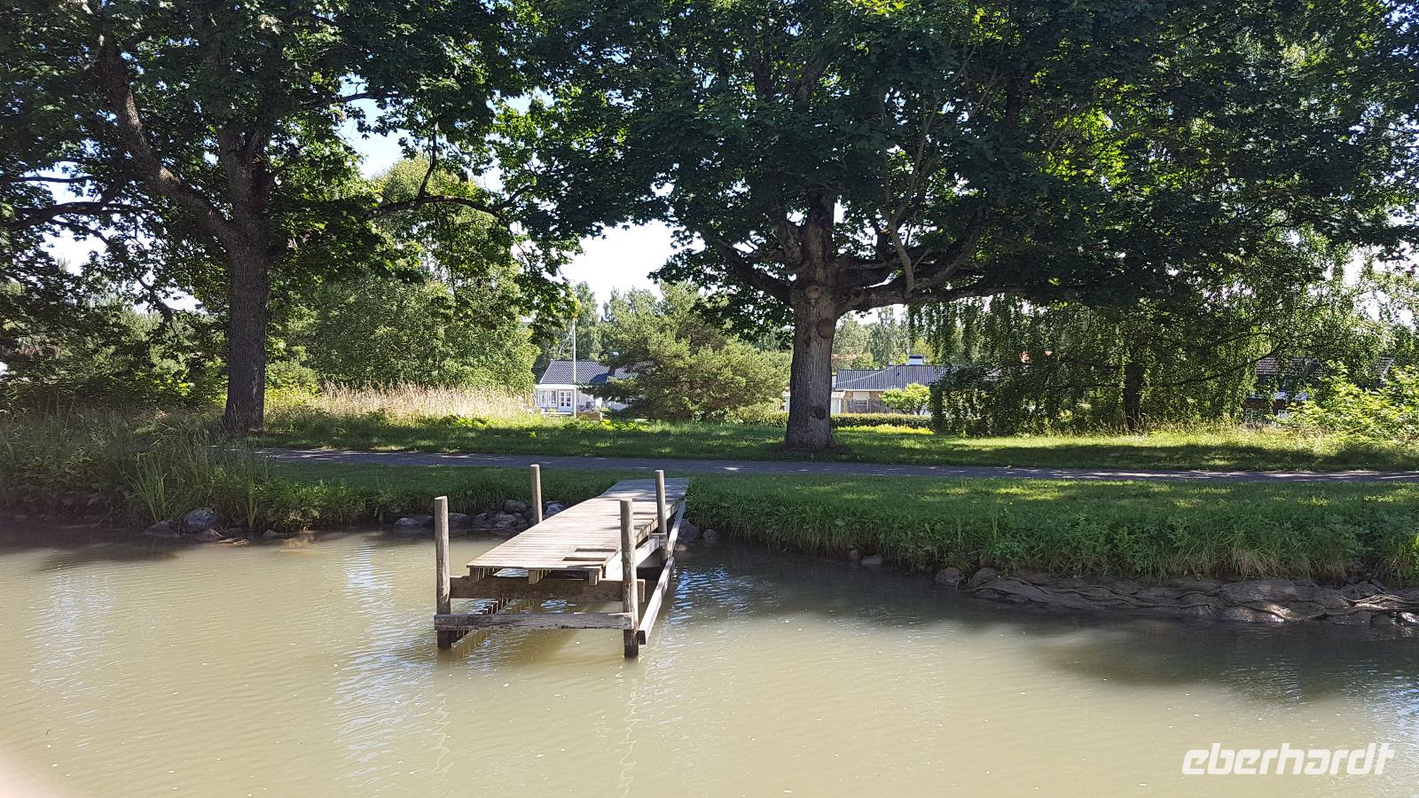 Gleich nach dem Frühstück fuhren wir bei herrlichem Sonnenschein von unserem Hotel nach Håverud am Dalsland-Kanal. Das ist eine künstliche Wasserstraße, die den See Vänern mit einer Reihe von Seen der historischen Provinz Dalsland und dem westlichen Värmland verbindet. Der Kanal wurde zwischen 1864 und 1868 angelegt. Das gesamte System ist etwa 254 km lang, wobei aber nur 12 km neu gegraben oder aus dem Fels gesprengt wurden. Boote, die den Kanal durchfahren, gelangen dabei durch zwölf Schleusen und beim Ort Håverud über eine markante Trogbrücke, die Stromschnellen überbrückt. Der gesamte Höhenunterschied des Kanals beträgt 66 Meter. Wir schippern drei Stunden durch enge Kanäle, alte Schleusen und durch schöne Seenlandschaft. Der Blick öffnet sich immer wieder auf einzelne Gehöfte oder Dörfer mit bunten Holzhäusern. Anschließend fuhren wir noch in das Städtchen Vänersborg, um mit einem kleinen Ortsbummel den Tag entspannt ausklingen zu lassen.