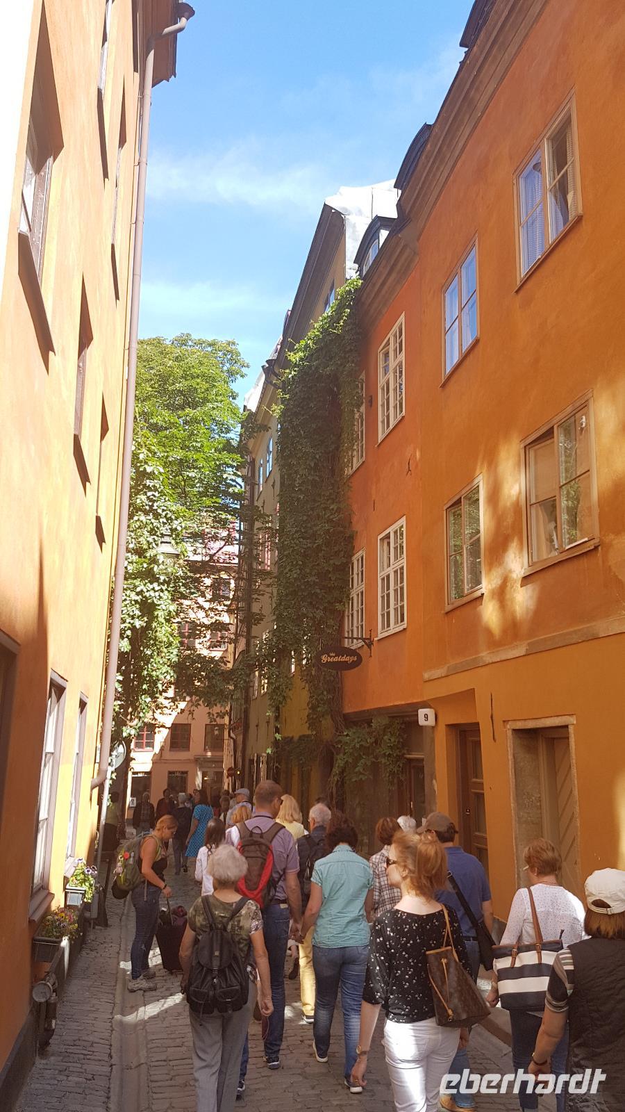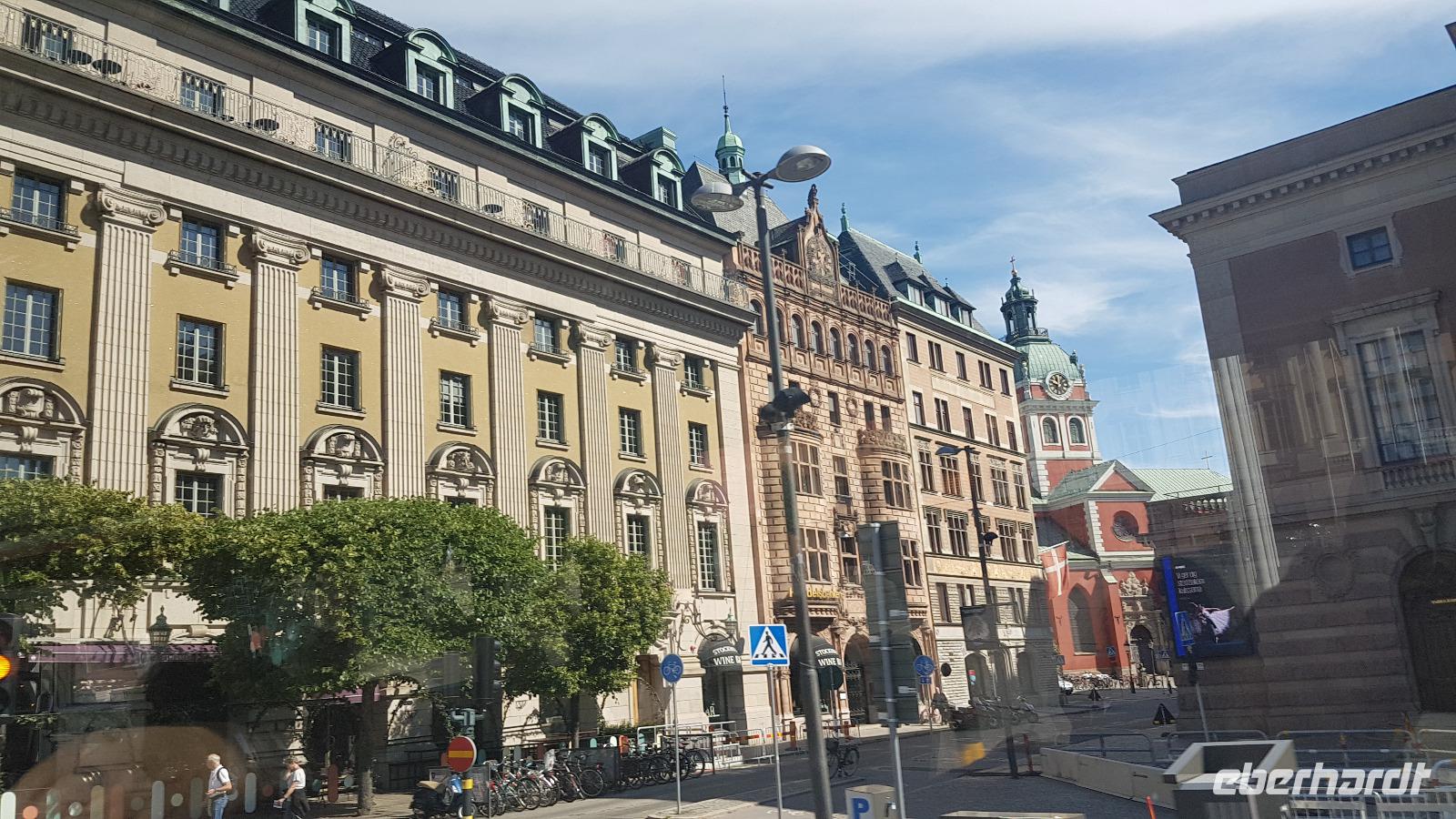 Nach kurzer fahrt ins Zentrum von Stockholm, trafen wir unsere Stadtführerin, Alexa. Auf der Rundfahrt erleben wir das auf mehreren Inseln liegende Stockholm „ Das Venedig des Nordens". Unser Weg führt vorbei an prächtigen Jugendstilbauten aus der Gründerzeit, dem Viertel wo die Ländervertretungen, die Botschaften stehen zur Insel Djurgarden. Die Museumsinsel werden wir am Nachmittag zur Besichtigung eines der Museen wieder ansteuern. Wir besichtigen die Altstadt, sehen uns unter anderem den Marktplatz und die deutsche Kirche an. Pünktlich zur Wachablösung sind wir am Königlichen Schloss. Das wollten wir nicht verpassen. Viele Bilder werden geknipst. Danach lockt es viele Gäste in die Innenstadt zu einem Shopping-Bummel.