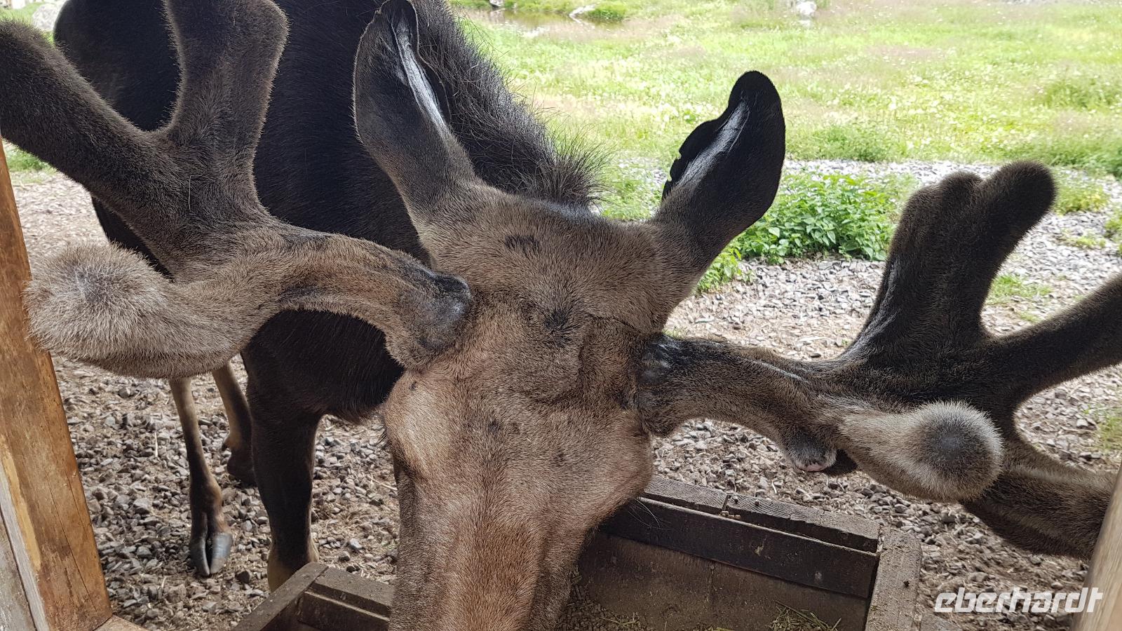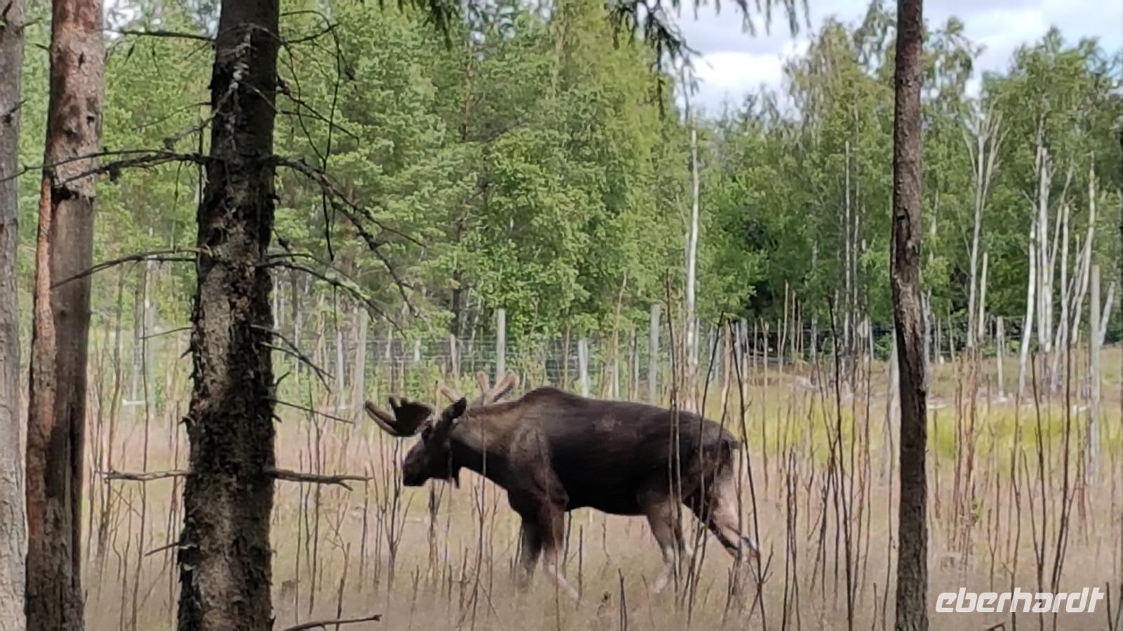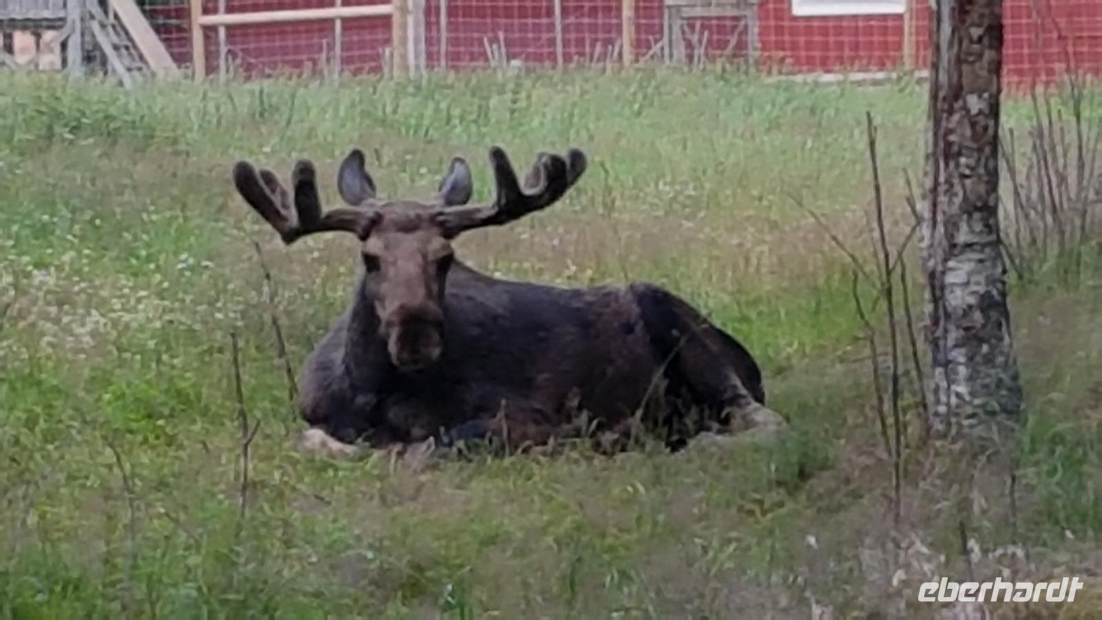 Danach fahren wir in den Elchpark. Auf einem Rundwanderweg durch den Wald, sehen wir nun die Könige der skandinavischen Tierwelt. So groß haben wir uns die größte Hirschart gar nicht vorgestellt. Nach dem Spaziergang grillen wir unsere Elchwurst am offenen Feuer.