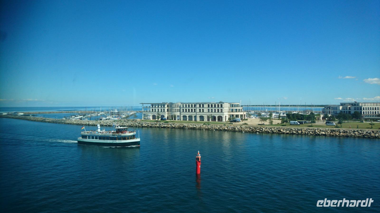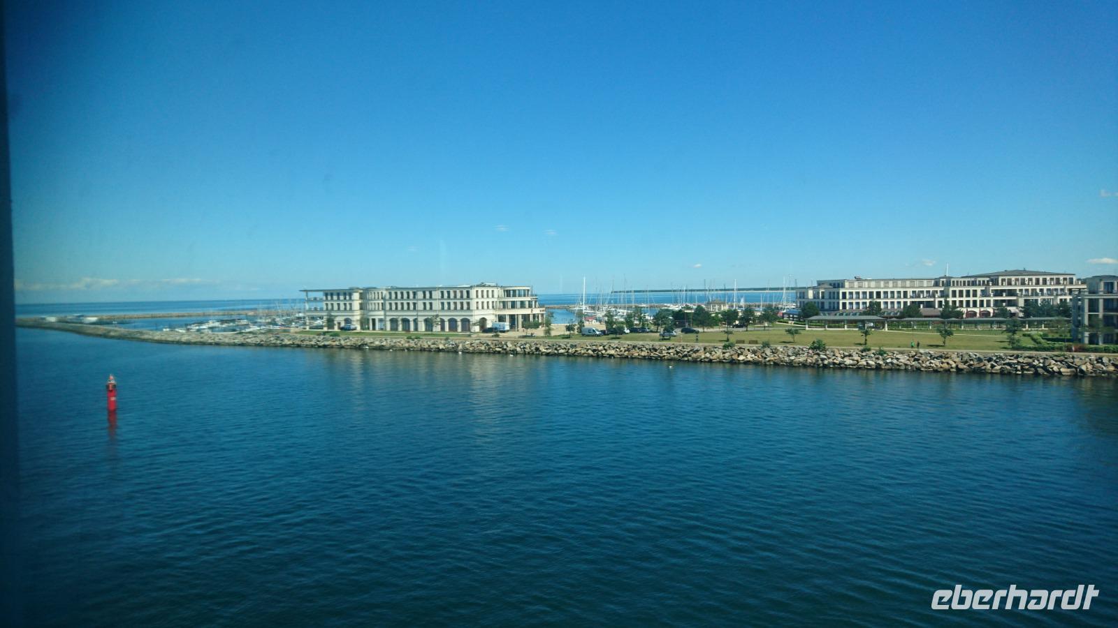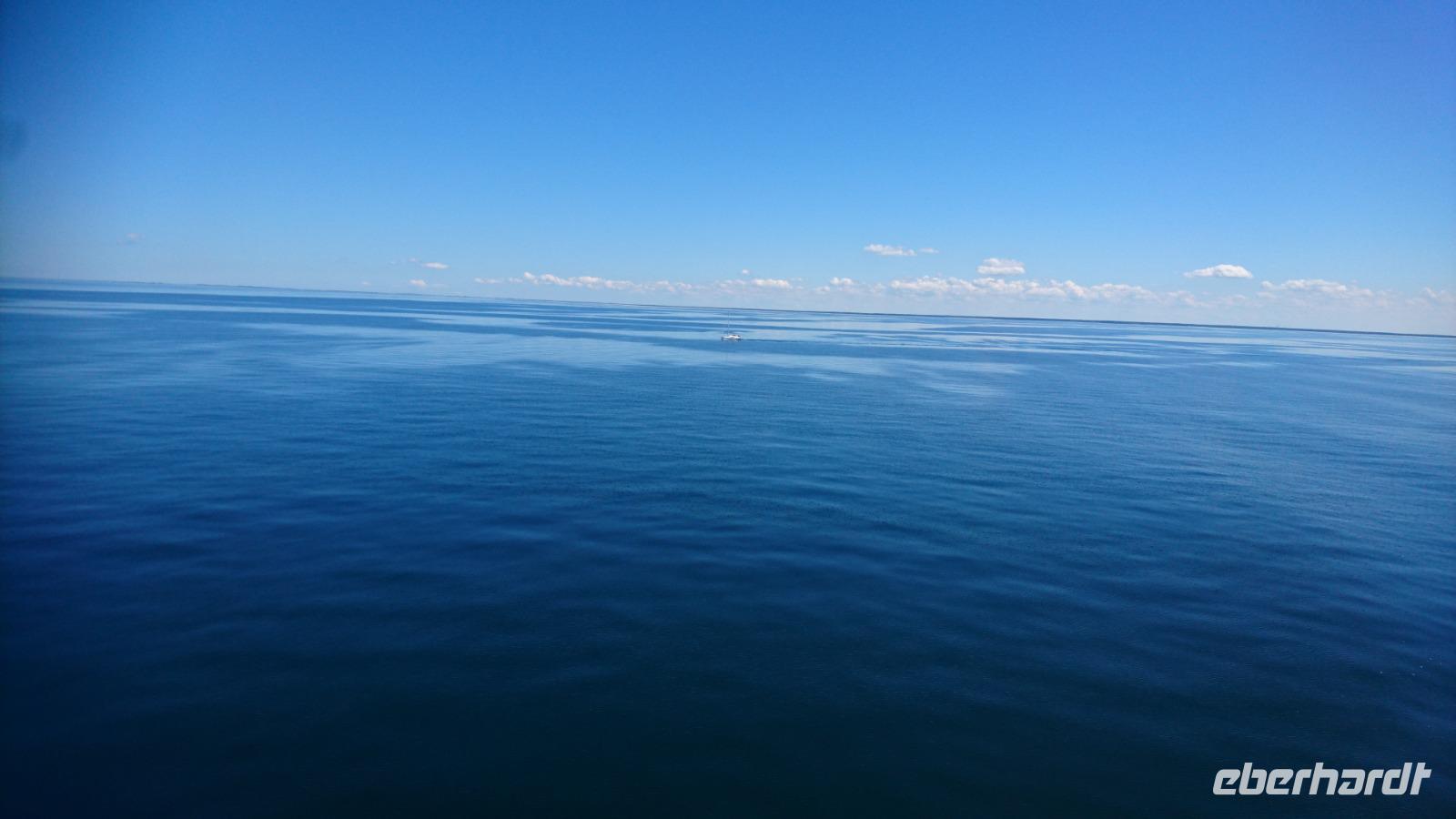 Gleich nach dem Einchecken gingen wir aufs Frühstücksdeck und genossen das Bordfrühstück mit der schönen Aussicht auf die wiedermal spiegelglatte Ostsee.