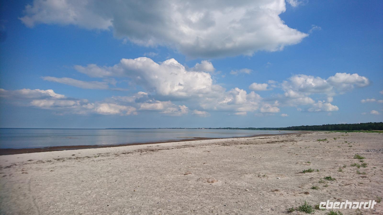 Die Ostsee war heute spiegelglatt, der Himmel azurblau, perfektes Urlaubswetter eben. In Gedser angekommen stellten wir fest, daß es von den Temperaturen her überhaupt keinen Unterschied zum heißen Deutschland gab, die 29 Grad, die in Dresden viele zum Schwitzen gebracht hatten, herrschten auch in Dänemark und ebenfalls die Landschaft sah aus, als ob wir in Mecklenburg weiter fahren würden. Nur die immer wieder vereinzelt auftauchenden roten Holzhäuser erinnerten daran, daß wir in Skandinavien angekommen waren.