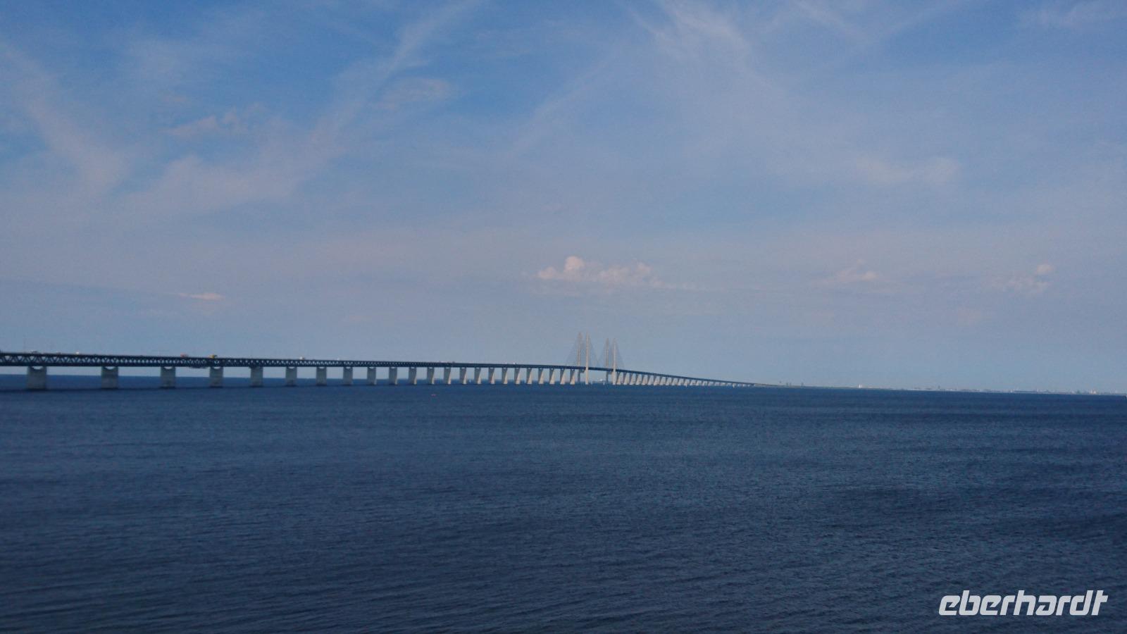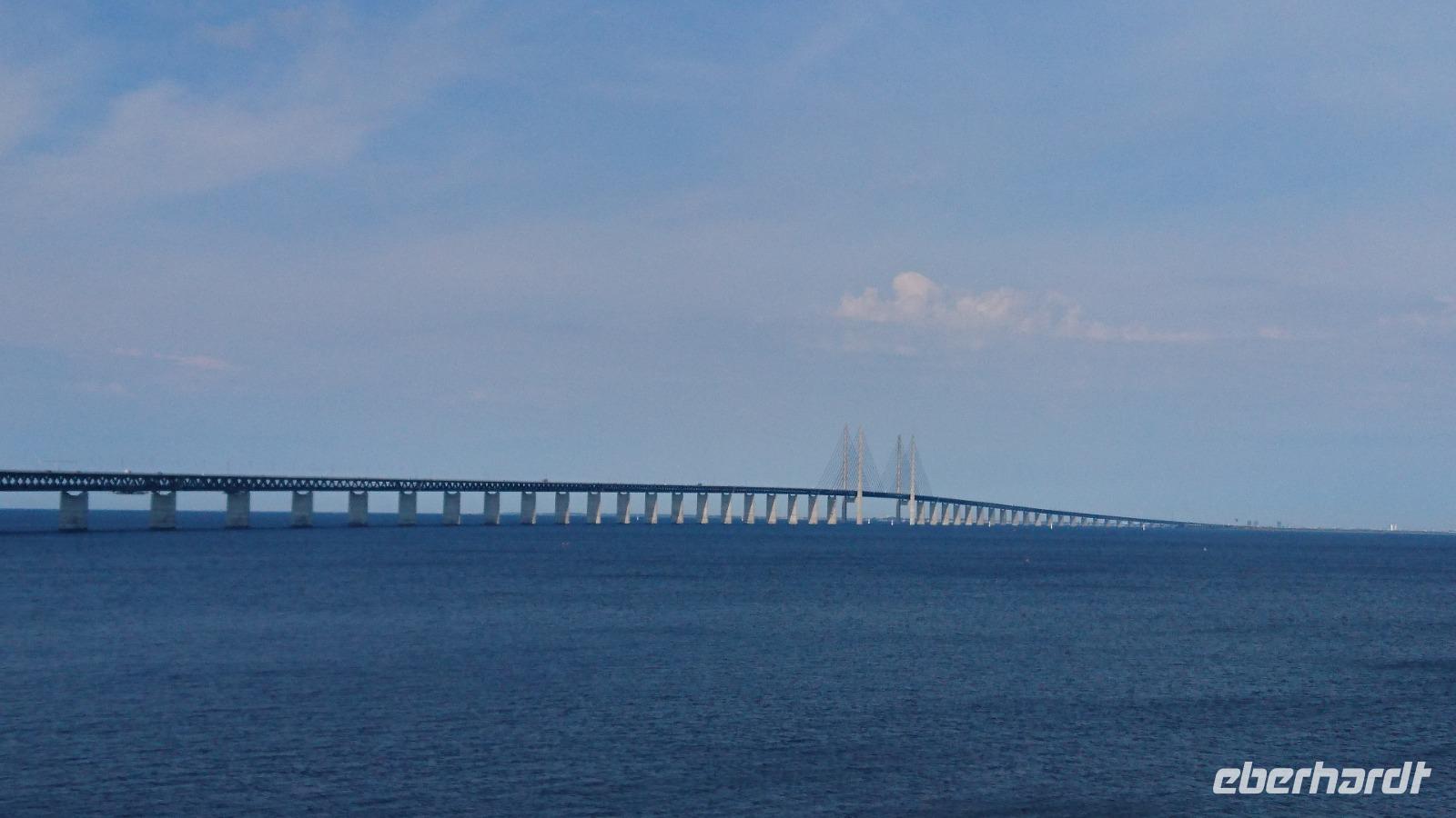 Spektakulär ist es, wenn man wie wir von Dänemark kommt und zuerst durch den Öresundtunnel fährt, der dann mitten im Wasser nach oben kommt, was von der Vogelperspektive so aussieht, als würden die Züge, Autos und Busse mitten aus dem Meer wie aus dem Nichts aufsteigen. Seit Juli 2000 ist diese Brücke, die 1 Milliarde Euro Baukosten verschlungen hat, die schnellste und bequemste Verbindung zwischen den Ländern übers Wasser und so hielten wir auf der schwedischen Seite in Linhamn an, um diesen Anblick nochmal in voller Pracht also Panoramablick genießen zu können.