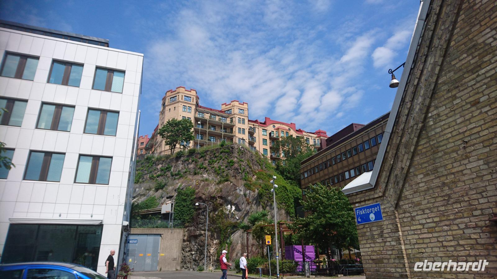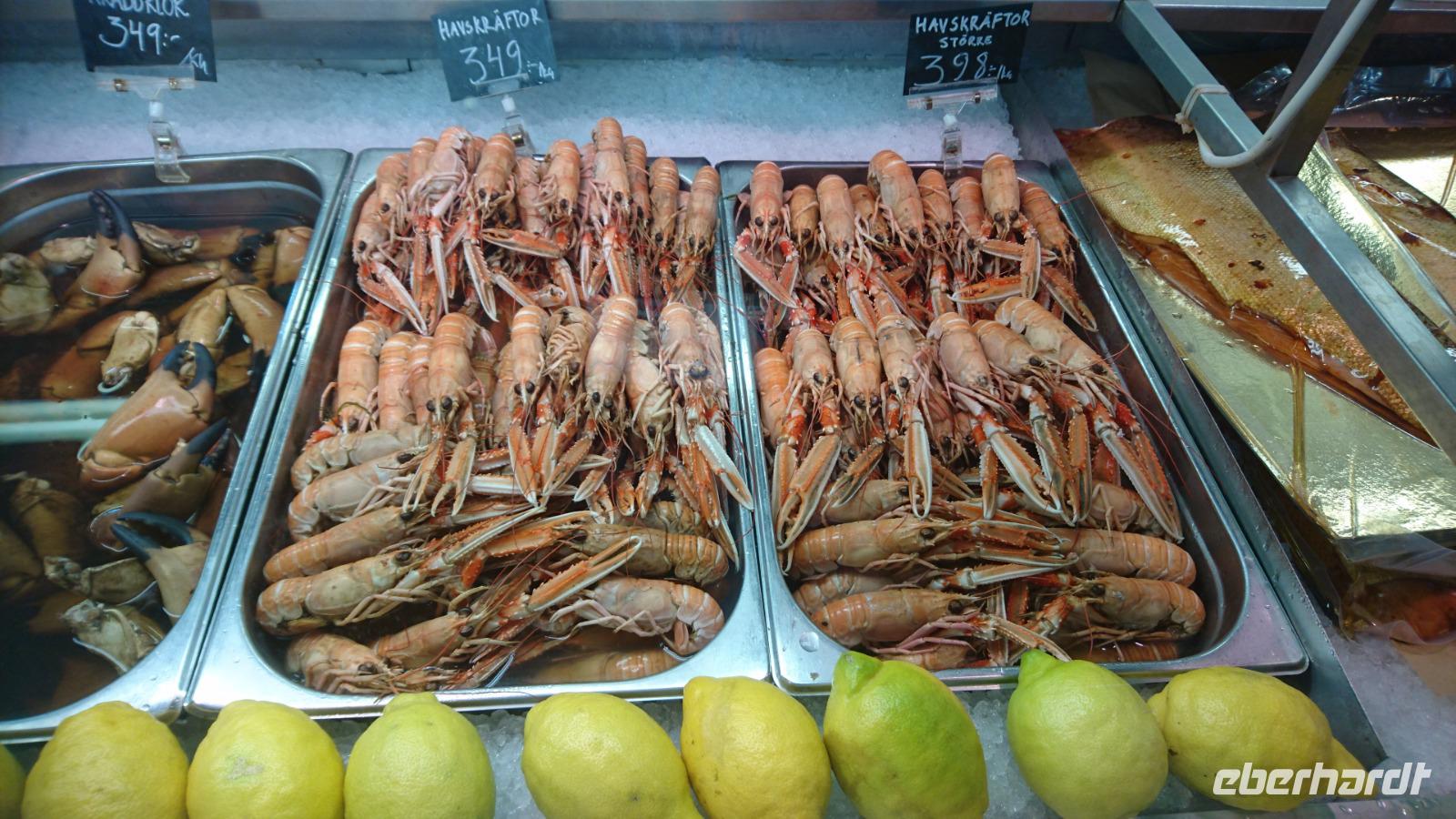 Am frühen Nachmittag erreichten wir Göteborg, das leider im Moment eine Großbaustelle ist, da die Stadtväter riesige Umbaumaßnahmen beschlossen haben und so hat es einige Umleitungen gedauert, bis wir auf Franziska trafen, die uns ihre Stadt zeigte. Gleich der erste Halt führte uns an die berühmte Feskekörka (Fischkirche), den Fischmarkt, der in seiner äußeren Form einer Kirche gleicht. Dank ihrer markanten Architektur gehört die Feskekörka zu den Wahrzeichen Göteborgs, sie wurde bereits 1874 eingeweiht und mit den charakteristischen Spitzbogen-Fenstern und einer Struktur ohne Trennwände und Säulen errichtet und war in der Errichtungszeit ein hochmodernes Gebäude. Heute kaufen die Göteborger hier gern ihren fangfrischen Fisch und unzählige Meeresfrüchte und die Besucher Göteborgs bestaunen die angebotene Vielfalt und die einmalige Architektur.