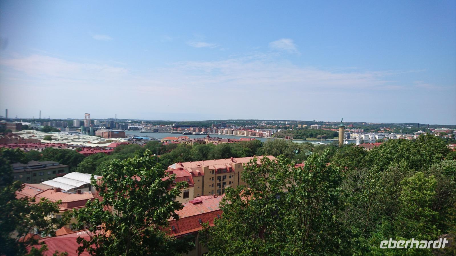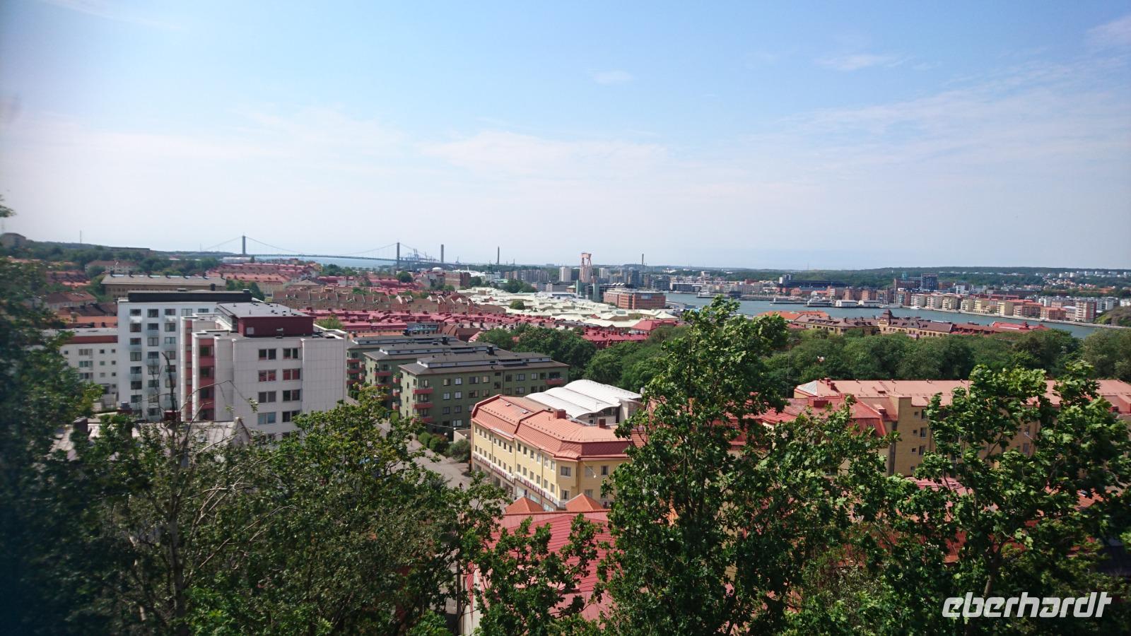 Im Anschluß fuhren wir auf den Hügel in Göteborg, auf dem 1914 die Masthuggskirche errichtet wurde, deren Kirchturm 60 Meter hoch herausragt. Vom Hügel aus hat man einen tollen Rundblick über die ganze Stadt und im Inneren der Kirche kam sich so mancher Gast plötzlich vor, wie im Innenraum eines alten schwedischen Schiffes.