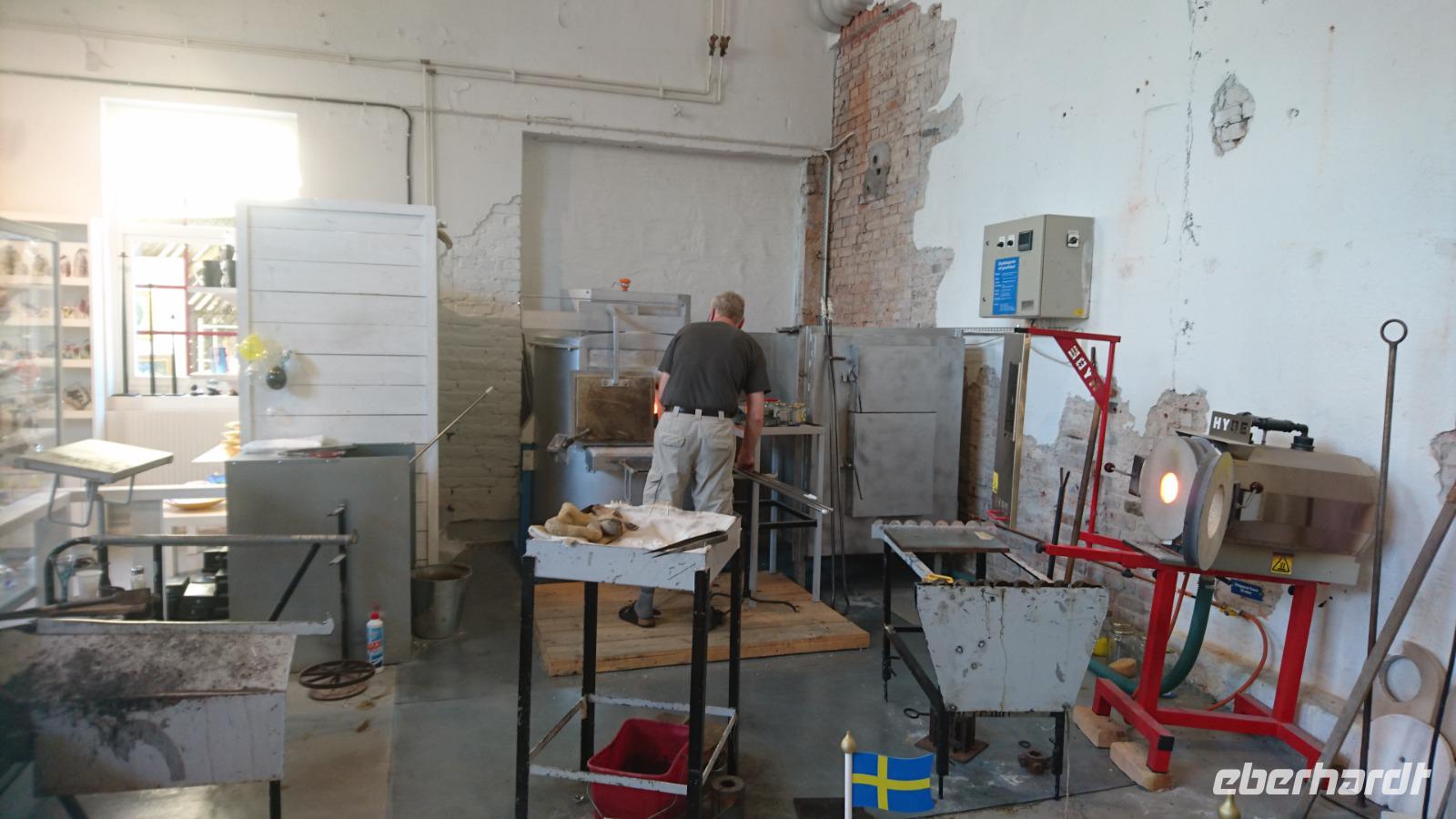 Nach dieser faszinierenden Fahrt gönnten wir uns noch eine Kaffeepause an der Glashütte, wo man sogar einen Blick auf die traditionelle südschwedische Glasherstellung werfen konnte, da die Werkstatt gleichzeitig einen Laden mit vielen schönen Glasgegenständen, aber auch anderen Souvenirs aus Schweden beherbergt.