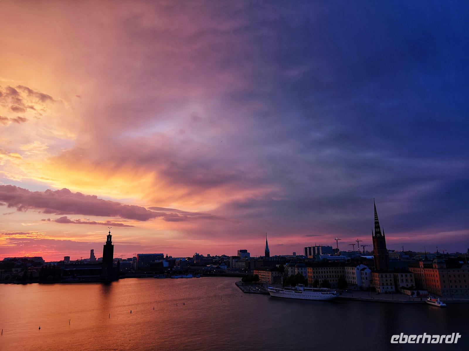 Daher war Stockholm heute erfreulich leer, die meisten Einwohner waren unterwegs, und wir kamen durch die sonst vom Verkehr vollgestopfte Stadt ohne großes Verkehrsaufkommen und machten mehrere Fotostops um diese schöne Hauptstadt, die auf insgesamt 14 Inseln liegt und in der ca. 890 000 Einwohner leben zu genießen. Das Wetter zog heut auch alle Register und der Himmel war richtiggehend azurblau.