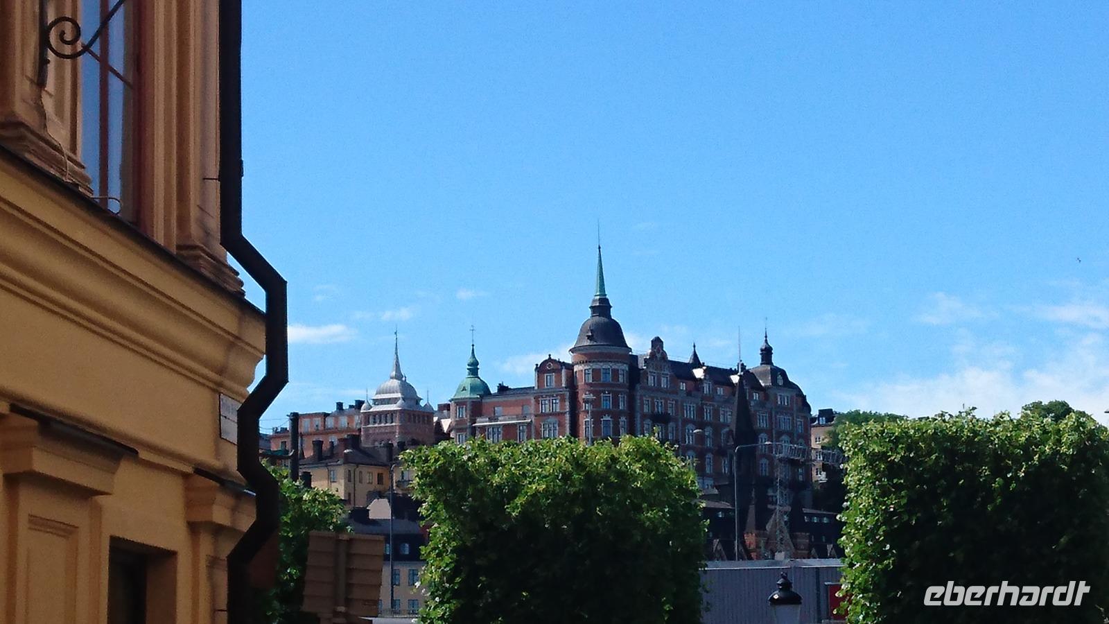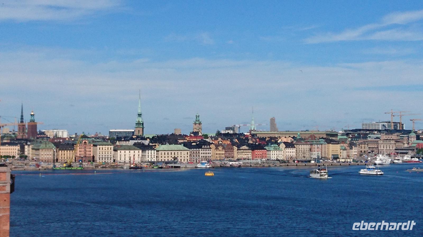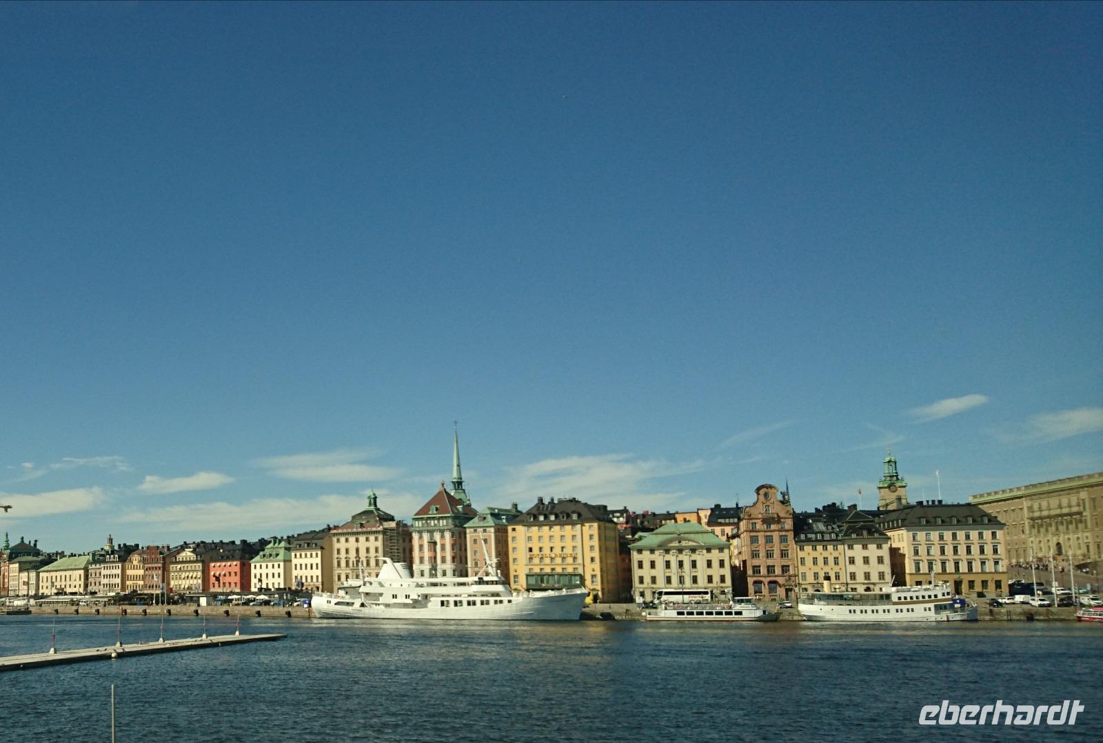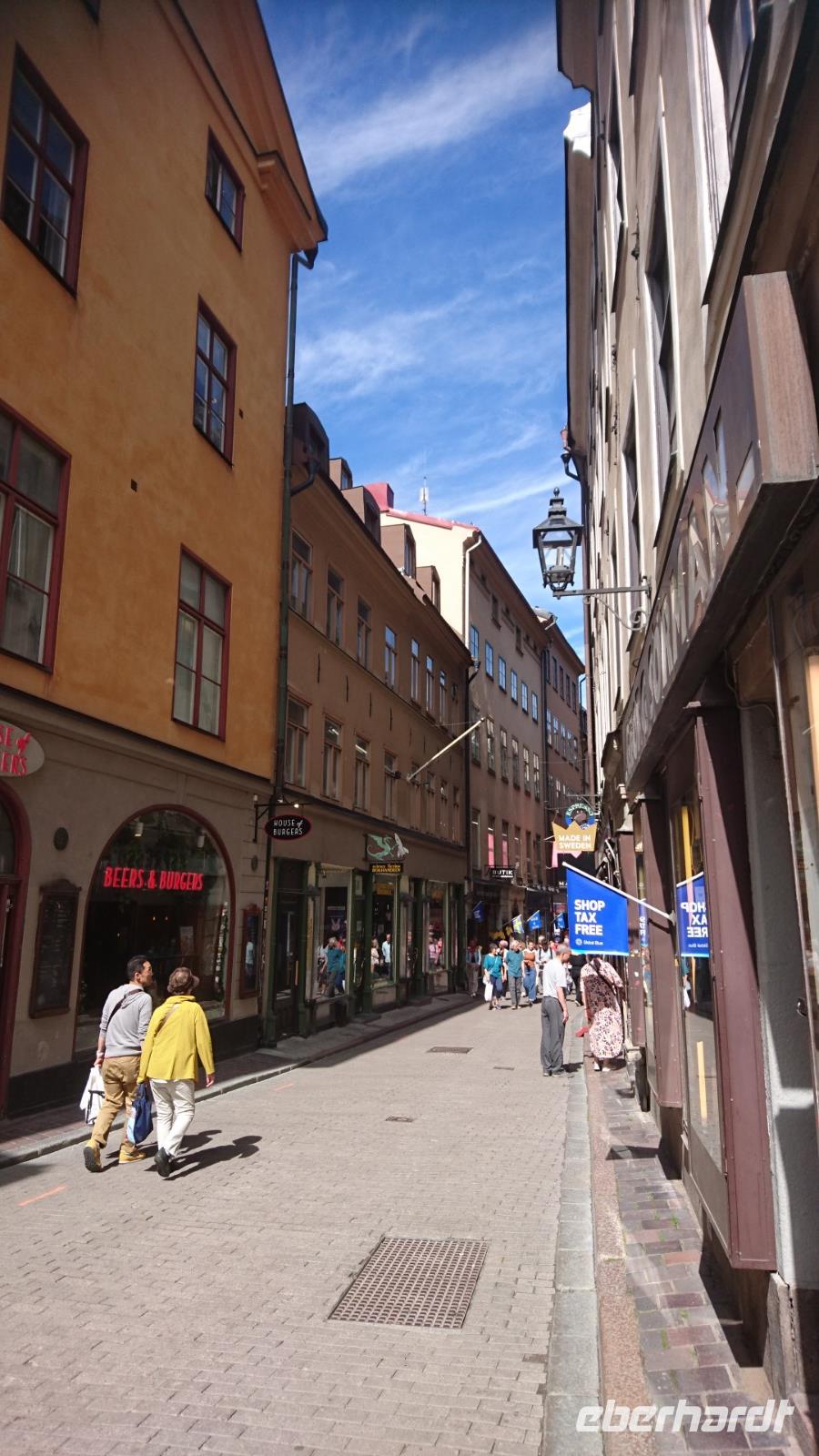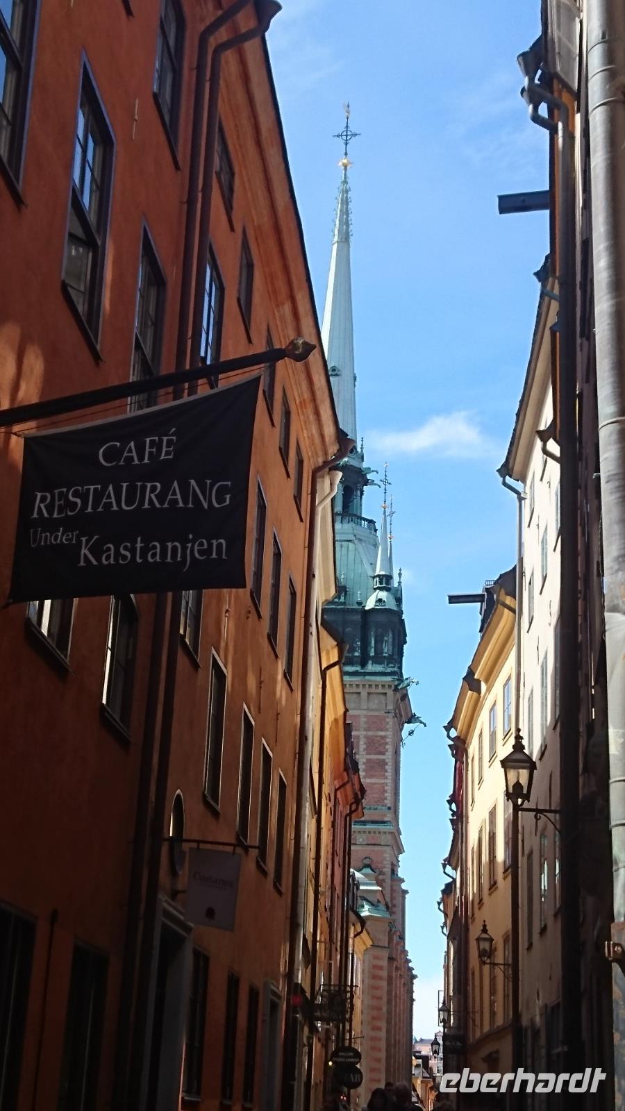 In Gamla Stan, der Insel mit den gepflasterten Straßen der Altstadt Stockholms machten wir zuerst einen Spaziergang zur St. Gertruds Gemeindekirche, in der alle Gottesdienste in deutscher Sprache abgehalten werden. Danach bummelten wir weiter durch die bezaubernden lauschigen Gassen, sahen das Stockholmer Schloß, welches als offizielle Königsresidenz dient. Hier in Gamla Stan findet man die ältesten Viertel der Stadt, da sich die Stadt von hier aus in den Jahrhunderten ausbreitete. Die Insel verbindet den nördlichen Stadtteil Norrmalm mit dem südlichen Stadtteil Södermalm. Viele Geschäfte hatten natürlich heut aufgrund des Feiertages geschlossen, aber die Cafés waren um so gefüllter mit Besuchern.