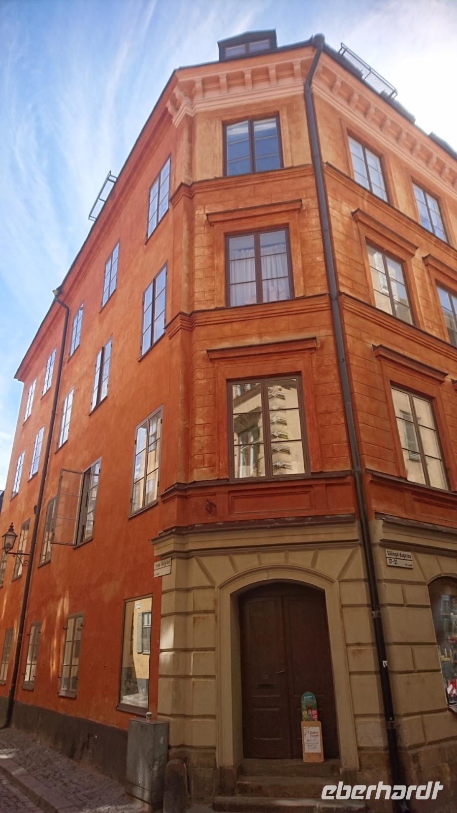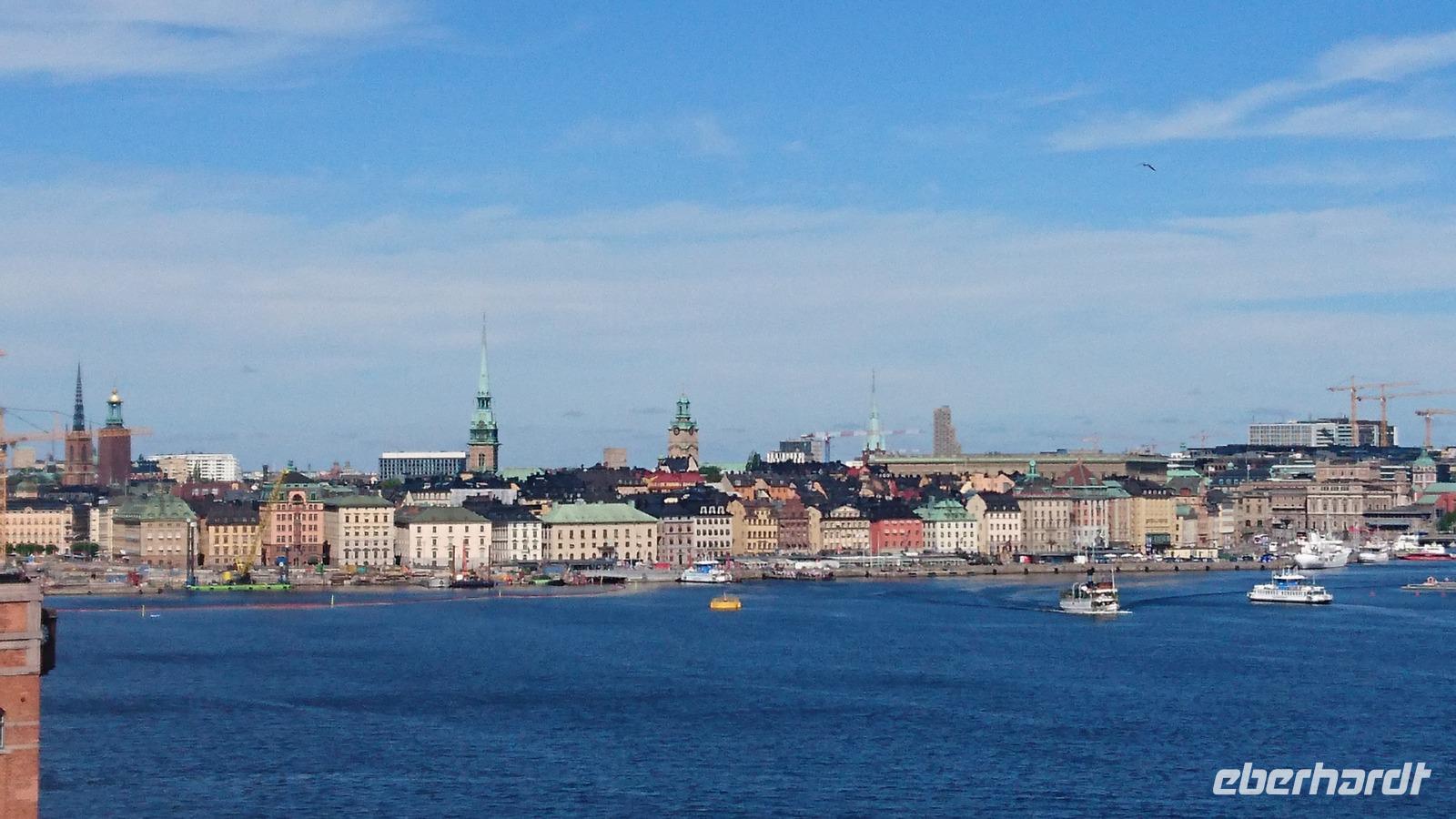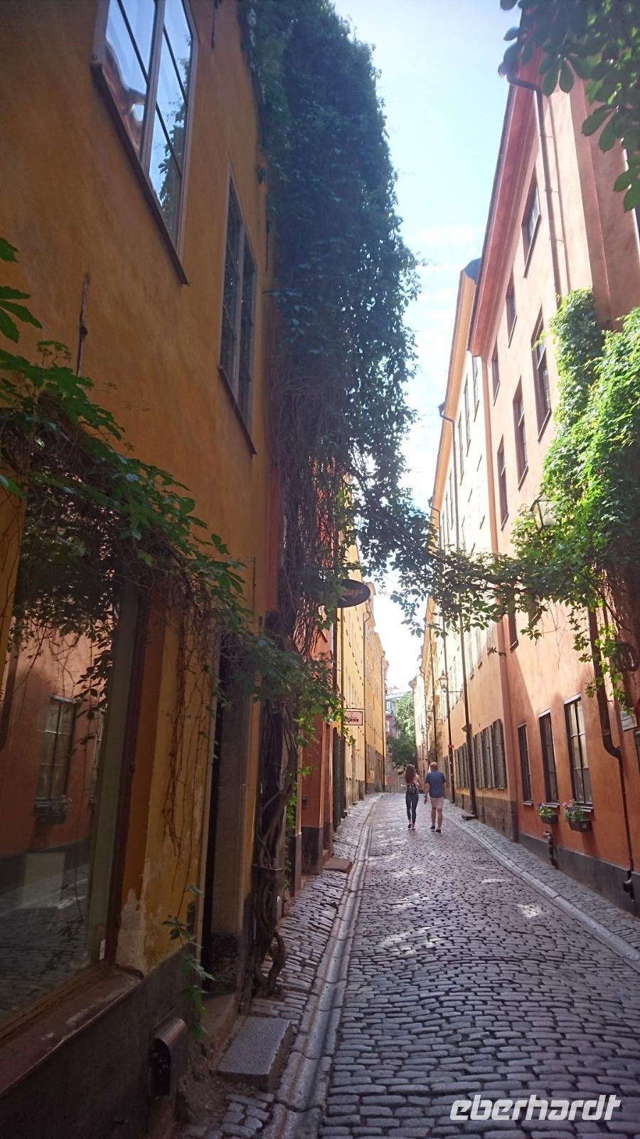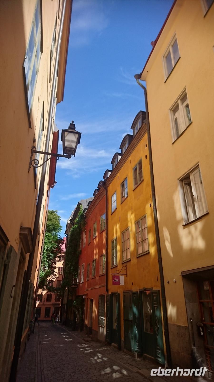 In Gamla Stan, der Insel mit den gepflasterten Straßen der Altstadt Stockholms machten wir zuerst einen Spaziergang zur St. Gertruds Gemeindekirche, in der alle Gottesdienste in deutscher Sprache abgehalten werden. Danach bummelten wir weiter durch die bezaubernden lauschigen Gassen, sahen das Stockholmer Schloß, welches als offizielle Königsresidenz dient. Hier in Gamla Stan findet man die ältesten Viertel der Stadt, da sich die Stadt von hier aus in den Jahrhunderten ausbreitete. Die Insel verbindet den nördlichen Stadtteil Norrmalm mit dem südlichen Stadtteil Södermalm. Viele Geschäfte hatten natürlich heut aufgrund des Feiertages geschlossen, aber die Cafés waren um so gefüllter mit Besuchern.