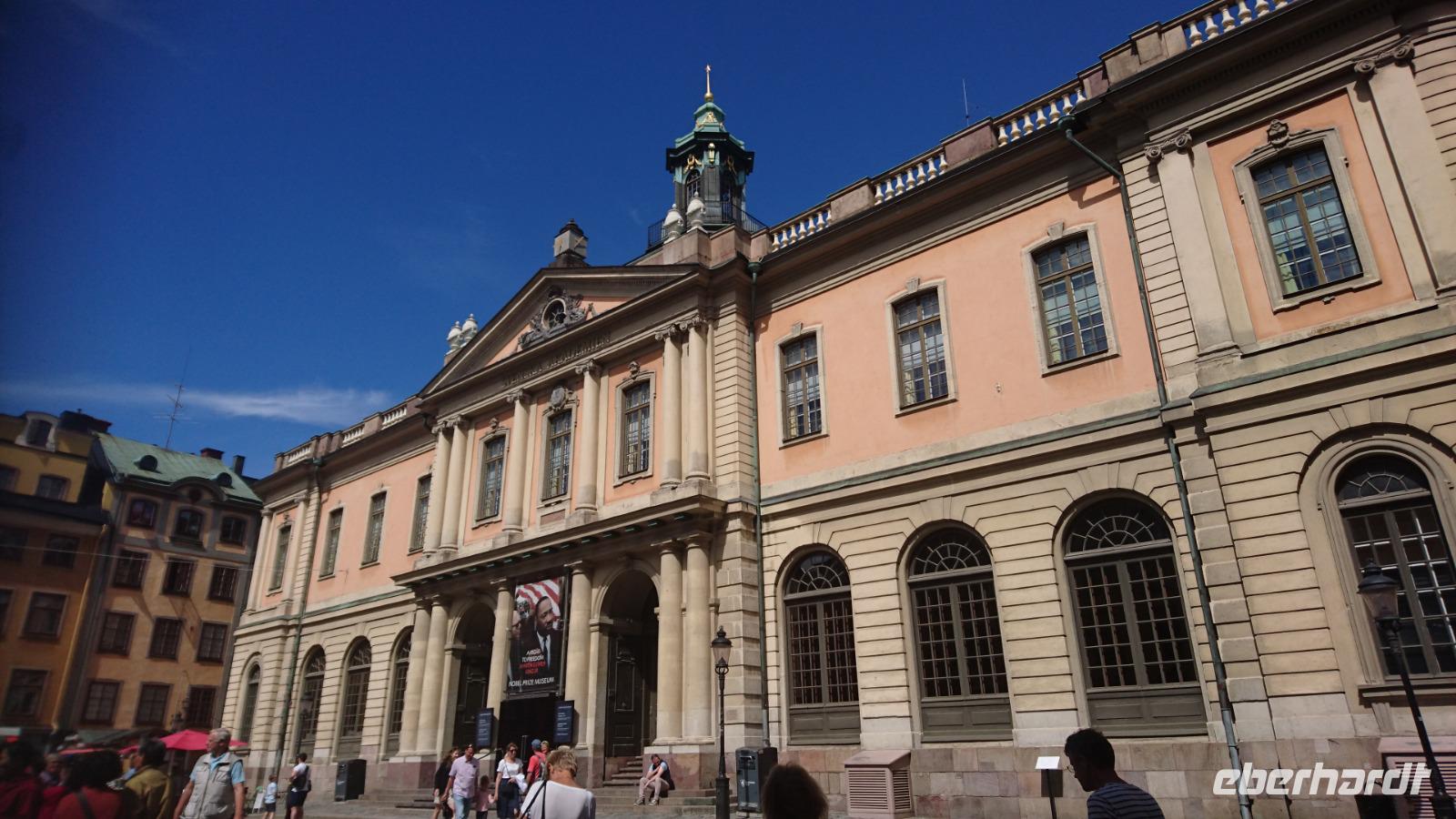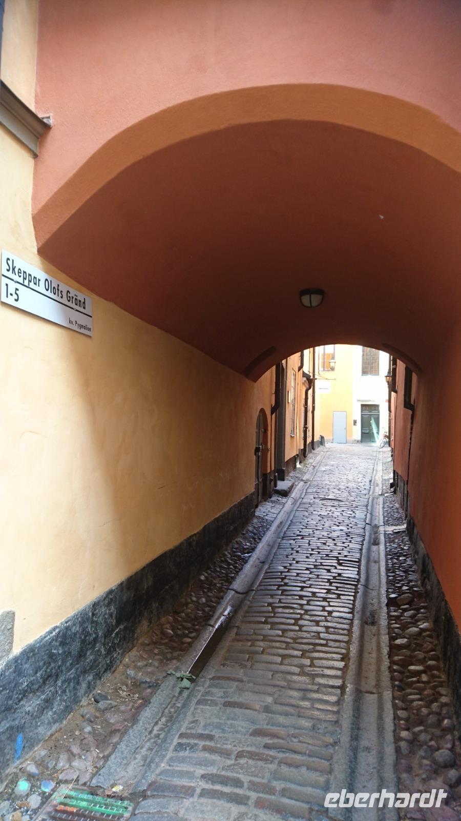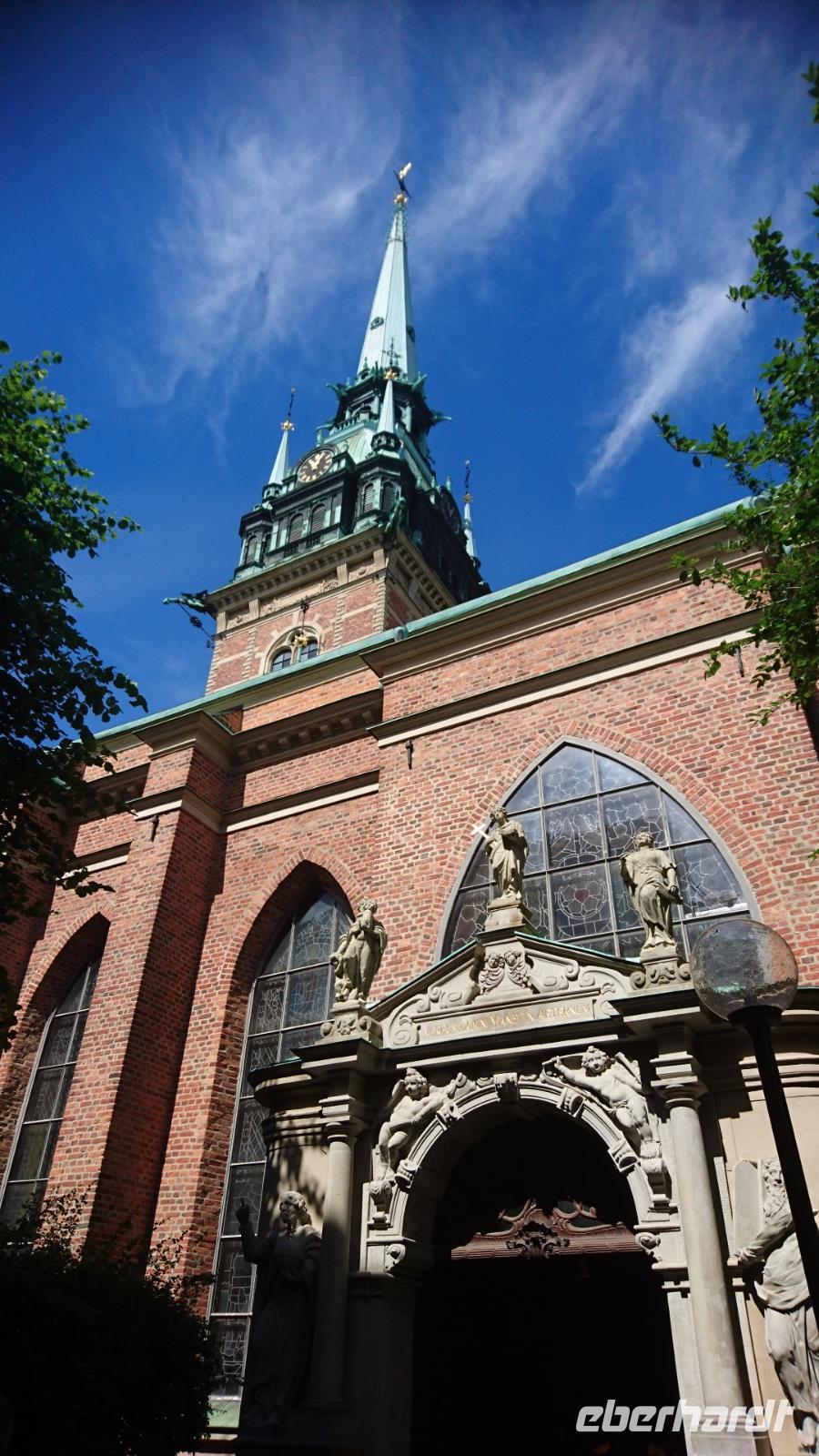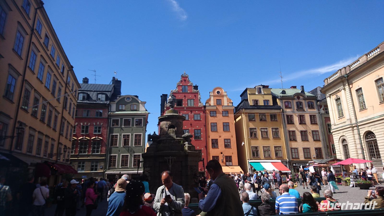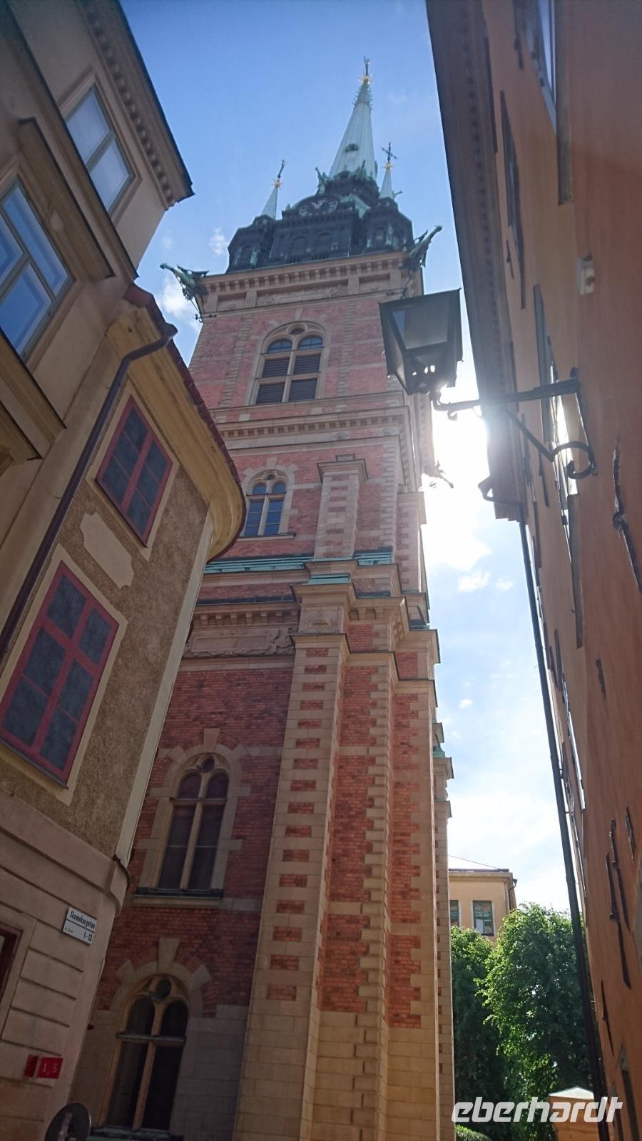 In Gamla Stan, der Insel mit den gepflasterten Straßen der Altstadt Stockholms machten wir zuerst einen Spaziergang zur St. Gertruds Gemeindekirche, in der alle Gottesdienste in deutscher Sprache abgehalten werden. Danach bummelten wir weiter durch die bezaubernden lauschigen Gassen, sahen das Stockholmer Schloß, welches als offizielle Königsresidenz dient. Hier in Gamla Stan findet man die ältesten Viertel der Stadt, da sich die Stadt von hier aus in den Jahrhunderten ausbreitete. Die Insel verbindet den nördlichen Stadtteil Norrmalm mit dem südlichen Stadtteil Södermalm. Viele Geschäfte hatten natürlich heut aufgrund des Feiertages geschlossen, aber die Cafés waren um so gefüllter mit Besuchern.