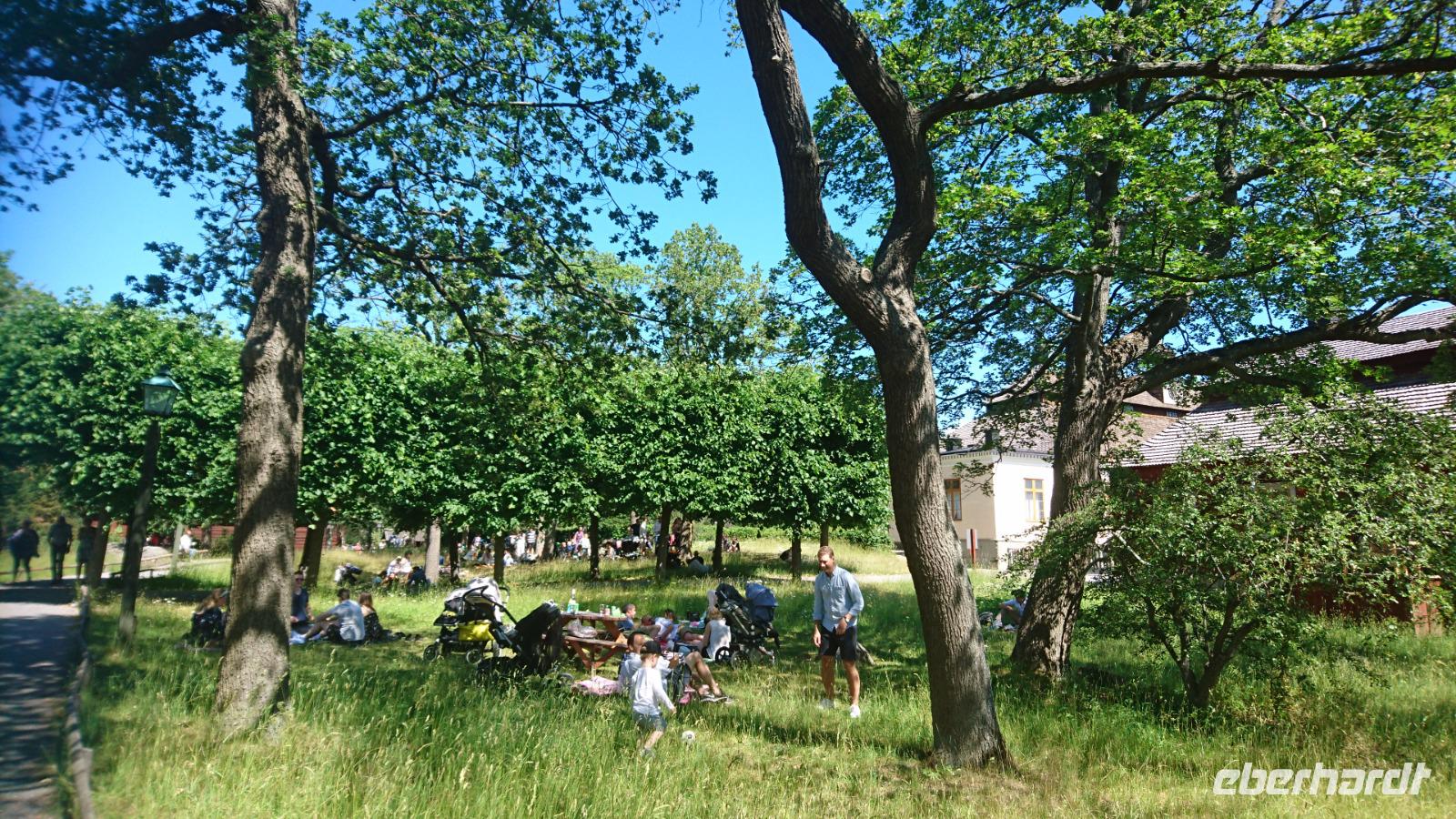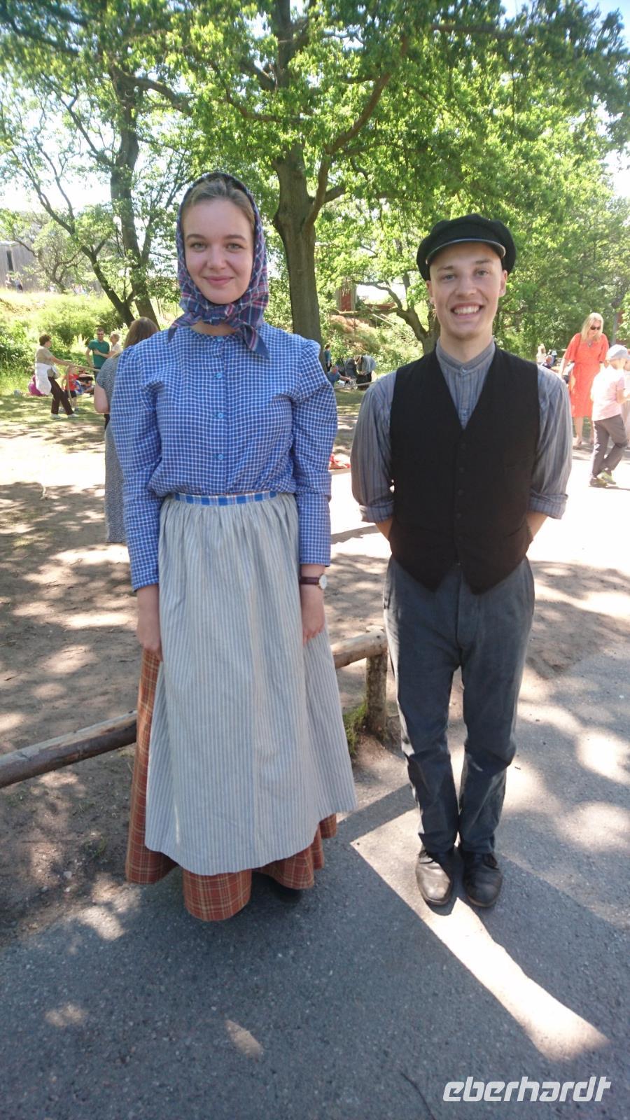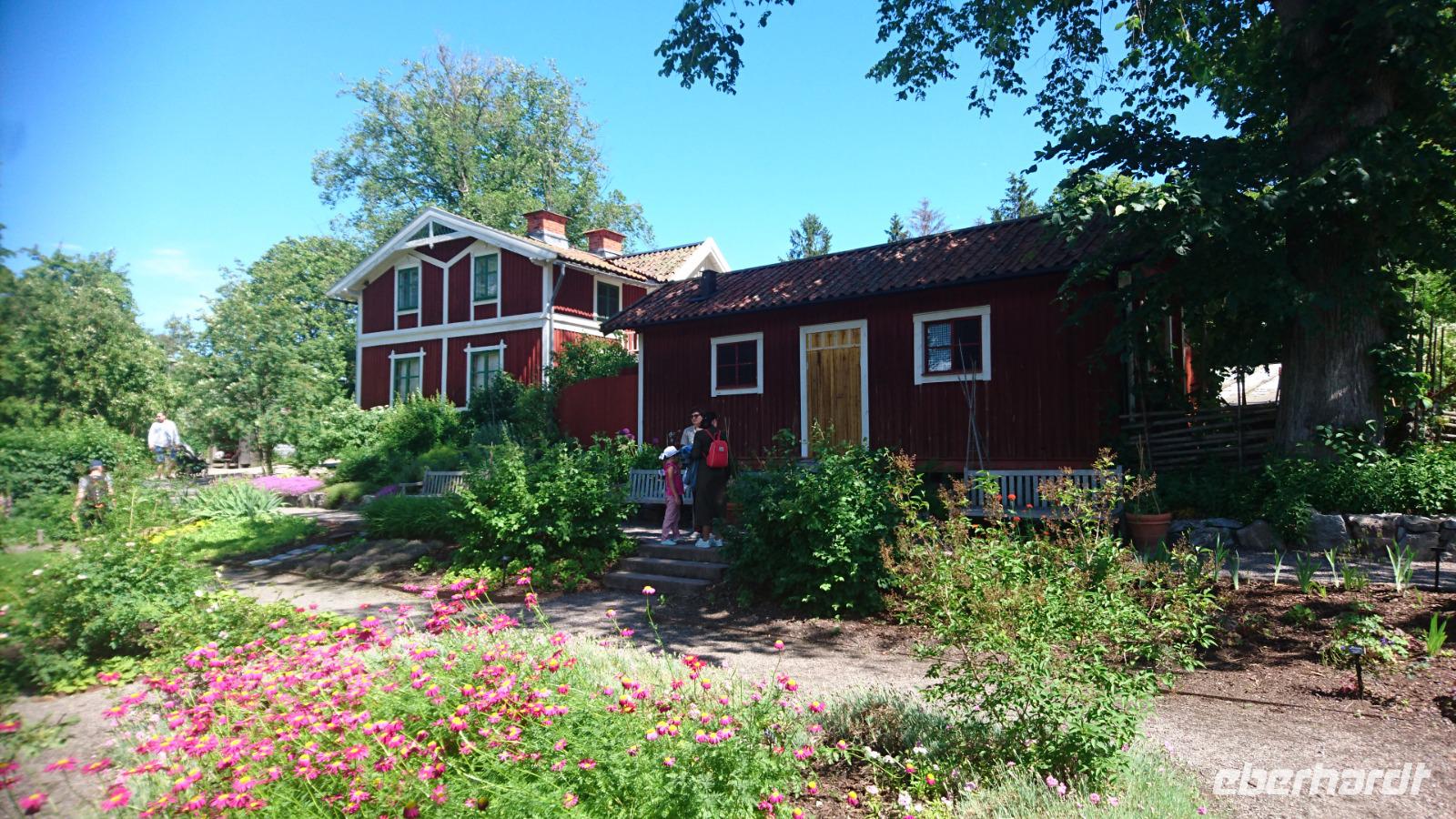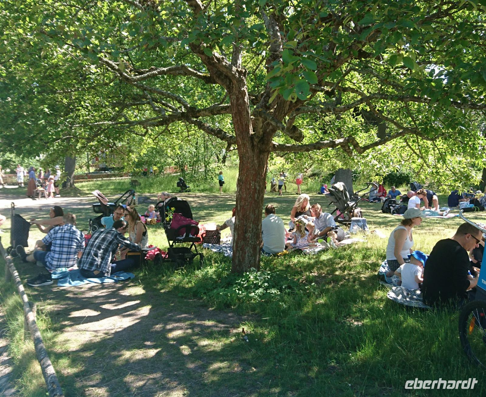 Mit den restlichen Gästen ging ich zum Skansenpark, dem ältesten Freilichtmuseum der Welt, welches im Prinzip ein Miniaturschweden in Schweden ist. Man findet hier sowohl Wildtiergehege, Parkanlagen mit unterschiedlichen Gärten als auch die typischen schwedischen Holzhäuser, die an anderen Orten abgetragen worden waren, um sie in Skansen wieder originalgetreu aufzubauen. Viele Schweden mit Blumenkränzen in den Haaren hatten sich zur Mittagszeit bereits unter den Bäumen zum Picknick niedergelassen und es herrschte ausgelassene Fröhlichkeit im gesamten Park. Am frühen Nachmittag wurde dann der Mitsommerbaum aufgestellt, es wurde getanzt und gesungen und wir konnten die sonst so ruhigen Schweden sehr ausgelassen feiern, trinken, singen und tanzen sehen.