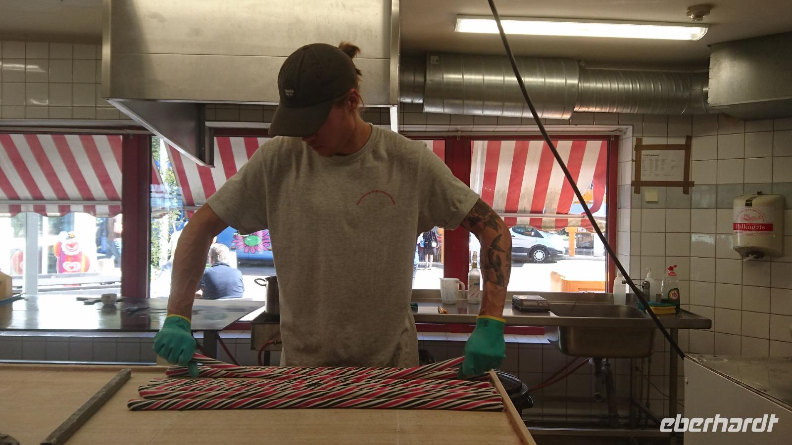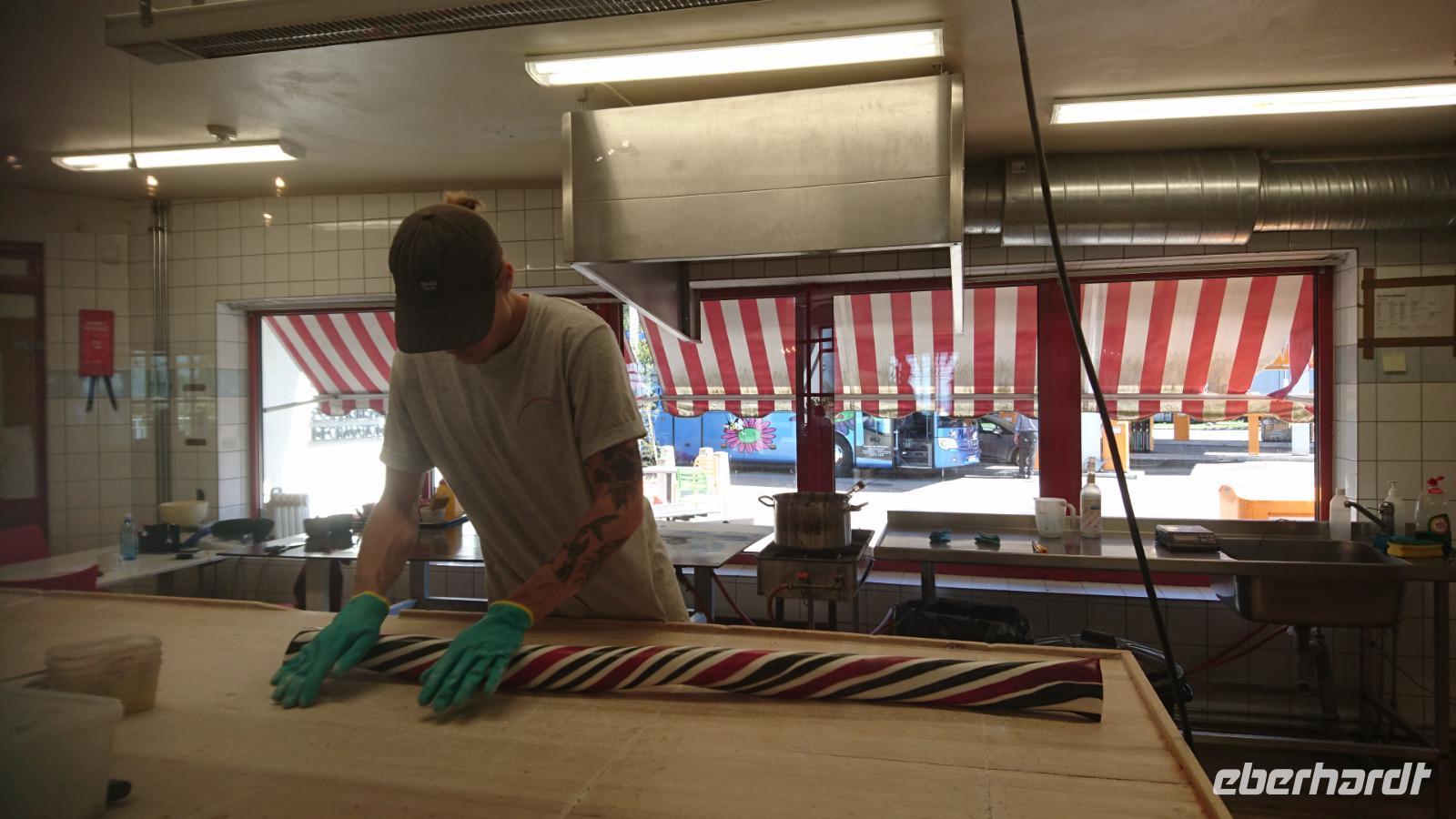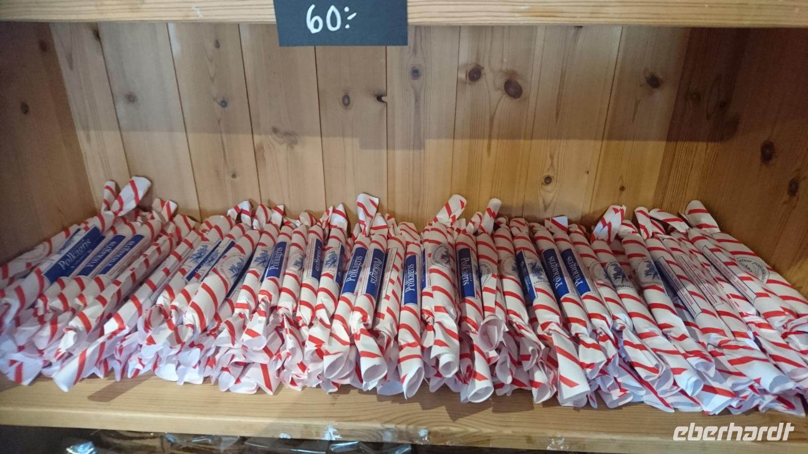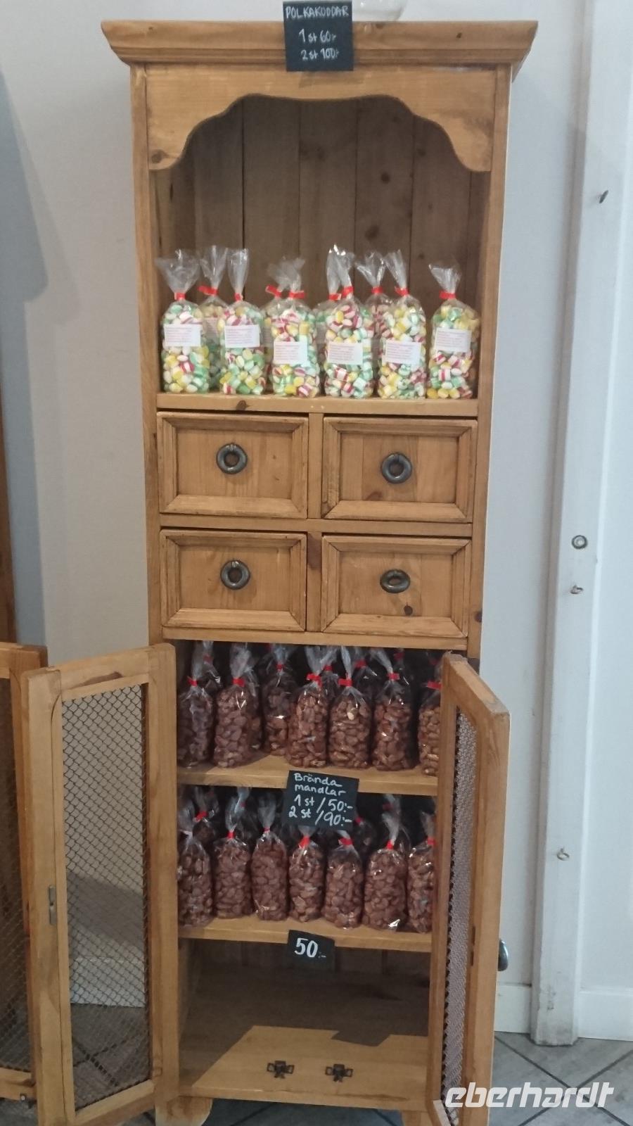 Gleich nebenan ist eine Polkagrisproduktion, wo man zusehen kann, wie die süßen bunten Zuckerstangen entstehen. Man kann kosten und weil sie einfach so schön aussehen, muß man natürlich auch welche kaufen für die lieben Daheimgebliebenen. Glücklich vor Zucker machten wir uns auf, um die letzten 175 km bis Växjö zu bewältigen.