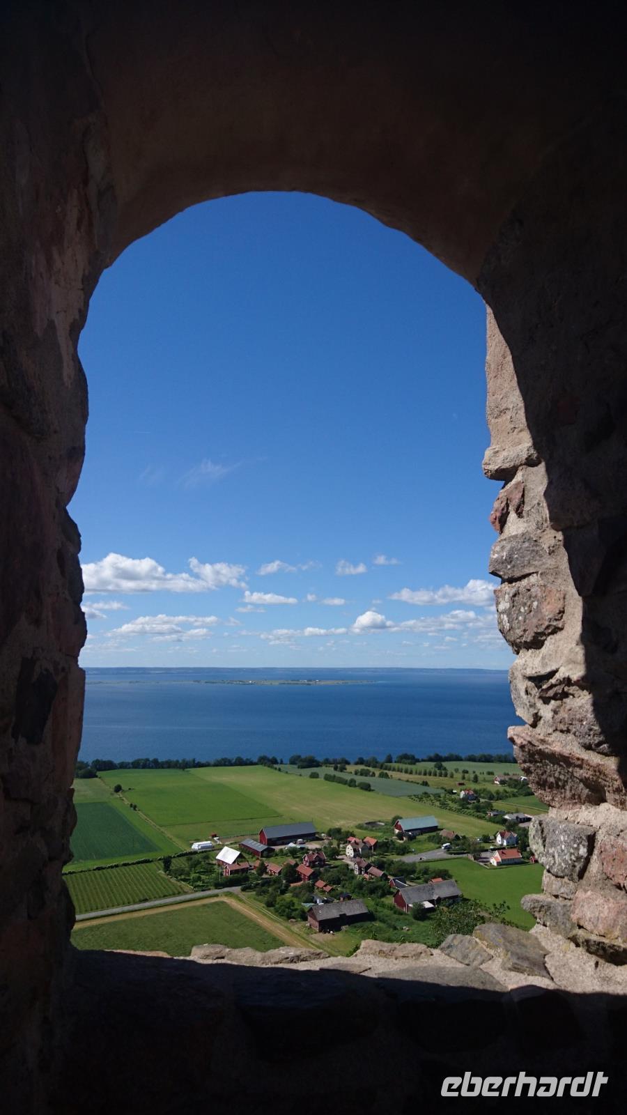 Im Anschluß an diese beeindruckende Bootsfahrt fuhren wir weiter entlang des Vätternsees zur Ruine des Herrenhauses, welches einst von Per Brahe 1637 errichtet worden war. Nach dem Tod seiner Gemahlin Christina wurde das Haus mehr als Gästeunterkunft, als als Wohnhaus genutzt. Das einstige Gebäude hatte 2 quadratische Ecktürme mit einer atemberaubenden Aussicht über den Vätternsee, die Insel Visingsö innerhalb des Sees und den Ort Gränna. Das Haupthaus war einstmals herrschaftlich eingerichtet. Nach dem Tod von Per Brahes entfernte man die Inneneinrichtung und gab die Grafschaft in den Besitz des Königs Karl XI. Leider brach 1708 ein Brand in einem nahe gelegenen Dorf aus, der das Herrenhaus bis auf die Grundmauern zerstörte und heut ist nur die beeindruckende Ruine geblieben.