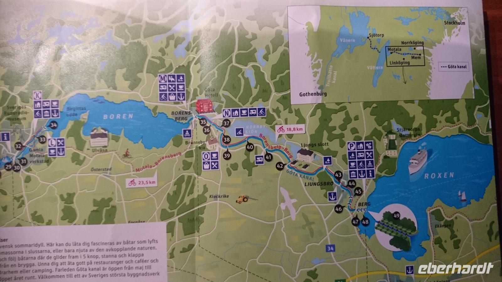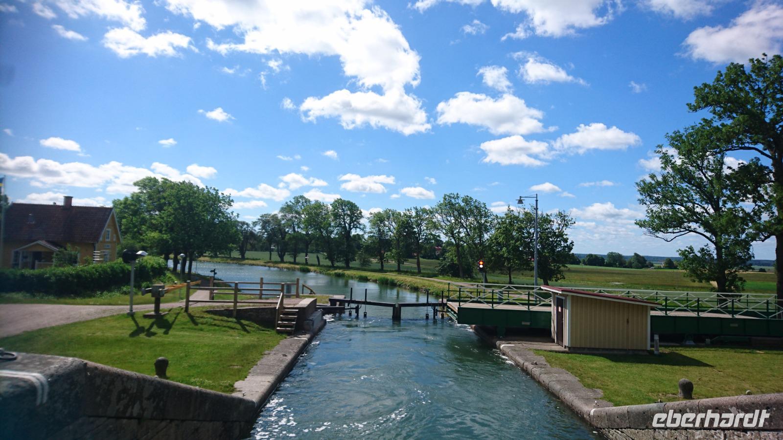 Der insgesamt 190 km lange Götakanal (nur 87 Kilometer sind allerdings tatsächliche Kanalstrecke) verbindet 5 Seen miteinander und überwindet unglaubliche 91,5 Höhenmeter. Die Idee zu diesem Kanal war es, eine Verbindung zur Ostsee zum Gütertransport zu schaffen, um nicht die von den Dänen mit dem Sundzoll besteuerte Öresundverbindung nutzen zu müssen und somit Steuern zu sparen.