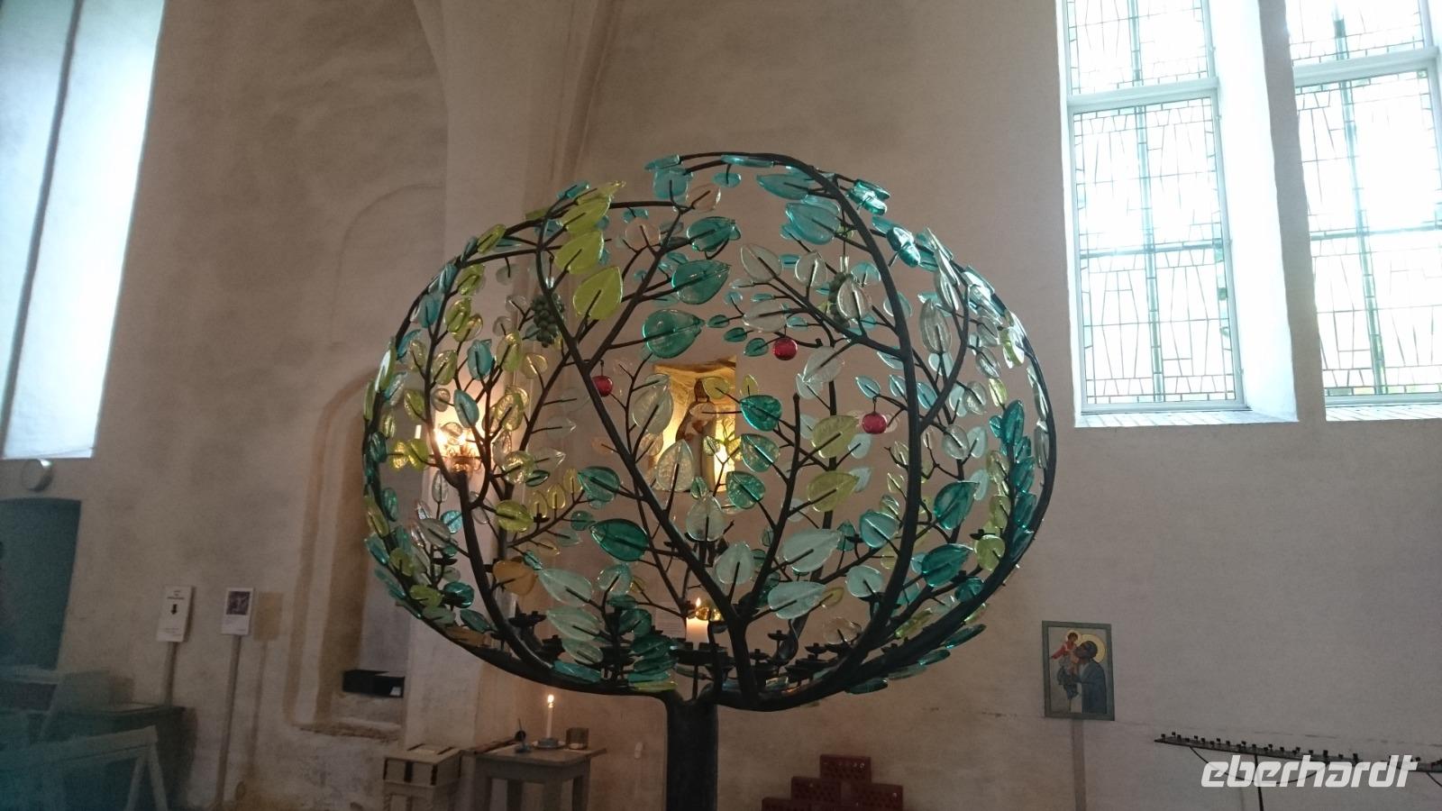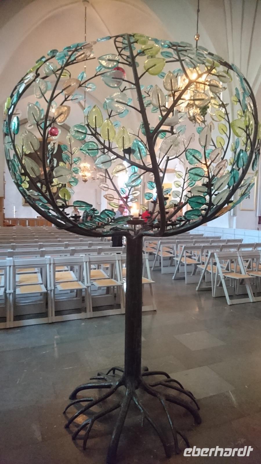 Links in der Kirche befindet sich der Baum des Lebens und der Erkenntnis, eine dritte faszinierende Glaskonstruktion.