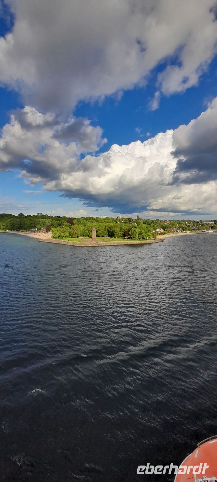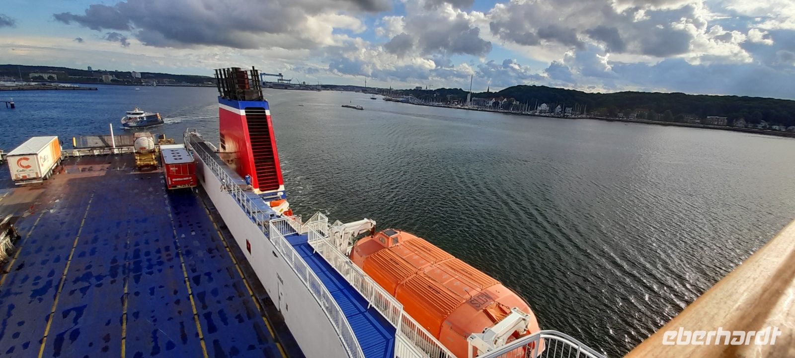 Bei abgekühlten Sommertemperaturen erreichen wir am späten Nachmittag Kiel, hier findet derzeit die Kieler Woche statt. Auch im Fährterminal warten noch Reisegäste auf uns, mit 44 Reisegästen ist unser Eberhardt Bus voll besetzt. Am Abend treffen wir uns zum Büffet an Bord und dazu gönnen wir uns Wein und Bier, welches uns kostenlos angeboten wird. Müde fallen wir in unsere Betten in den gemütlichen Kabinen an Bord der Fähre. 672 km