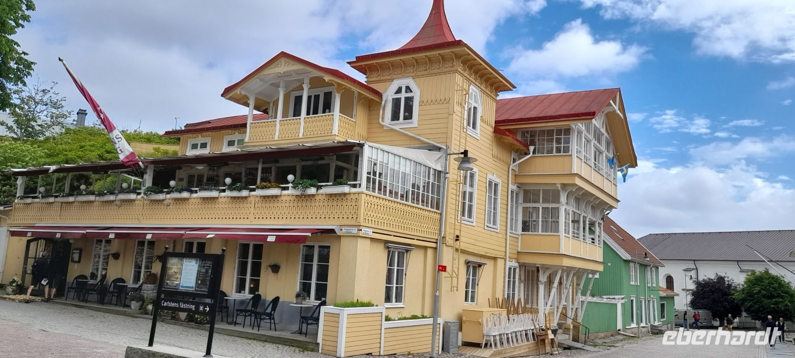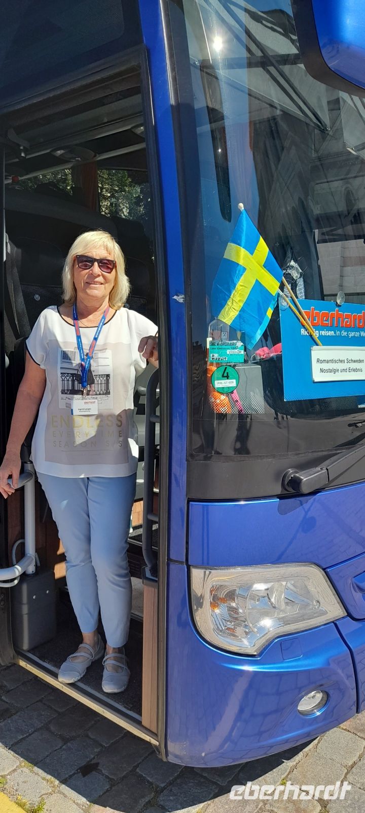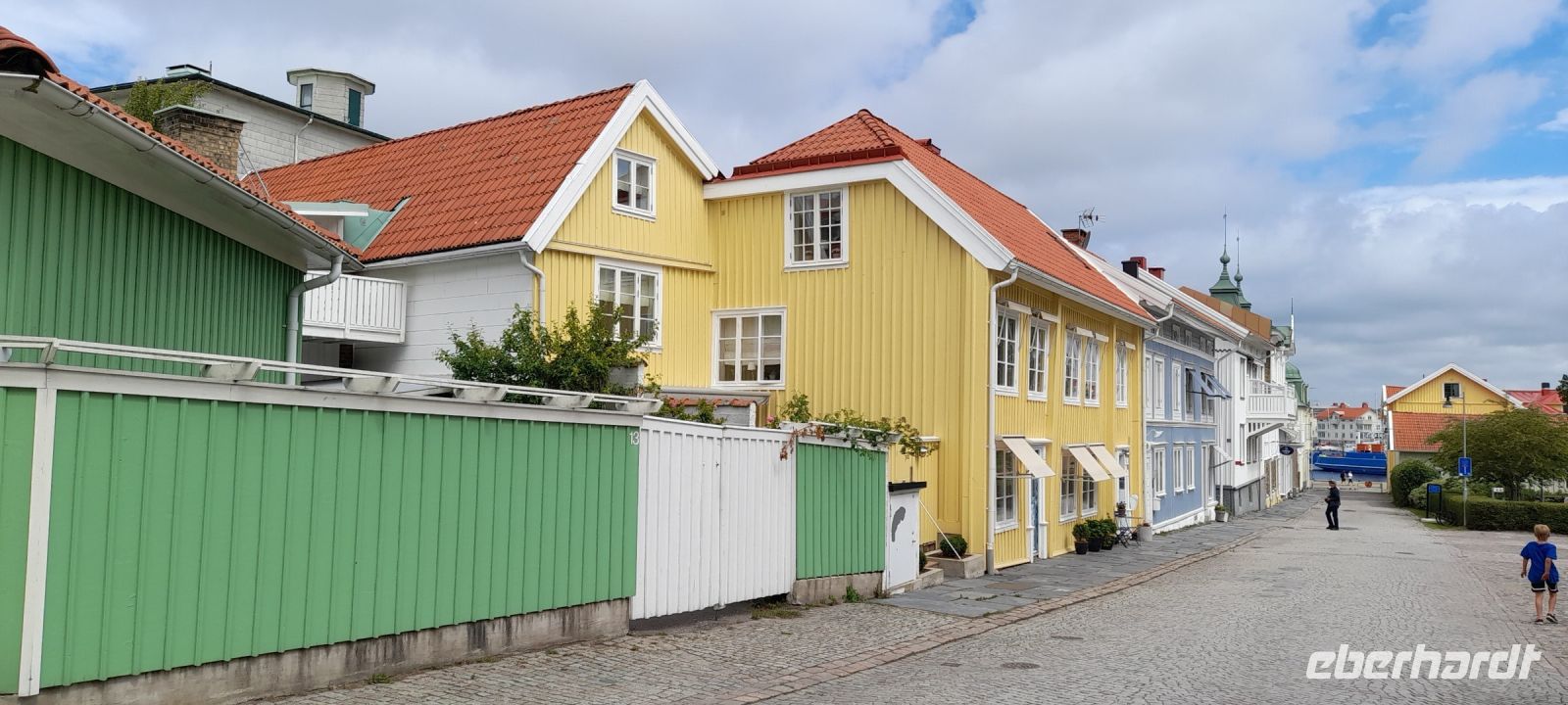 Nach dem Frühstück und dem Anlegen der Fähre treffen wir im Terminal Franziska unsere örtliche Reiseleiterin in Göteborg. Schnell ist unser Gepäck im Bus verstaut und souverän lenkt Frank den schmucken blauen Eberhardt Bus hinaus aus dem Fährhafen in Göteborg. Bis zum Mittag erleben wir eine interessante Stadtführung und nach Freizeit und Mittagsversorgung geht unsere Fahrt in Richtung Nord über den Götälv zur Insel Marstrand. Bei angenehmen Wetter starten wir unsere Überfahrt zur Insel Marstrand. Ein kleines Paradies mit wunderschönen bunten