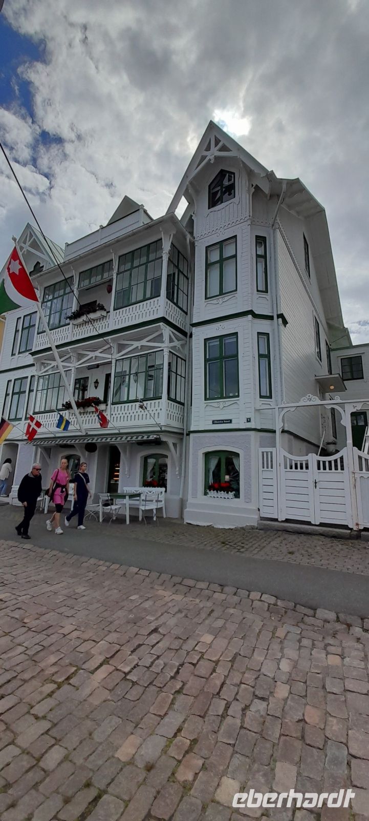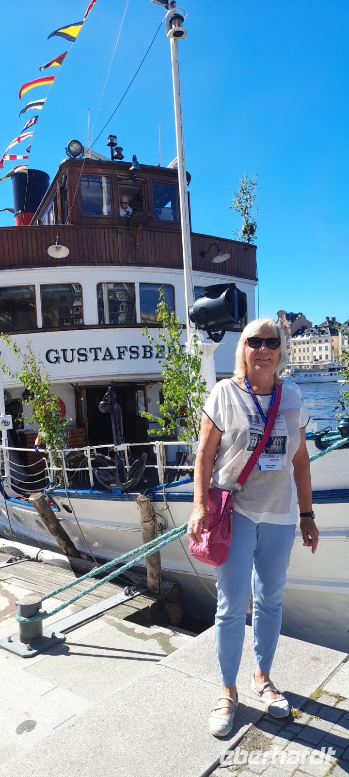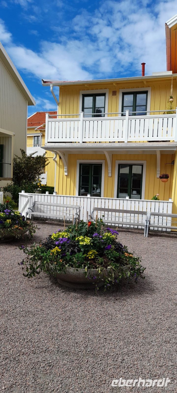 Nach dem Frühstück und dem Anlegen der Fähre treffen wir im Terminal Franziska unsere örtliche Reiseleiterin in Göteborg. Schnell ist unser Gepäck im Bus verstaut und souverän lenkt Frank den schmucken blauen Eberhardt Bus hinaus aus dem Fährhafen in Göteborg. Bis zum Mittag erleben wir eine interessante Stadtführung und nach Freizeit und Mittagsversorgung geht unsere Fahrt in Richtung Nord über den Götälv zur Insel Marstrand. Bei angenehmen Wetter starten wir unsere Überfahrt zur Insel Marstrand. Ein kleines Paradies mit wunderschönen bunten