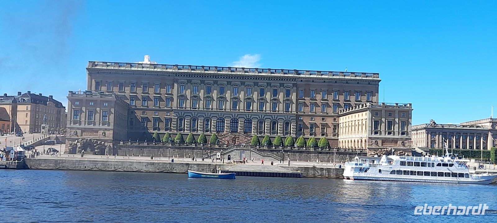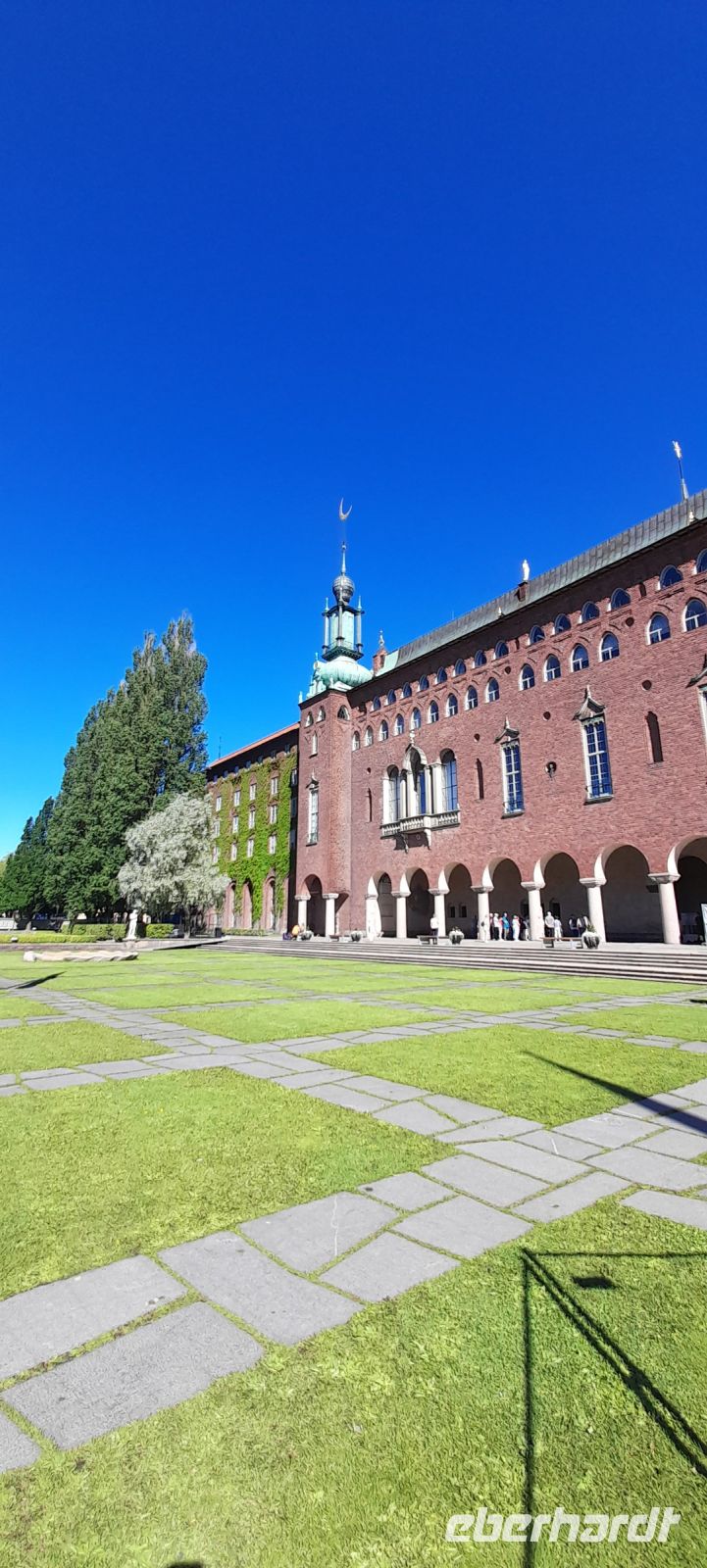 Zum Frühstück treffen wir uns im Restaurant und nach kurzer Zeit fällt der Strom aus, kein Kaffee und Saft aus den Automaten stehen uns zur Verfügung. Es wird auf Eiskaffee und Milch umgestellt. Ja was solls, am Büffet hat es eine gute Auswahl an Speisen. Neun Uhr werden wir am Rathaus von Stockholm zur Stadtführung erwartet. Frank verlädt wieder unser großes Gepäck im Bus und dann starten wir in das Centrum von Stockholm. Pieter, unsere örtl. Reiseleiter, erwartet uns schon und mit ihm erkunden wir die vielleicht schönste Hauptstadt Skandinaviens. Wir sehen das Rathaus und fahren mit unserem Bus durch Stockholm, Brücken queren wir und am Königlichen Schloss steigen wir aus, um