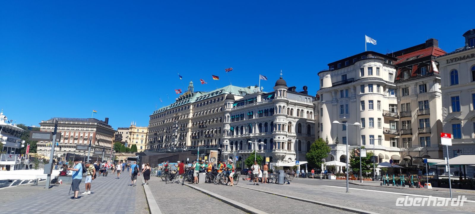 Mit Sonne und heißen Temperaturen beginnen wir unsere heutige schöne Fahrt durch die schwedische Landschaft. Entlang des Vännern Sees fahren wir und auch den Götakanal, das Blaue Band Schwedens, überqueren wir. Kaffeepause im Grünen und gute Unterhaltung im Bus lassen die Fahrt schnell vergehen. Am fantastischen Schloss Gripsholm legen wir am Nachmittag bei schönstem Sommerwetter einen längeren Stopp ein. Ein blauer Himmel mit genialen Wölkchen liefert uns den passenden Hintergrund für traumhafte Aufnahmen. Mariefred und das Schloss Gripsholm verdanken Kurt Tucholsky ihren Weltruhm, denn er beschreibt in seinem Roman „Schloss Gripsholm" diesen Ort. Er war hier im Exil, weil er von den Nazis verfolgt wurde und hier im schwedischen Mariefred nahm er sich auch das Leben. Auf dem hiesigen Friedhof ist er beerdigt. Am Abend checken wir im Hotel Scandic Talk, vor den Toren Stockholms im Messegelände gelegen, ein. Beim schmackhaften