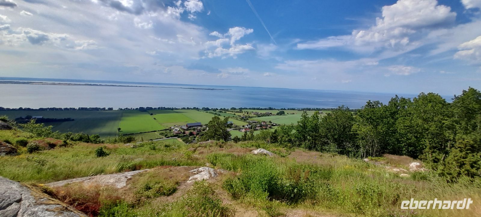 Heute können wir ausschlafen, denn gestartet wird erst Neun Uhr nach Berg, um dort unser Schiff „Vasa Lejon" zu betreten. Hochsommer heute wieder, also hat Sonnencreme für die Schifffahrt dabei zu sein. Den Anker kann der Kapitän heute nicht pünktlich lichten, das größte Schiff der Flotte ist noch im Kanal in den Schleusen unterwegs. 30 Minuten später sind wir auf Fahrt in der Schleusentreppe von Berg, ein Wunderwerk der Technik und die Seeluft weht uns ganz leicht um die Nase. In gutgekühlter Räumlichkeit haben wir Plätze reserviert bekommen, bei den Außentemperaturen heute ein Segen. Während unserer 3-stündigen Fahrt passieren wir 9 Schleusen und 2 Aquädukte. Wir sehen herrliche Grundstücke und fantastische Landschaften. Der Götakanal führt mit seinem Wasserlauf auch über Aquädukte, also wir fahren mit dem Schiff über die Straße, was für uns ein besonderes Erlebnis ist. Geklärt bekommen wir nicht so richtig, wie das Wasser im Kanal bleibt, ohne auf die darunterliegende Straß zu tröpfeln. Bei unserer Fahrt entlang des zweitgrößten Sees Schwedens, dem Vätternsee, genießen wir herrliche Ausblicke und an der Ruine von Brahehus mit Blick zur Insel Visingsö, legen wir einen Halt ein. Hier bekommen alle Gäste Gelegenheit, von den leckeren Zuckerstangen und Süßigkeiten, der Polkagrisar, zu kosten und einzukaufen. Am Abend checken wir im Quality Hotel Royal Corner in Växjö ein. Den Abendspaziergang heute nutzen unsere Reisegäste zum Spaziergang bis hin zum fantastischen Dom, er ist geschlossen, aber am nächsten Morgen öffnet er Neun Uhr und wir haben Zeit in sein Inneres zu schauen. 315 km