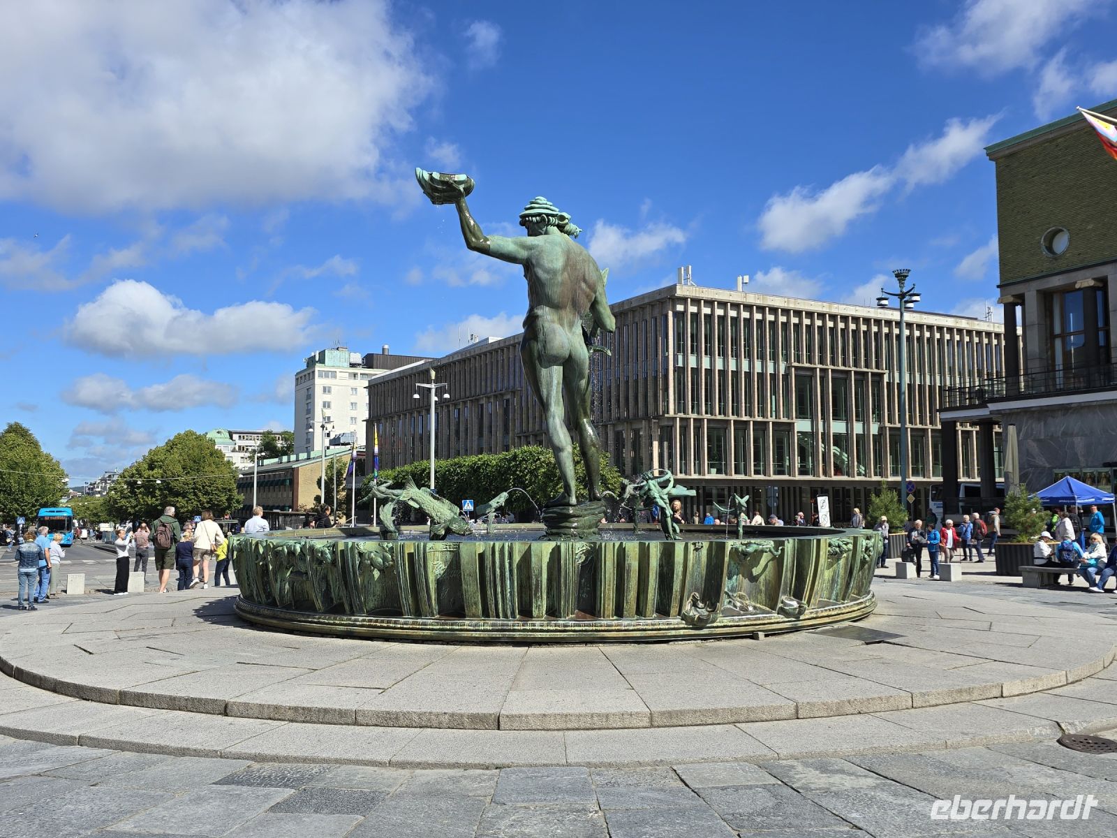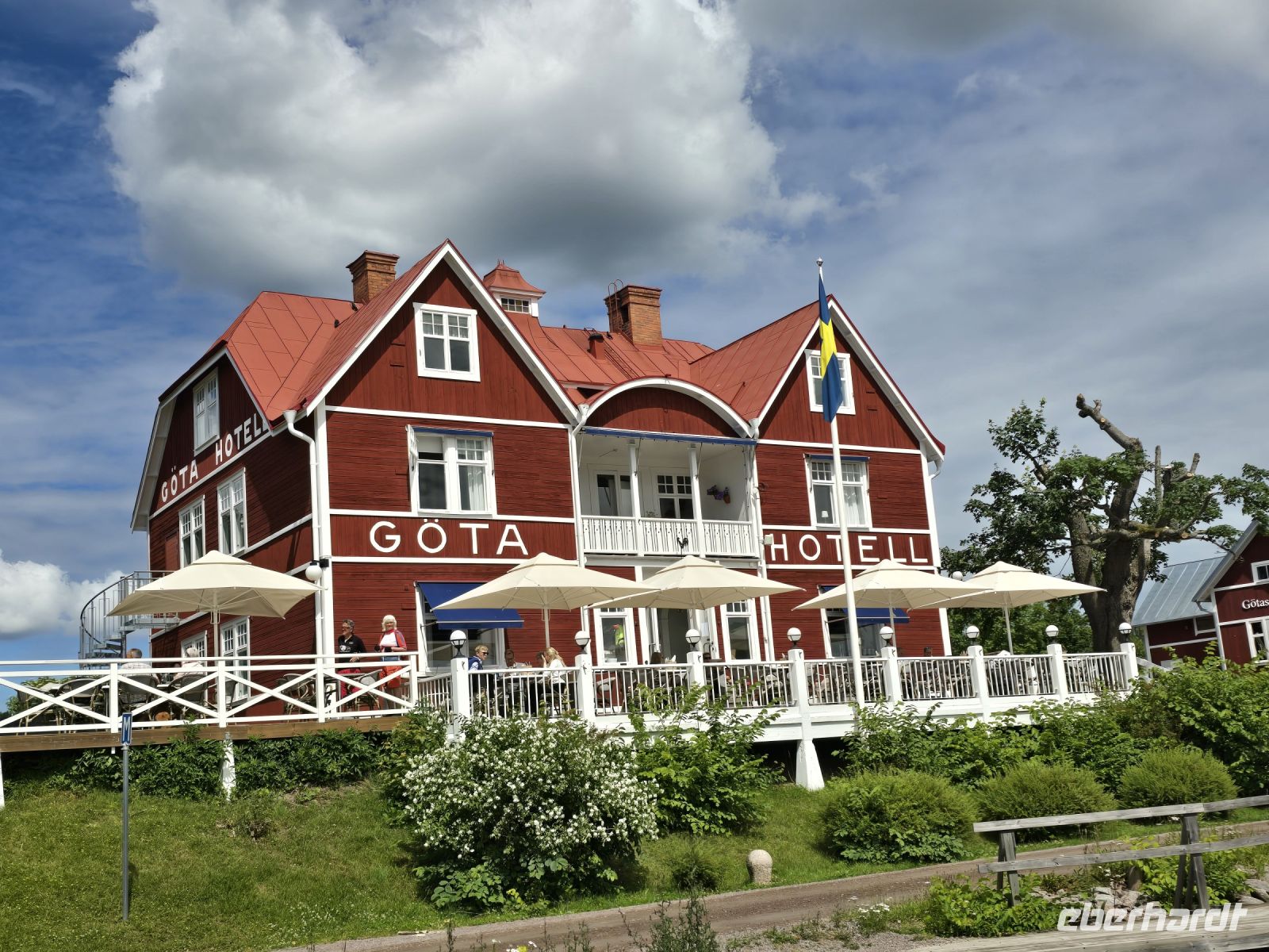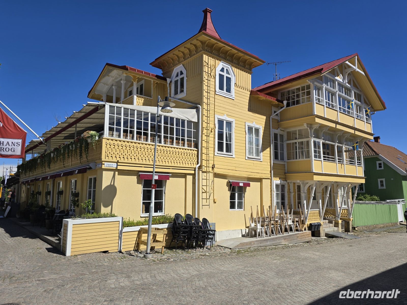 Nach dem Frühstück auf der Fähre verabschieden wir uns von den Radfahrern, deren Weg führt sie zum Vatternsee und wir wollen uns erstmal Göteborg ausführlich bei einer Stadtrundfahrt anschauen, bevor wir einen wunderschönen Landausflug auf die Insel Marstrand unternehmen. Göteborg, die zweitgrößte Stadt Schwedens, ist immer etwas überstrahlt durch die große Schwester Stockholm, wird oft weniger beachtet und hat doch ganz viel zu bieten. Zu Beginn unserer Stadtrundfahrt fahren wir hoch zur Masthuggskyrkan, einer mächtigen Kirche aus massiven Findlingen erbaut, mit einem hängenden Segelschiff in der Kirchenkuppel und für jeden Täufling des Jahres ein filigranes Engelchen an einem Mobile hängend. Der nächste Stopp ist an der Kunsthalle in Göteburg, dann am Kornhus und schließlich machen wir noch einen Spaziergang über den Gustav Adolfs Talk bevor wir den Kanal überqueren und zur Markthalle schlendern. Die Markthalle ist voll mit leckeren Sachen zum Einkaufen oder zum direkt genießen, ich gönne mir einen hervorragenden Elchburger der von 2 jungen motivierten Metzgern, aus selbst gejagtem Elchfleisch hergestellt wird. Wir sind erst einige Stunden in Göteborg aber fühlen uns schon richtig wohl, die Stadt macht es einem leicht sich hier einzugewöhnen. Nachdem wir nun eine schöne Stadt kennengelernt haben wollen wir uns auch noch ein bisschen auf dem Land umschauen. Dafür bietet die Insel Marstrand eine hervorragende Gelegenheit. Sie bedient sofort alle Vorstellungen vom glücklichen Land Schweden, von weiter Landschaft, von begeisterten Seglern und kreativen Künstlern. Auf dieser kleinen Insel, spaziert man in weniger als 2 Stunden um sie herum, hier leben nicht einmal 400 Menschen. Aber täglich kommen viele Tagesgäste den kurzen Weg mit der Linienfähre herüber und genießen die schöne Atmosphäre auf der Insel. Wir spazieren in kleinen Gruppen die Insel hoch, umrunden sie, odersteigen auf den höchsten Punkt zur Festung auf und schauen von dort herab in das weite Skagerrak, beobachten internationale Regattateilnehmer beim Trainieren und verbessern ihre Teamabläufe und zum Abschluss kehren die meisten noch in eines der schönen Cafés am Ufer der Insel ein. Am späten Nachmittag treffen wir uns vor der Fähre zum Übersetzen auf das Festland dort wo David mit dem Bus auf uns wartet und wir dann gemeinsam die Fahrt in unser Hotel nach Trollhättan an antreten. Wir sind eigentlich gerade erst angekommen, haben erst heute Vormittag schwedischen Boden betreten und trotzdem haben wir das Gefühl schon mehrere Tage im Urlaub zu sein. Unsere Erholung hat ganz schnell begonnen.