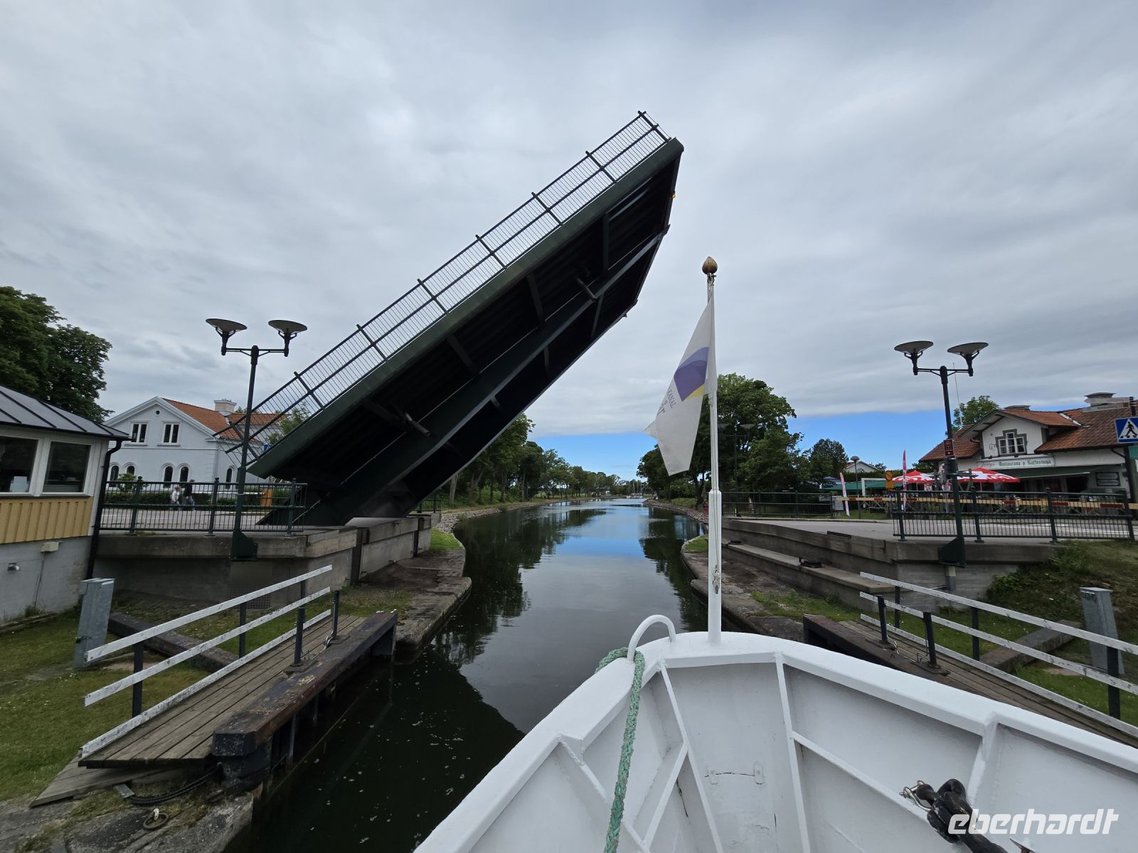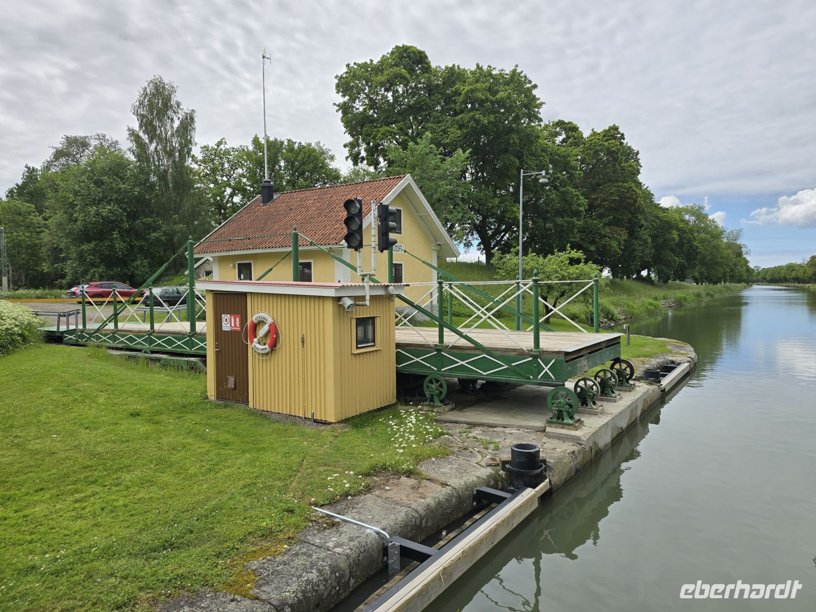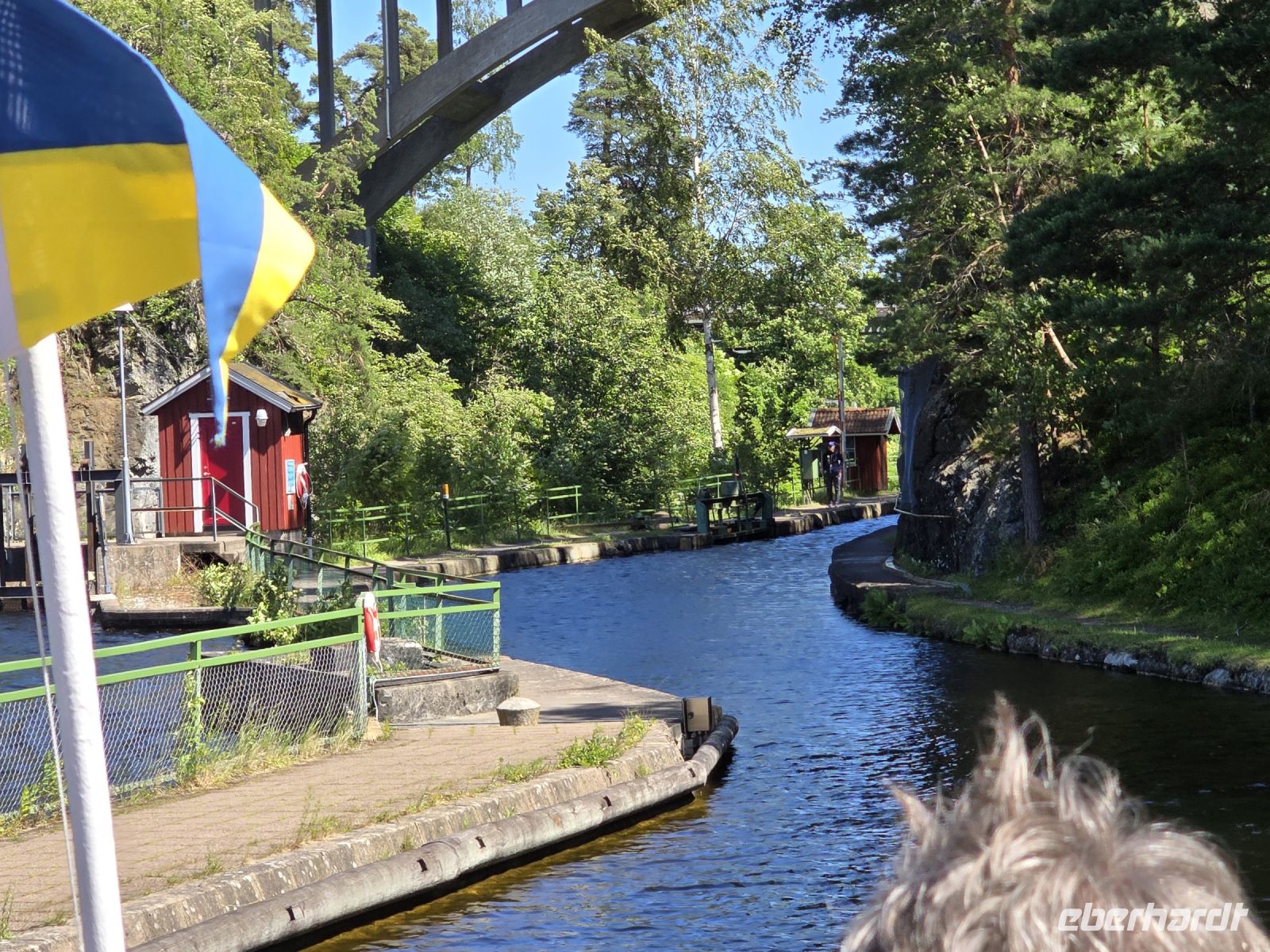 Von Linköping aus haben wir nur eine kurze Anfahrt zum Gothakanal, zu der Schleusenanlage in Berg. Wir sind frühzeitig losgefahren damit wir noch ausreichend Zeit haben uns die Schleusenanlage, die Siebenstufige, anzuschauen. Schon morgens um 09:00 Uhr ist hier lebhafter Verkehr. Viele Segelboote queren hier das Land Schweden und es herrscht Betrieb von beiden Seiten. Die Reise geht entweder von Göteborg nach Stockholm oder umgekehrt. Wir werden in Richtung Göteborg fahren, aber nur ein kurzes Stück von Berg bis nach Borensberg.