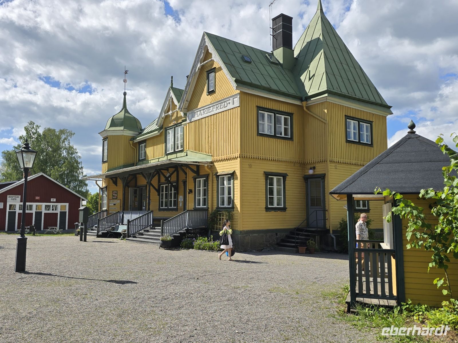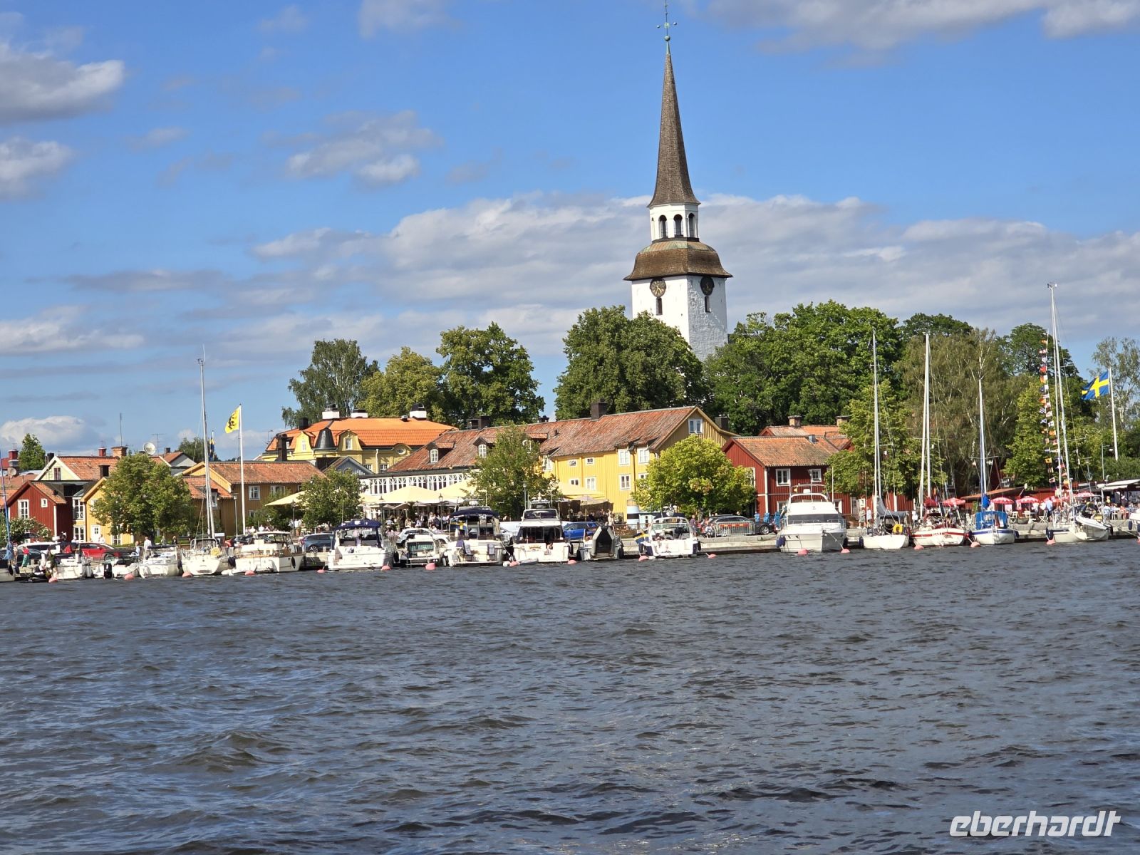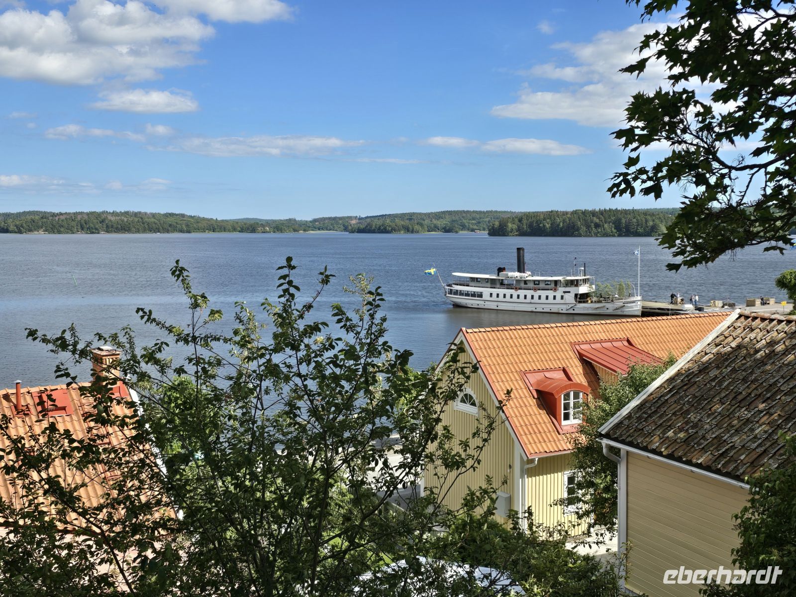 Nach dem Frühstück beladen wir unser Gepäck und machen uns dann auf den Weg vom Westen in nordöstliche Richtung mit einem Zwischenstopp zur Mittagszeit am Schloss Örebro und einem längeren Aufenthalt am schönen Mälaer See und bei Schloss Gripsholm. Auf der Festwiese am Schloss ist die Mittsommer Feier gerade gestartet als wir dort eintreffen. Die Frösche tanzen schon ausgelassen um den Maibaum, Kinder, Eltern und Großeltern gemeinsam freuen sich auf diesen Tanz und eine große Schar windet sich im Kreis um die geschmückte Stange. Kaum sind wir ausgestiegen gesellen sich einige unserer Reisegruppe in den Tanzreigen ein. Alle haben tatsächlich viel Spaß bei dieser Feier. Die Gegend von Mariefred und Gripsholm ist eine richtige Wohlfühlecke, nicht nur zu Mittsommer sondern zu jeder Jahreszeit ist es einfach eine Augenweide das Schloss die Stadt und den Mälersee zu erleben. Noch immer fährt das dampfbetriebene, traditionsreiche Schiff mit dem Namen „Mariefred“, von Stockholm über den Mälaersee bis zum Anleger unterhalb der Kirche in Mariefred. Diese 4-stündige Fahrt weckt bei den Reisegästen die Erinnerung an den Roman von Kurt Tucholsky, der sich hier in diesen Ort verliebt hat.