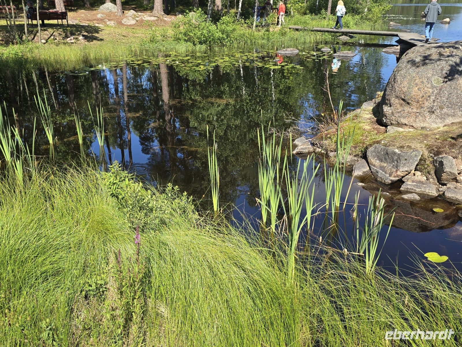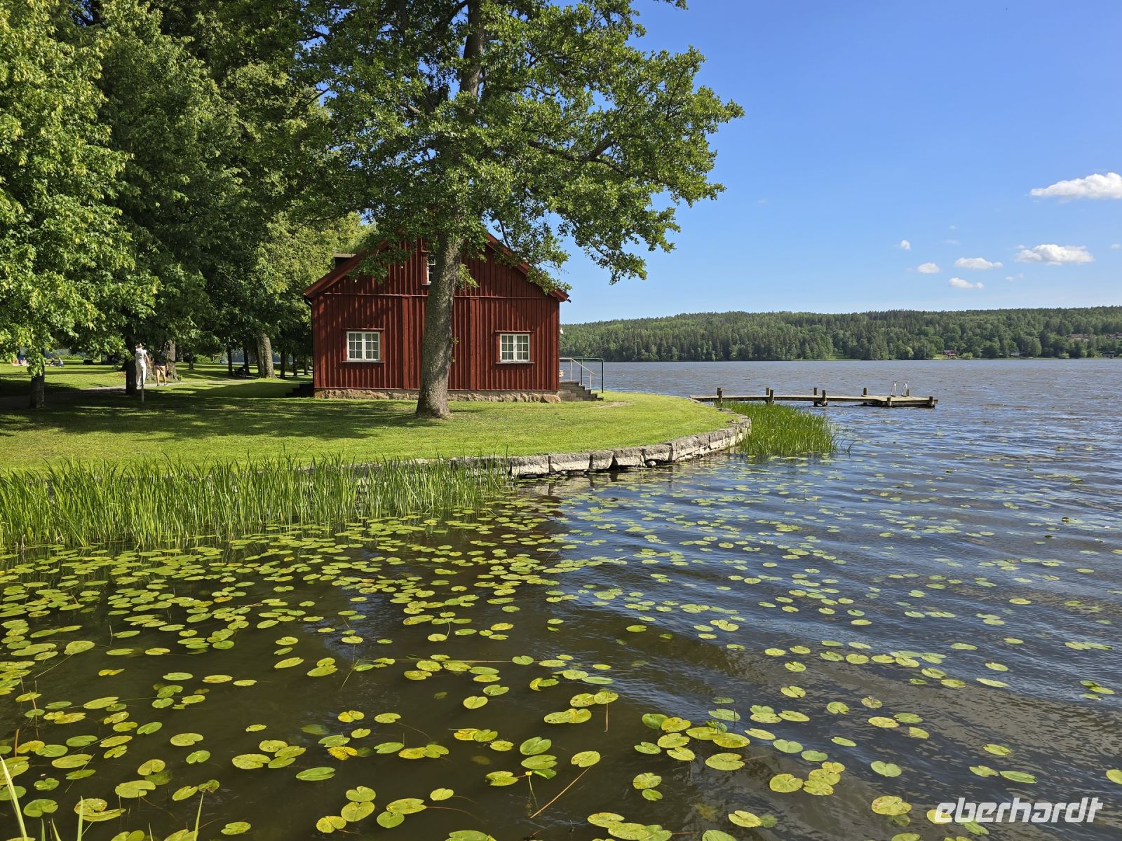 Bei Vänersborg, in dem schön angelegten Skräckle Park, spazieren wir am Ufer des Sees entlang, gelangen über einen Steg auf eine vorgelagerte Insel und erfassen so langsam die Größe dieses Sees. Es ist der größte See Schwedens, circa viermal so groß wie der Bodensee und mit nicht weniger als 22000 kleinen Inseln. Ein kleines Meer im Binnenland gelegen. Das war wieder ein gelungener Tag mit schönen Eindrücken aus einer Bilderbuchlandschaft hier in Schweden
