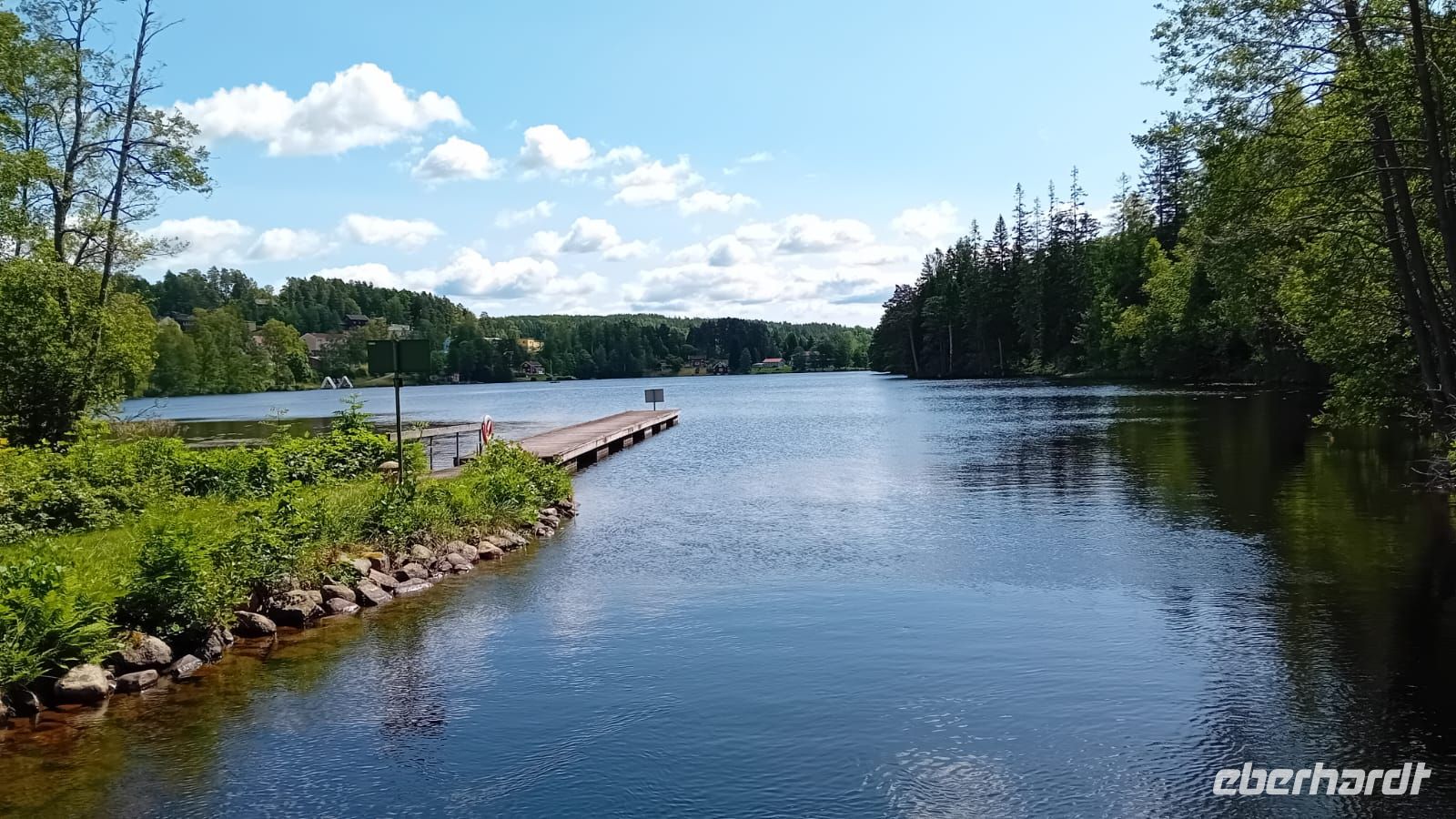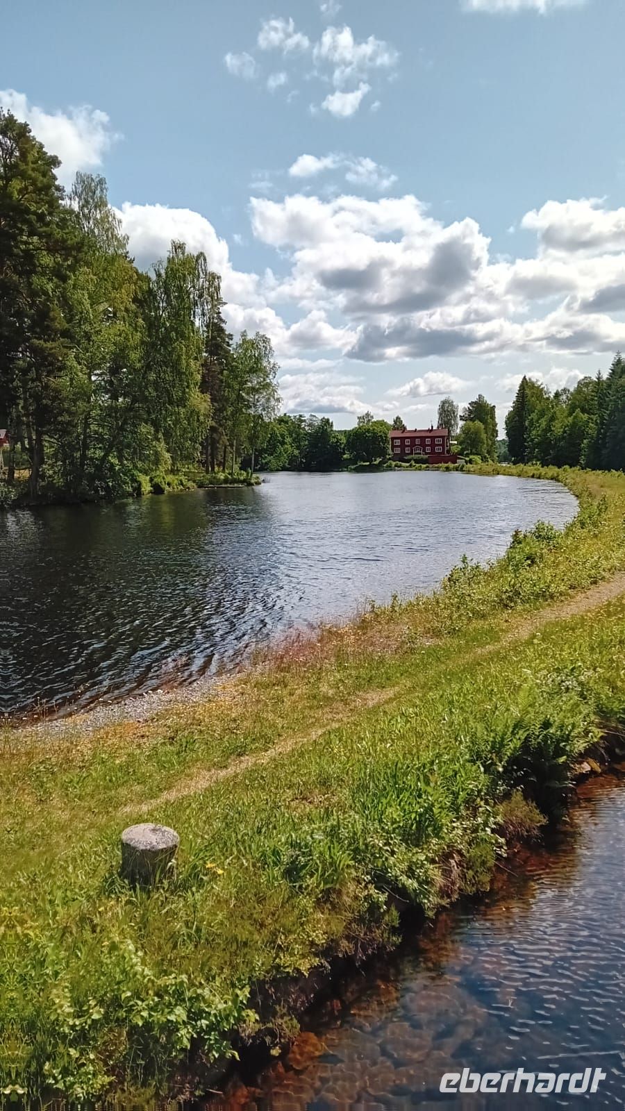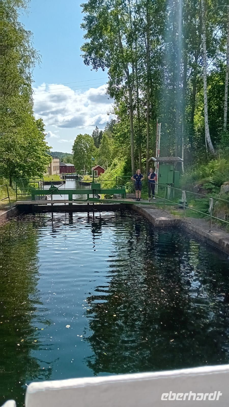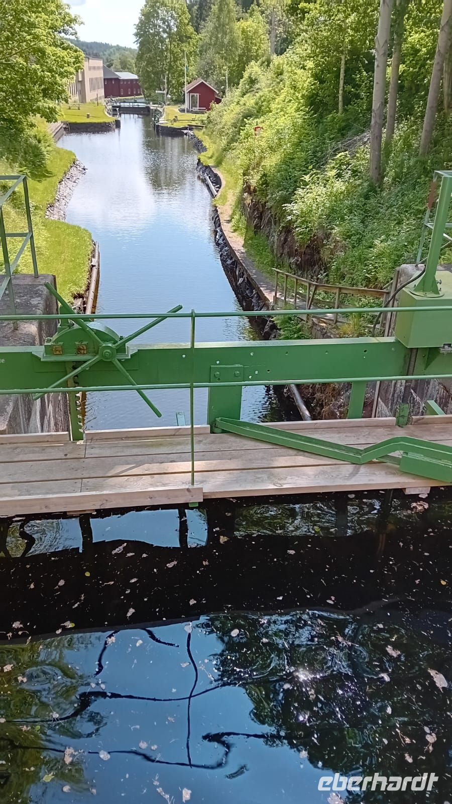 Das leise Plätschern des Wassers und das sanfte Gleiten des Bootes wurden zu unserem einzigen Begleiter. Ohne Trubel und Gedränge fühlten wir uns fast wie allein mit der Natur – als ob der Kanal und die umliegenden Wälder nur für uns geschaffen wären. Jeder Blick wurde so zu einem stillen, persönlichen Moment: die spiegelglatte Wasseroberfläche, die sich unter der Sonne funkelnd ausbreitete, die friedlichen Ufer mit ihren roten Holzhäusern und das satte Grün der Bäume, das sich im Wasser spiegelte.