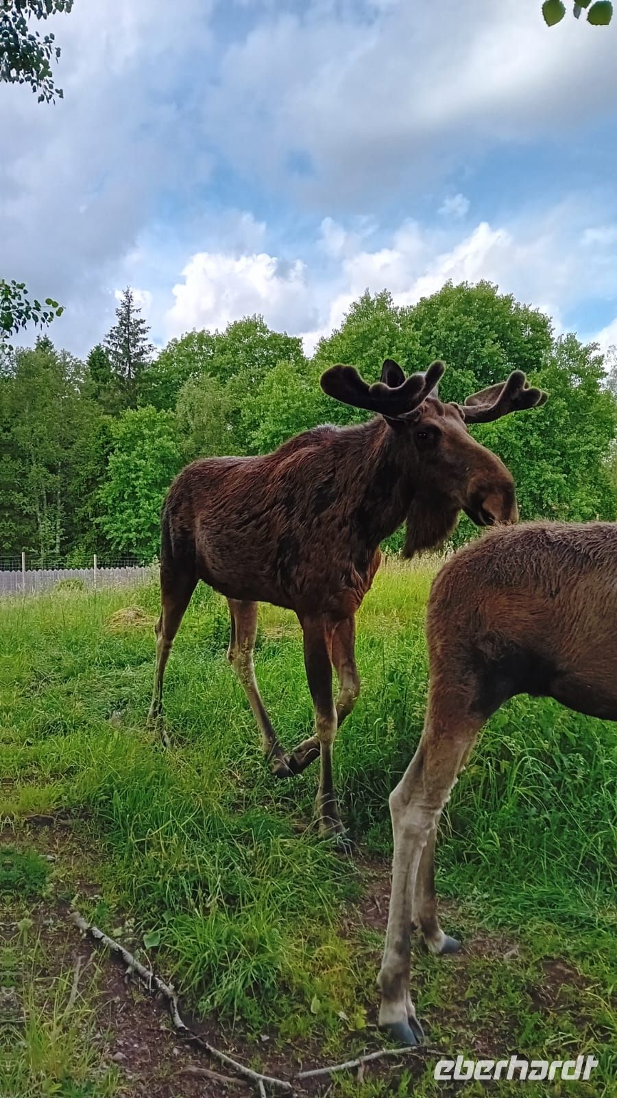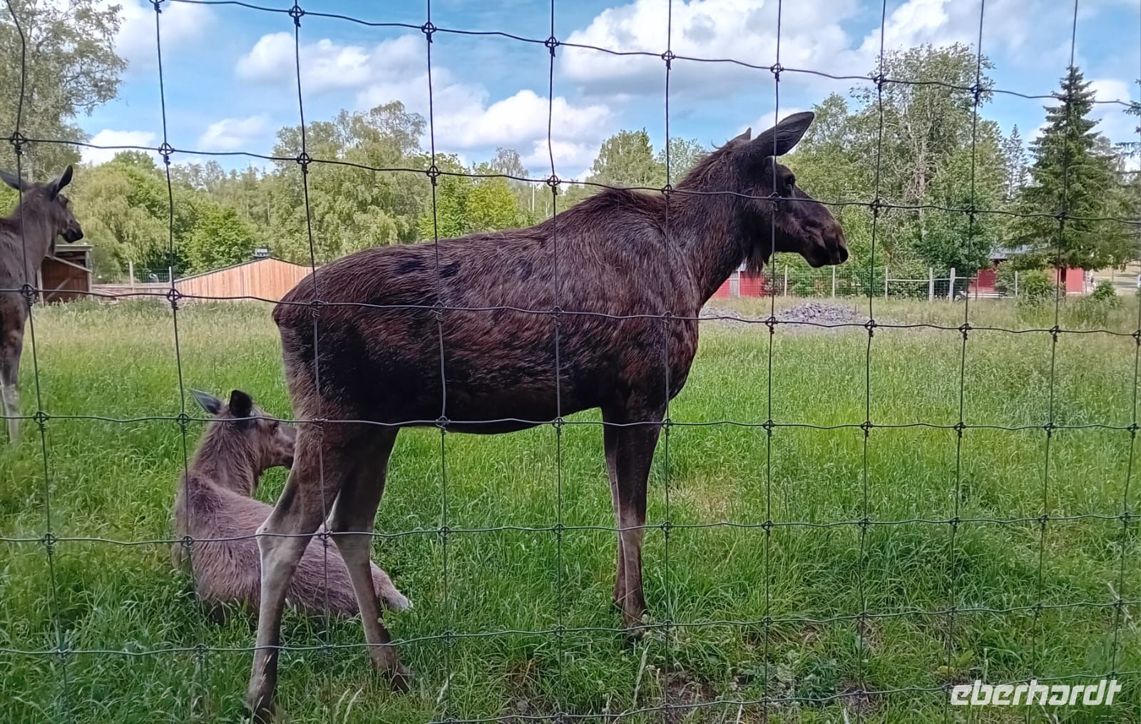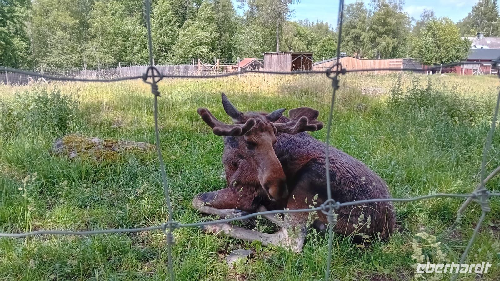 Nach einem entspannten 2,5-stündigen Aufenthalt im Glasreich von Kosta setzten wir unsere Reise fort und erreichten bald den Elchpark Grönasens. Dort öffnete sich für uns eine ganz besondere Welt: Wir begegneten dem majestätischen König der skandinavischen Wälder – dem Elch. Der Parkbesitzern zeigte uns eine Elchfamilie mit 2 kleinen Baby Elchen. Inmitten der ruhigen, grünen Natur konnten wir diese beeindruckenden Tiere aus nächster Nähe beobachten und ihre stille Kraft spüren. Ein unvergesslicher Moment, der uns die wilde Schönheit Schwedens auf eindrucksvolle Weise näherbrachte.