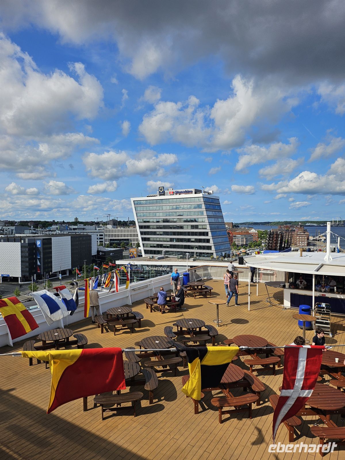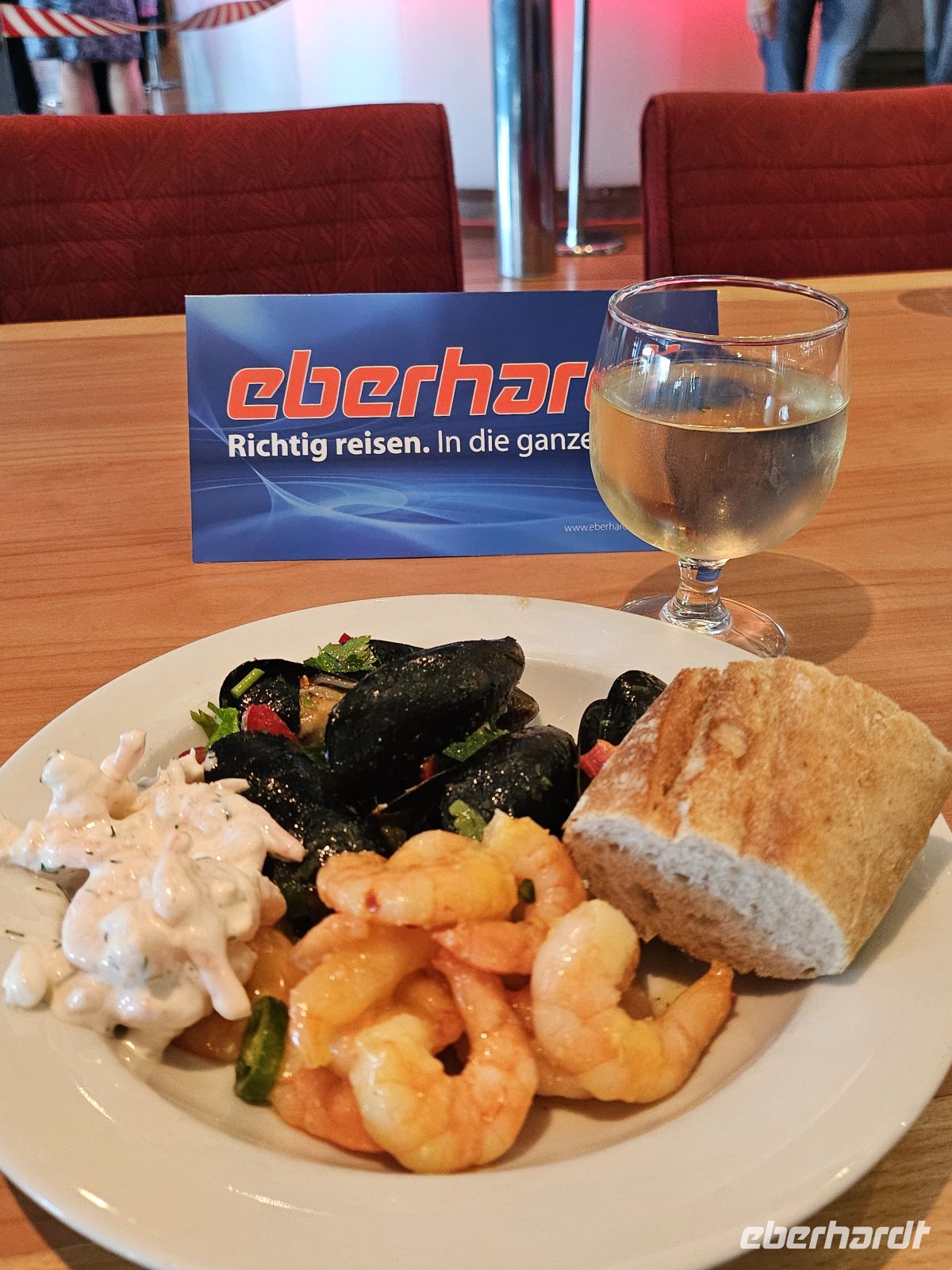 Danach blieb noch Zeit, das Schiff zu erkunden – sei es das Sonnendeck mit Bar, die Shops oder einfach der Wind in den Haaren. Um 18 Uhr wartete dann das Abendessen im „Taste“ auf Deck 7: ein reiches Buffet, bei dem besonders die Meeresfrüchte-Fans auf ihre Kosten kamen – frisch, vielseitig und sehr nordisch.