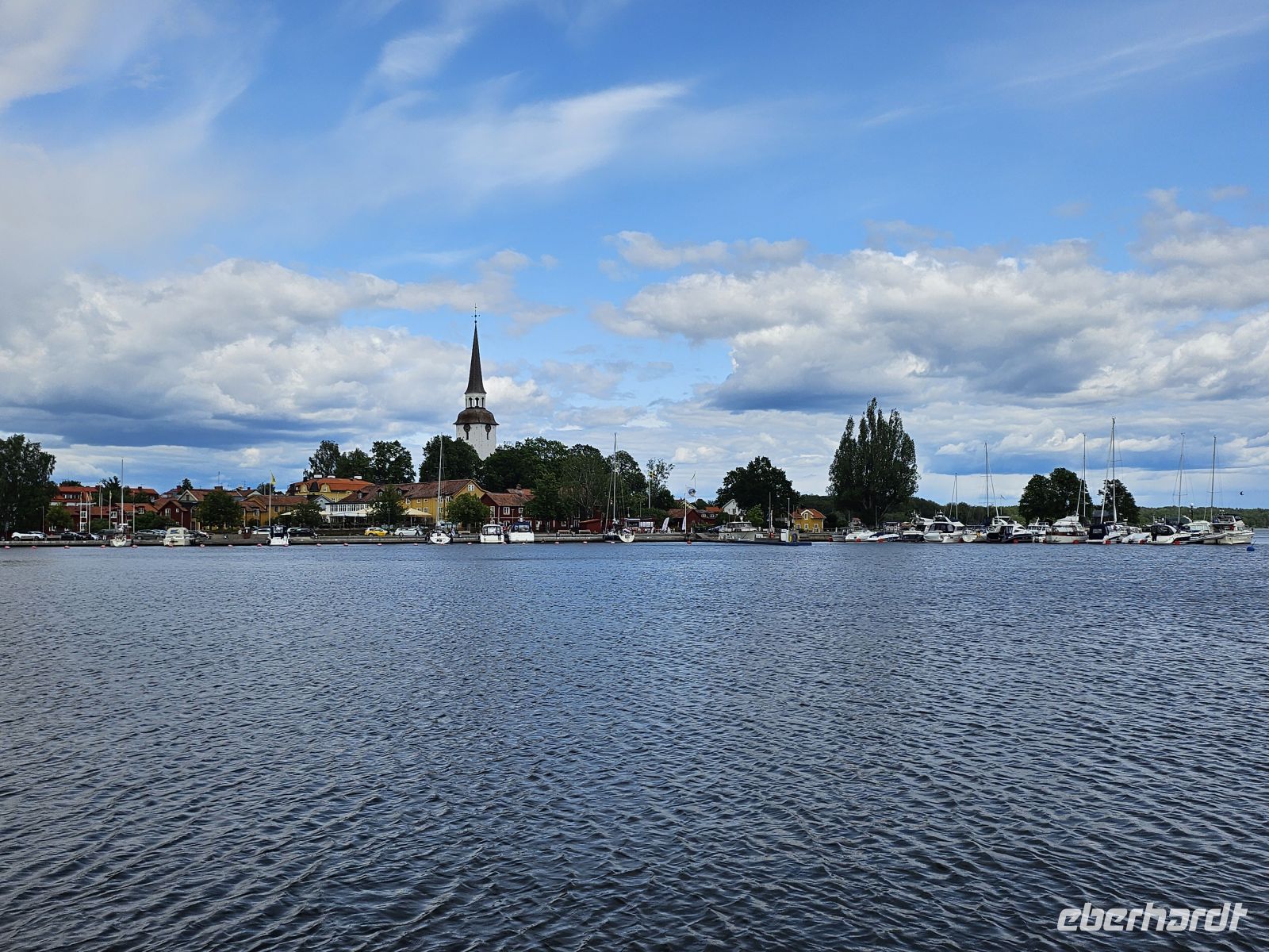 Gegen 13:30 Uhr erreichten wir Mariefred und Schloss Gripsholm, ein Ort, der Literaturfreunde sofort an Tucholsky denken lässt – aber auch alle anderen mit seinem Charme begeistert. Das Schloss direkt am See war eine Augenweide, aber auch die liebevoll erhaltene Innenstadt mit kleinen Geschäften, Cafés und Supermarkt lud zum Schlendern ein.