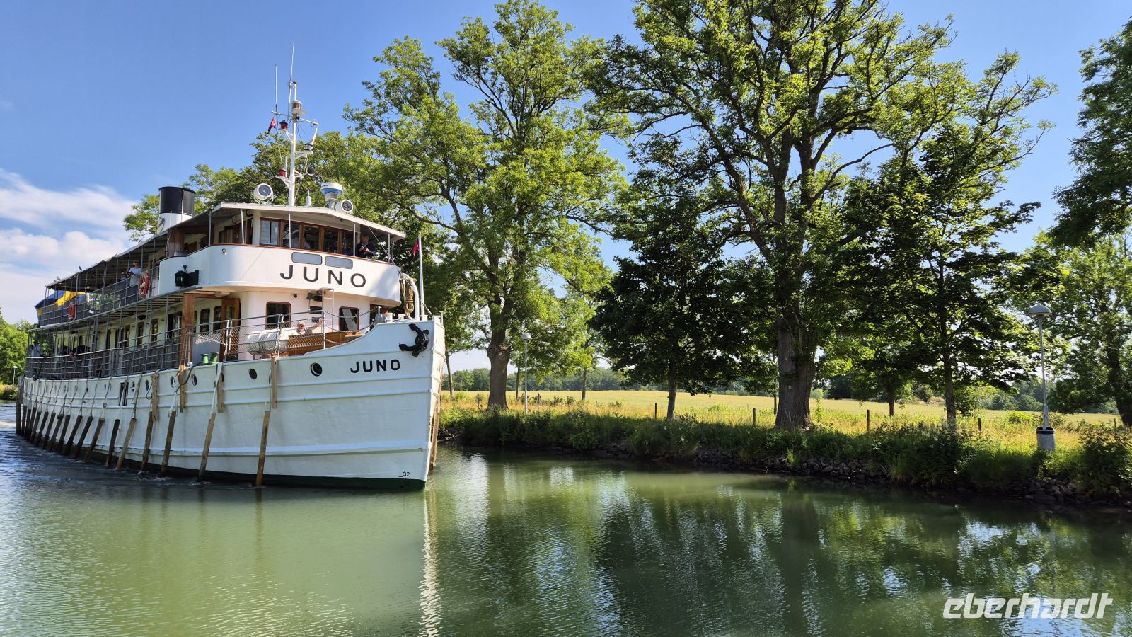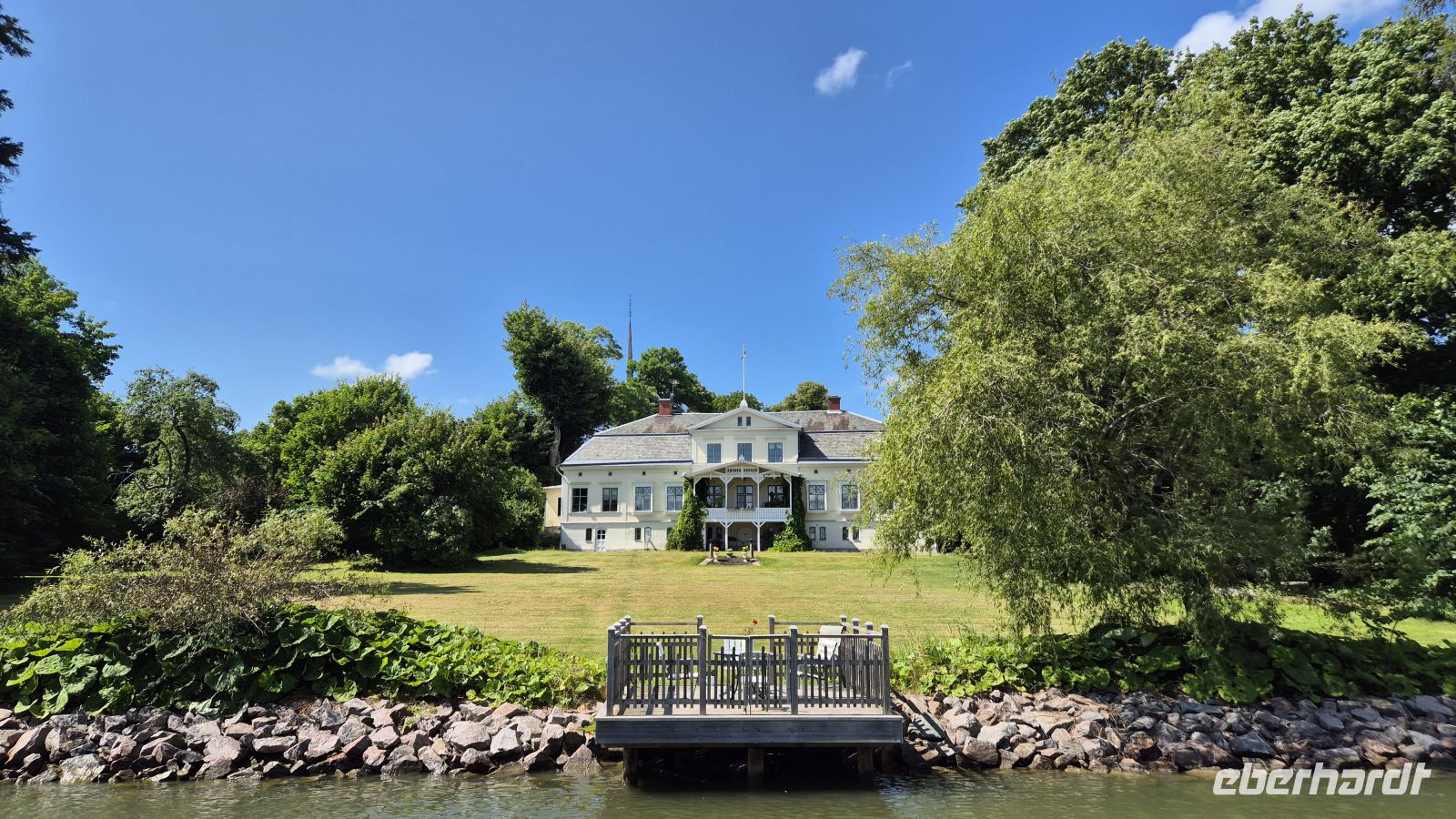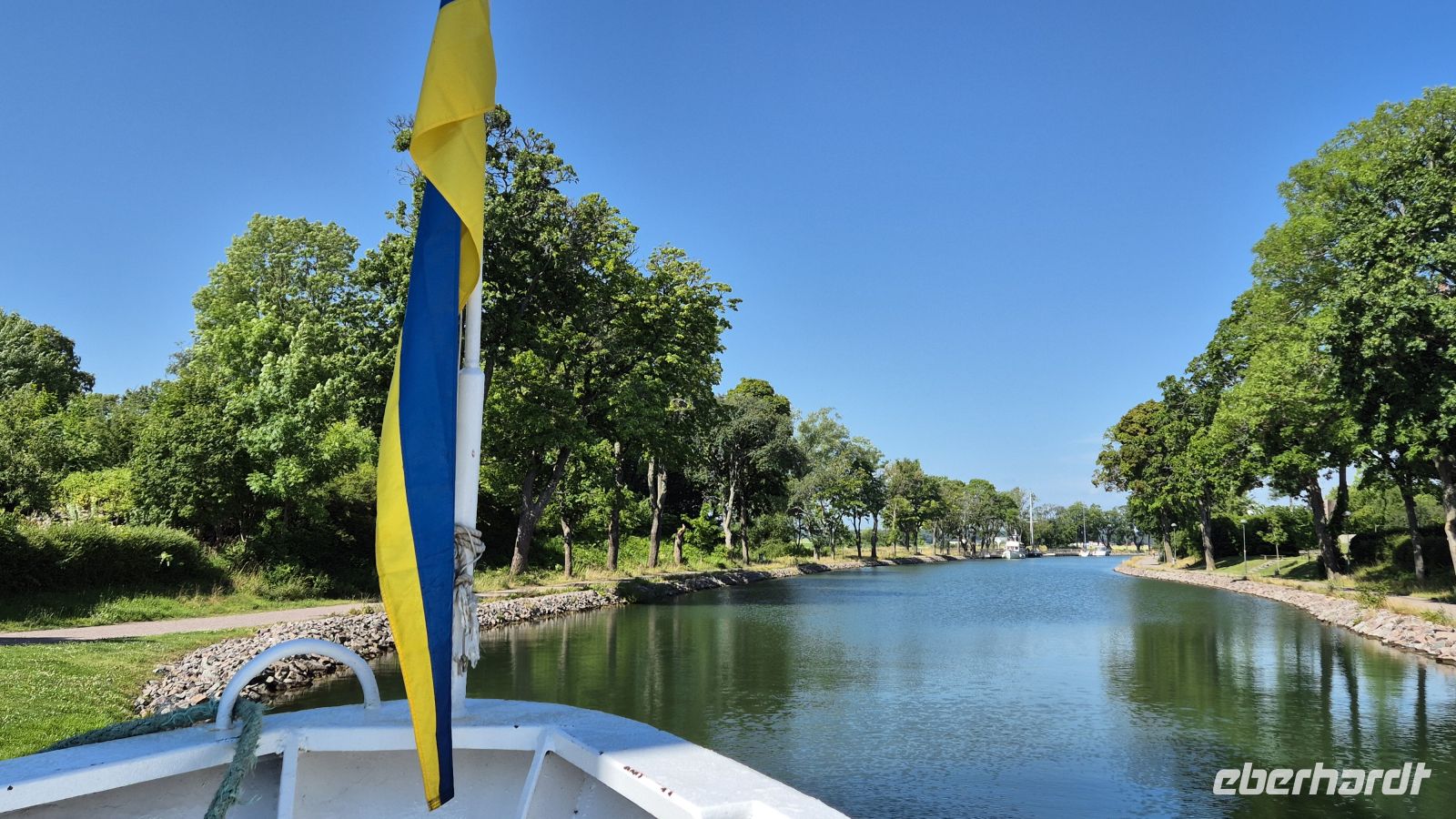 Am nächsten Morgen haben wir nur eine kurze Fahrt vor uns: auf dem Programm steht der berühmte Götakanal. Die Wasserstraße verbindet auf 190,5 Kilometern Ostsee und Trollhättakanal (und von dort aus die Nordsee) und sollte einst die Zölle Dänemarks im Kattegat vermeiden. Heute der Kanal für die Frachtschifffahrt längst zu klein und er ist zur Touristenattraktion im Sommer geworden. Unser Weg führt uns nach Berg, wo unter anderem die längste Schleusentreppe des Kanals zu finden ist. Insgesamt benötigt man 58 Schleusen und etwa 7 Tage um die gesamte Strecke zurückzulegen. So viel Zeit haben wir leider nicht, aber an Bord der MS Wasa Lejon werden wir wenig später immerhin 21 Kilometer und 9 Schleusen des Kanals kennenlernen können. Zunächst jedoch werfen wir von Land aus einen Blick auf die technischen Meisterwerke und genießen die Sonne, die schon jetzt kräftig vom Himmel strahlt. Wenig später sind wir dann an Bord und genießen die gemütliche Schifffahrt nach Borensberg bei perfektem Wetter.