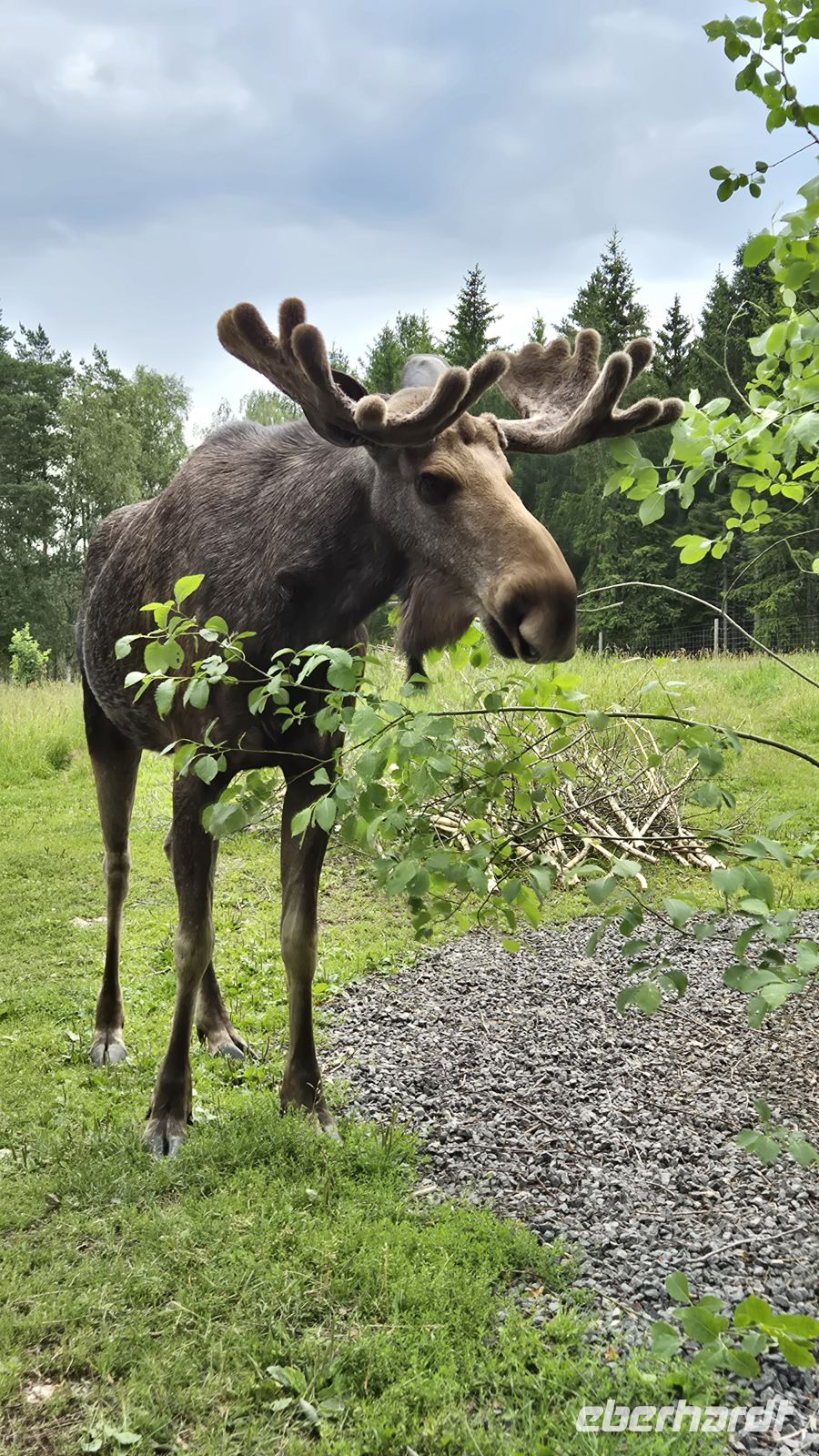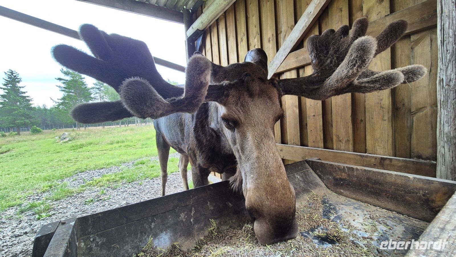 Am Mittag folgt dann noch ein kleines Highlight: im Grönåsens Elchpark können wir dem König des Waldes ganz nah kommen. Seit 1994 existiert das Familienunternehmen als einer der größten Elchparks Schwedens und ermöglicht es jung und alt das schwedische Lieblingsmaskottchen gefahrlos kennenzulernen – denn für die etwa 400.000 freilebenden Elche stellen Autos die einzige echte Gefahr da, und umgekehrt ist eine Elchbegegnung für einen Kraftfahrer meist auch kein spaßiges Erlebnis. Wir genießen also die gemütliche Version und freuen uns besonders darüber, dass wir neben dem kontaktfreudigen Kaspar auch den Nachwuchs als kennenlernen dürfen. Baby-Elche sind aber auch süß!