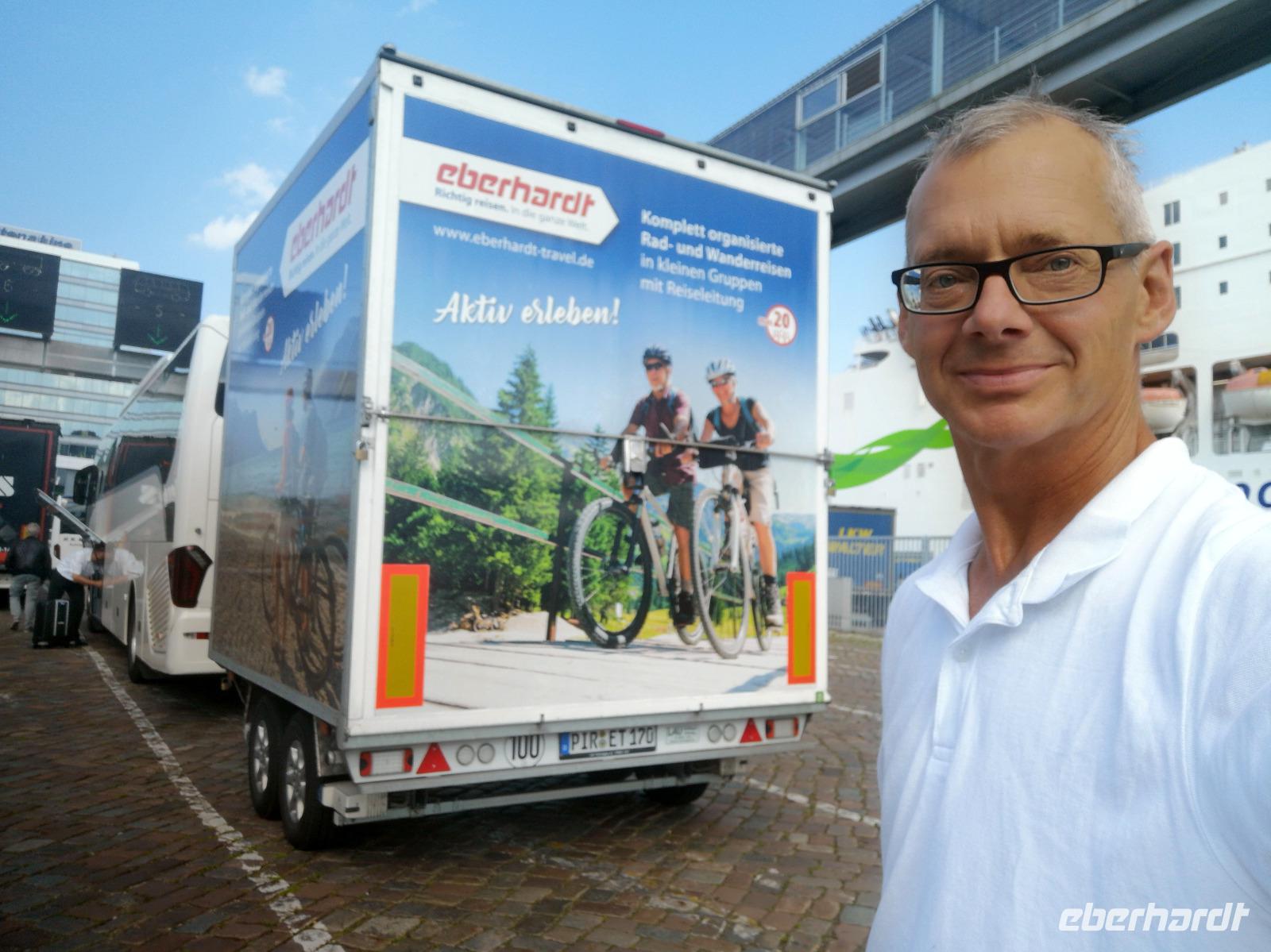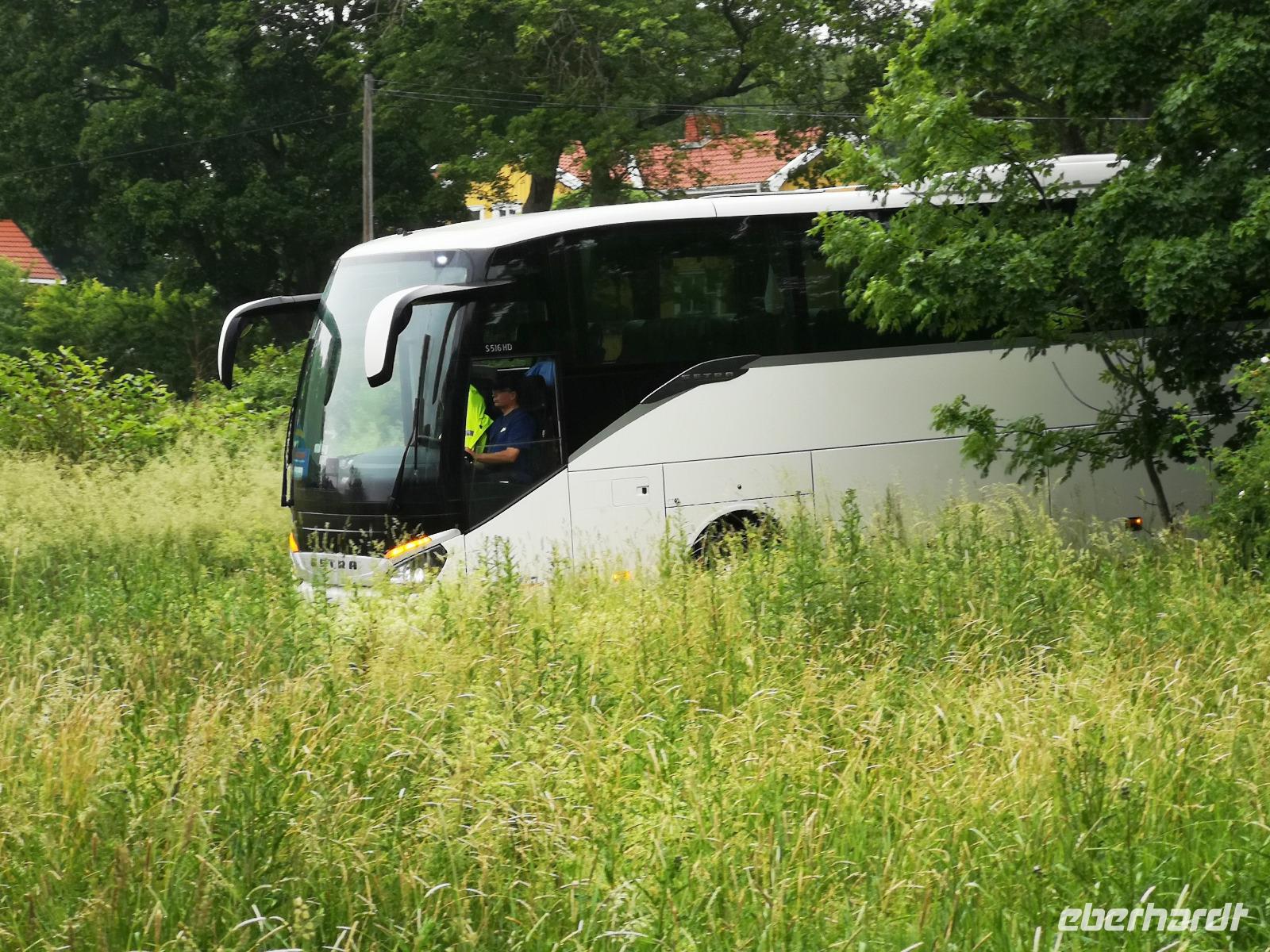 Wir verlassen Malmö um 7:45, um rechtzeitig zum Check-In an der TT-Fähre in Trelleborg zu sein. Unsrerseits klappt alles reibungslos, allerdings verzögert sich die Abfahrt um eine Stunde. Die Ostsee-Überfahrt dauert 5,5 Stunden und so können wir Rostock erst kurz vor 16:00 verlassen. 400Km bis Leipzig,500 bis Dresden, und die Rückfahrt verlangt etwas Geduld, da einige kleinere Staus eine zügige Fahrt behindern. Um 22:00 erreichen wir den Flughafen Leipzig - Rl Martin und RBL Armin verabschieden sich hier. Als der Bus um 23:45 Dresden erreicht hat, hat er 3100km mehr auf dem Tacho als bei der Abfahrt am 17.Juni.