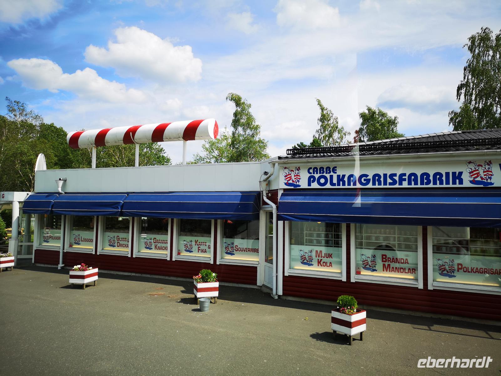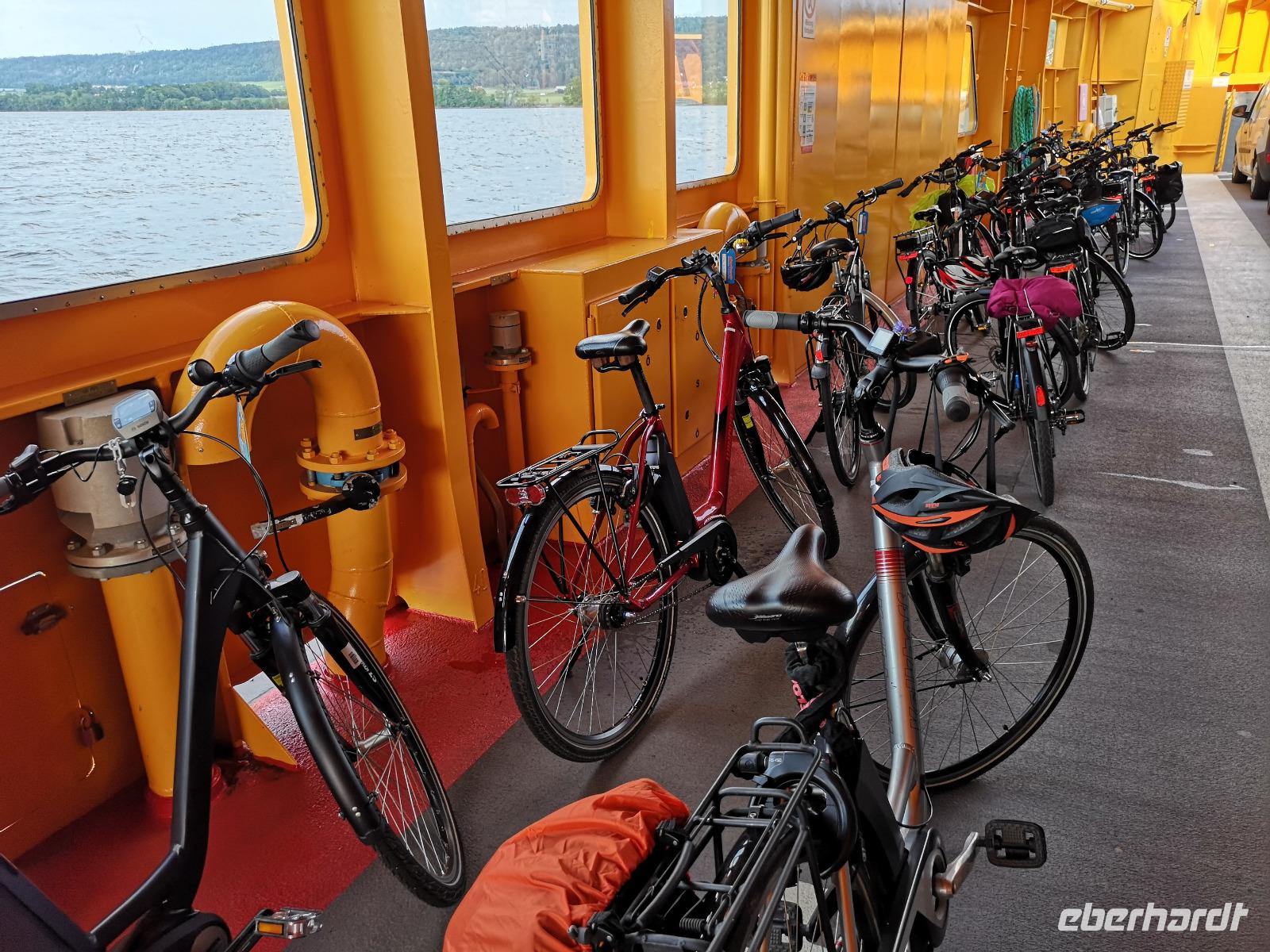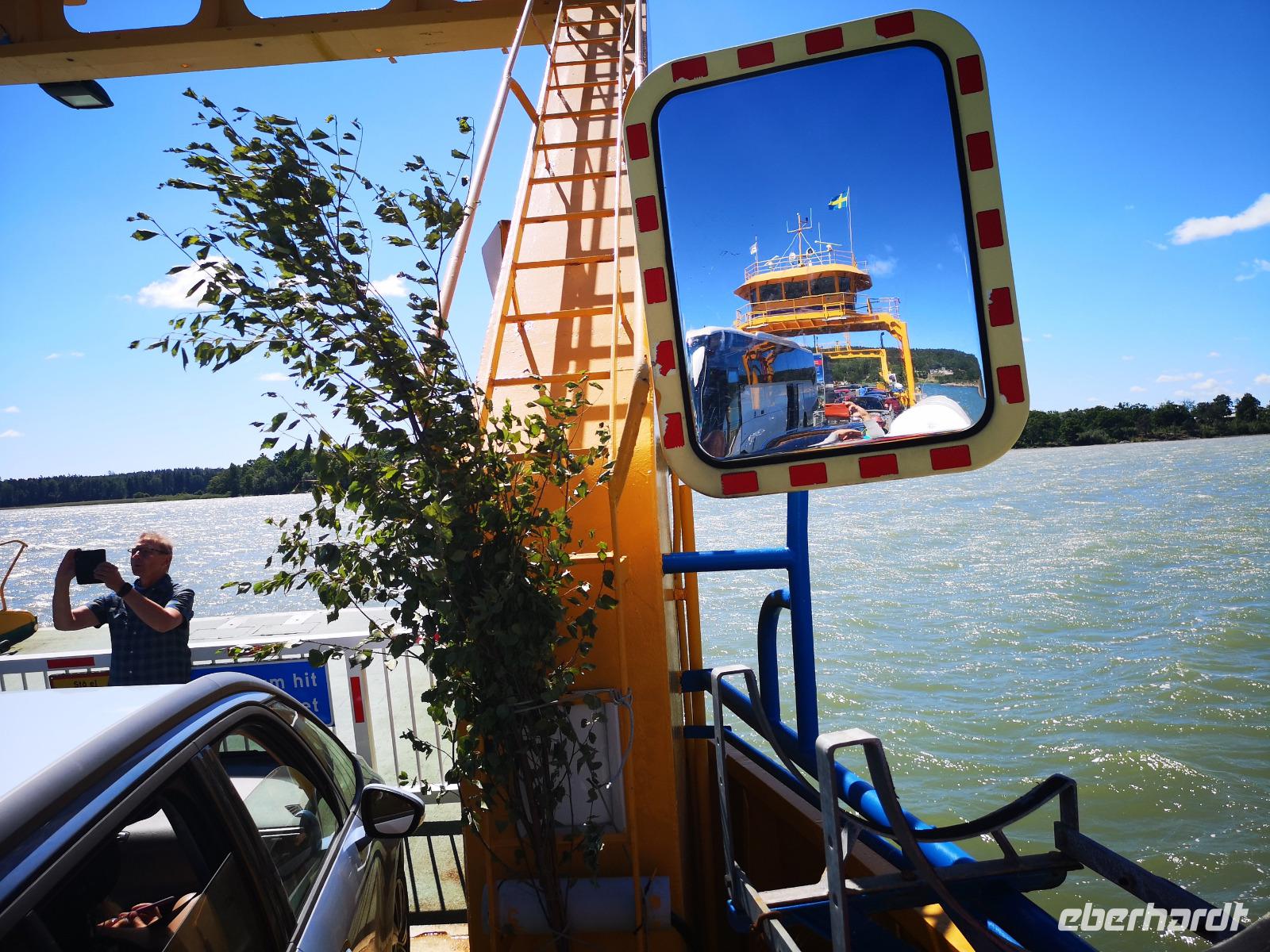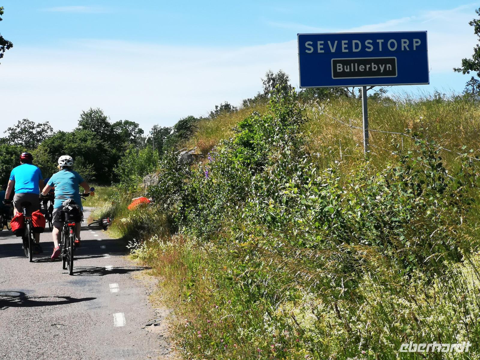 Nach einer ruhigen Fahrt durch den Großen Belt (Dänemark) und das Kattegat erreicht die „Scandinavica" der Stena Lines Göteborg um 9:30 Uhr. Um 10:00 Uhr wartet die versammelte Gruppe außerhalb des Terminals auf den Bus, als es zu regnen beginnt; glücklicherweise nur kurz. Von Göteborg geht es auf den „Riksvägen 40" knapp 200km nach Osten, vorbei an Jönköping nach Gränna. Unser erstes Besuchsziel der Reise ist ein sehr süßes, eine Polkagrisarfabrik. Zuckerstangen, noch immer traditionell handgefertigt sind das berühmteste Produkt des Ortes. Die Zuckerstangen, sowie zahlreiche weitere Leckereien sind nicht nur in Schweden beliebt, sondern werden weltweit exportiert. Abgesehen hiervon ist der Ort Gränna auch ein pittoreskes Fleckchen, aber die Zeit zum Bummeln ist knapp - wir wollen zu unserer ersten Radtour starten! Mit den Rädern geht's rauf auf die Fähre, und wir setzen wir über auf die ca. 6km entfernte Insel Visingsö, der mit 25 km² die größte Insel im schwedischen Vätternsee. Die Überfahrt dauert eine knappe halbe Stunde.