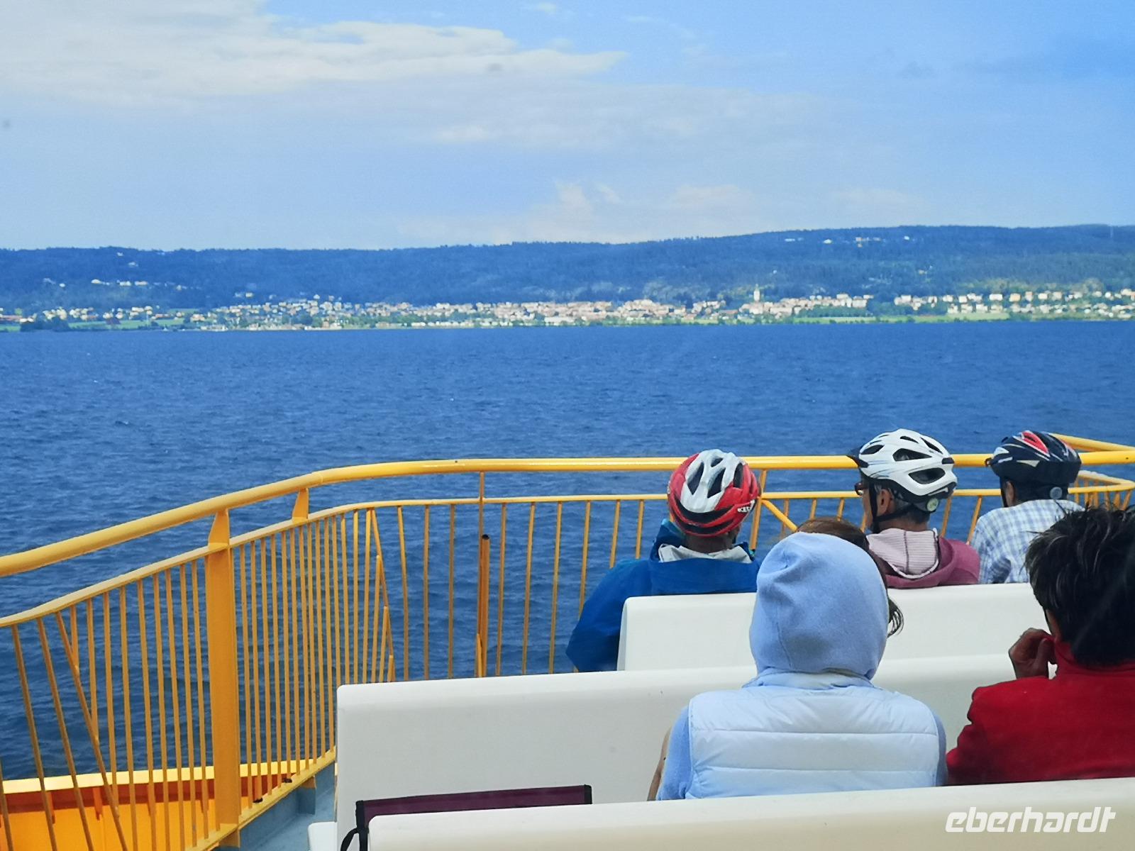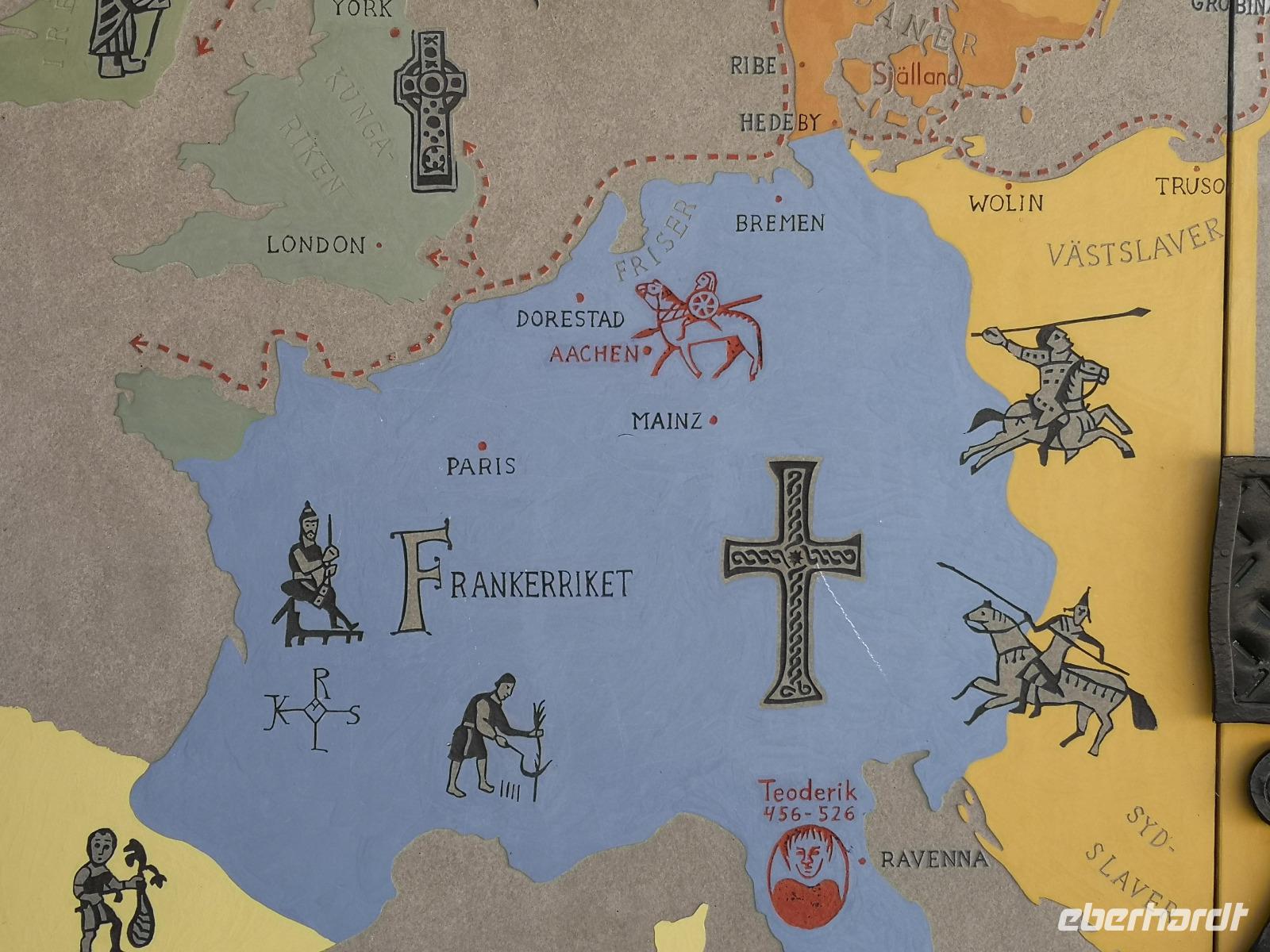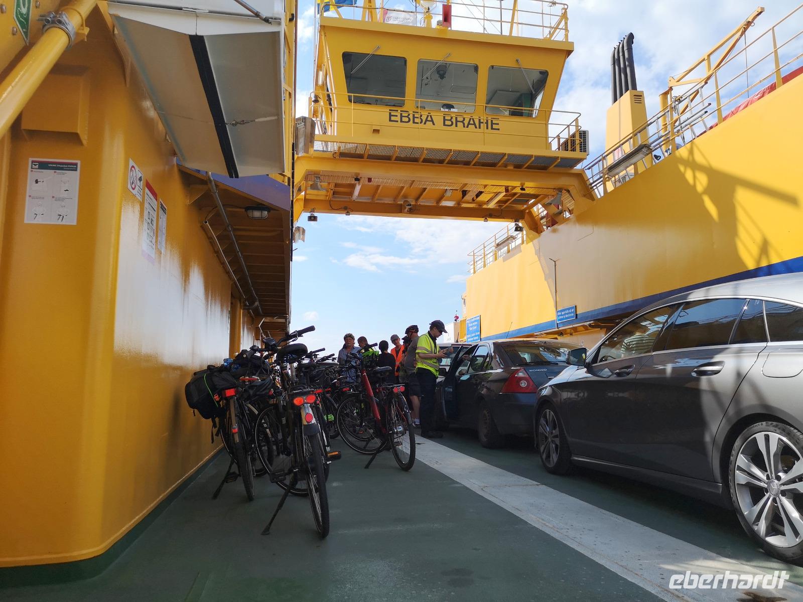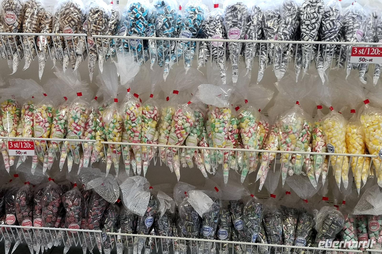 Nach einer ruhigen Fahrt durch den Großen Belt (Dänemark) und das Kattegat erreicht die „Scandinavica" der Stena Lines Göteborg um 9:30 Uhr. Um 10:00 Uhr wartet die versammelte Gruppe außerhalb des Terminals auf den Bus, als es zu regnen beginnt; glücklicherweise nur kurz. Von Göteborg geht es auf den „Riksvägen 40" knapp 200km nach Osten, vorbei an Jönköping nach Gränna. Unser erstes Besuchsziel der Reise ist ein sehr süßes, eine Polkagrisarfabrik. Zuckerstangen, noch immer traditionell handgefertigt sind das berühmteste Produkt des Ortes. Die Zuckerstangen, sowie zahlreiche weitere Leckereien sind nicht nur in Schweden beliebt, sondern werden weltweit exportiert. Abgesehen hiervon ist der Ort Gränna auch ein pittoreskes Fleckchen, aber die Zeit zum Bummeln ist knapp - wir wollen zu unserer ersten Radtour starten! Mit den Rädern geht's rauf auf die Fähre, und wir setzen wir über auf die ca. 6km entfernte Insel Visingsö, der mit 25 km² die größte Insel im schwedischen Vätternsee. Die Überfahrt dauert eine knappe halbe Stunde.