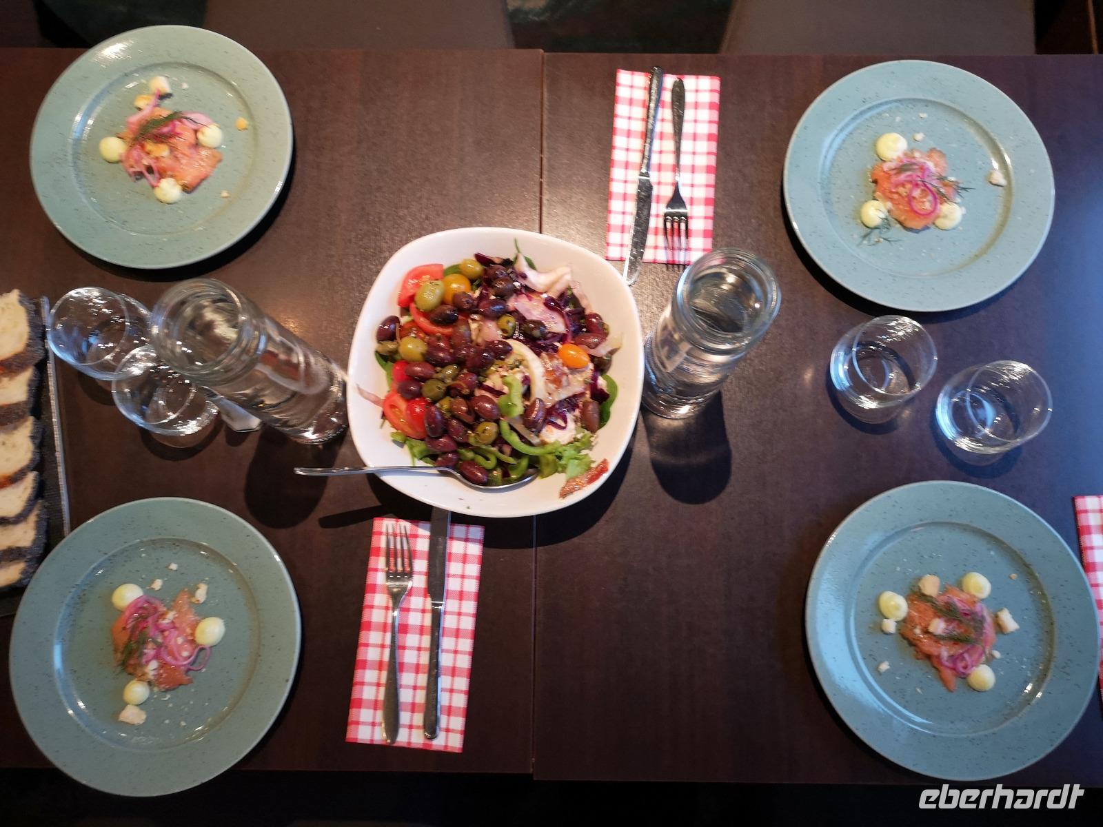 Maulbeerwälder, Kornblumenfelder und Grabhügel säumen den Rückweg zur Fähre, die wir viertel vor sechs betreten - um 18:00 haben wir von den vier Kilometern auf dem Vätternsee schon fast einen zurückgelegt. In Gränna wartet schon der Bus, und während die beiden Reisebegleiter die Räder in den Anhänger laden, können die Teilnehmer bei einem Tagesabschlußdrink aus dem reichhaltigen Angebot von „Thomas´Bordbistro" die ersten Eindrücke und Erfahrungen austauschen. Punkt 19:00 Uhr starten wir zur Fahrt in unser Hotel „Frimurrarehotellet" nach Linköping, welches wir schließlich um 20:20 erreichen. Nach dem zügigen Check-In treffen wir uns zum gemeinsamen Abendessen im stilvollen Restaurant.