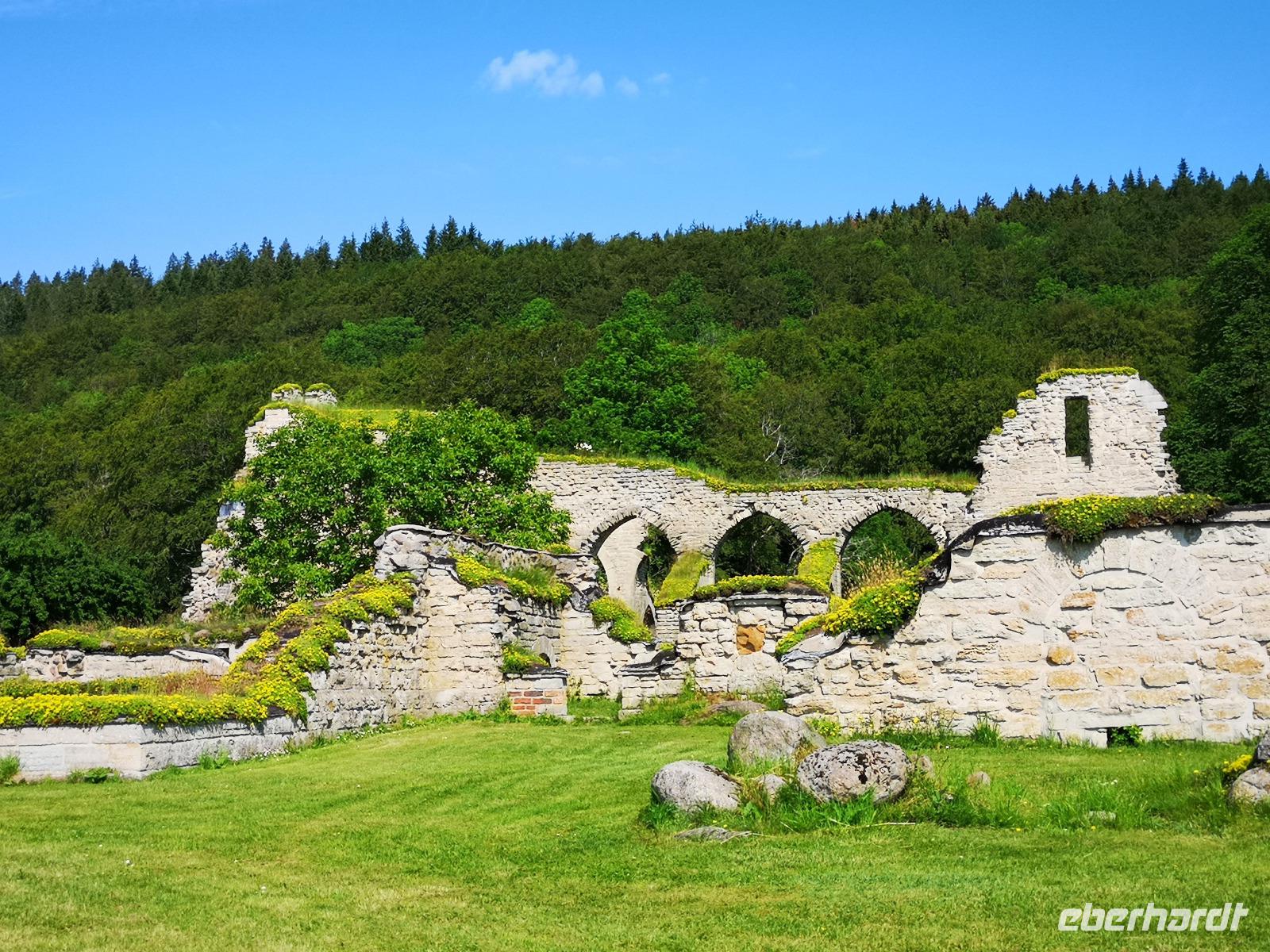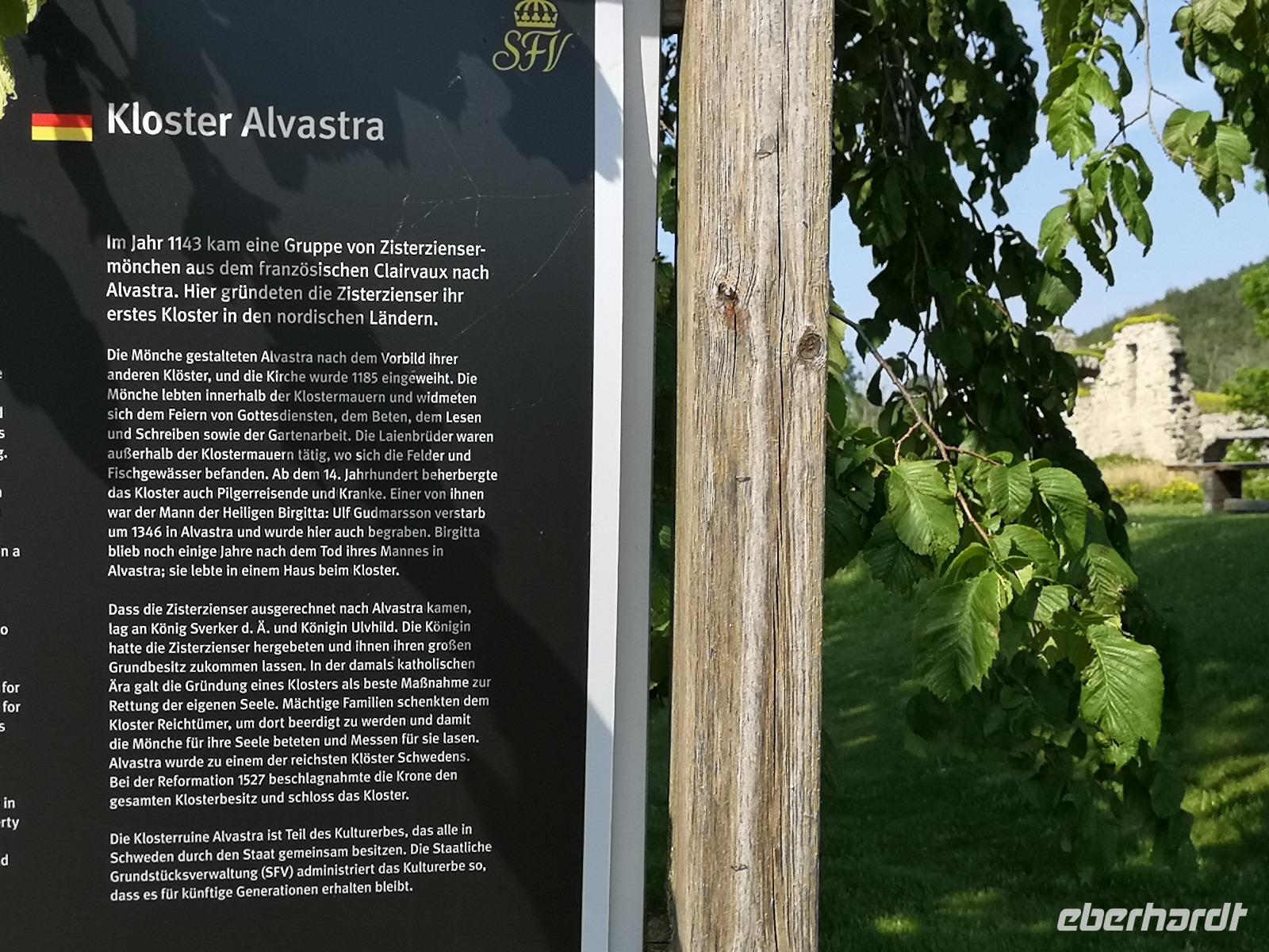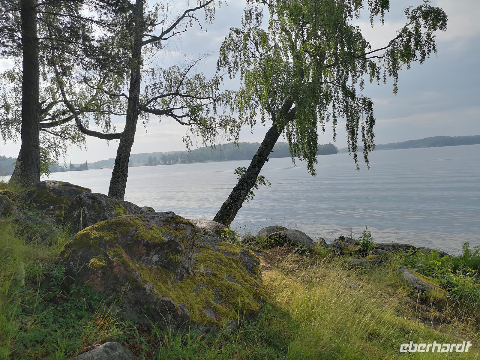 Nur ein paar hundert Meter vom Fähranleger entfernt erreichen wir die „Brahekyrkan", die Kirche der schwedischen Adelsfamilie Brahe, wo wir Gelegenheit zu einer kurzen Besichtigung haben. Weiter geht's zu den Ruinen von Näs slott zur Südspitze der Insel, von wo aus das allerfrüheste Schweden regiert wurde. Näs slott war zu Beginn des 13. Jahrhunderts Schwedens erste Reichsburg - Zentrum der schwedischen Königsmacht! 1318 wurde sie an die Dänen verpfändet und nach einer Anzahl von Kämpfen zerstört. Glanz und Ruhm der alten Zeiten läßt sich nicht mehr erkennen, aber die geschichtliche Bedeutung kann man durchaus noch erahnen.