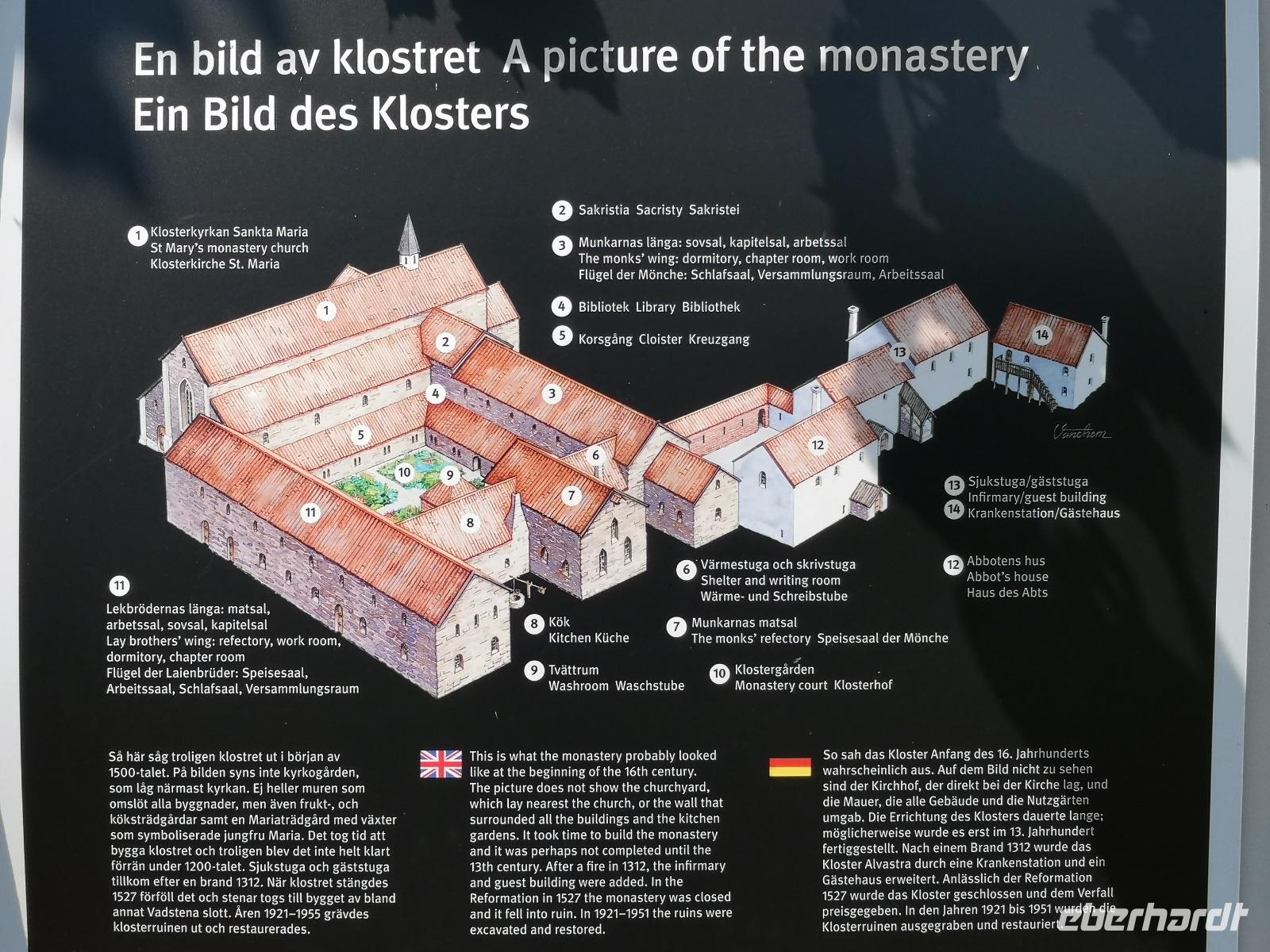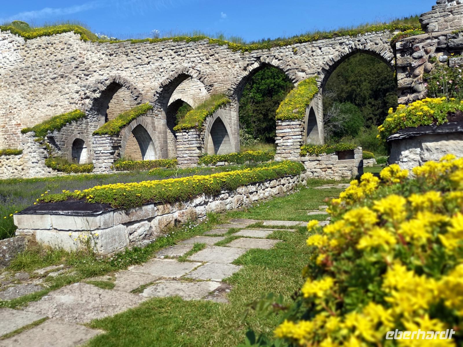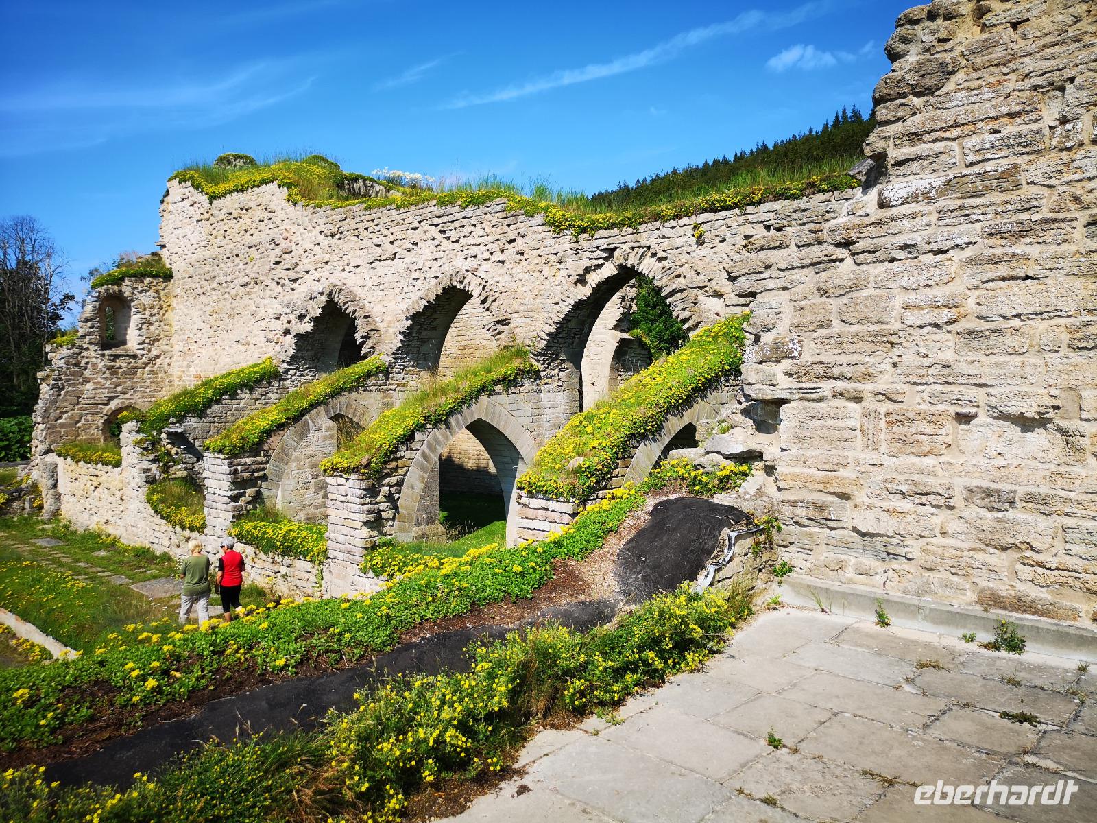 Nur ein paar hundert Meter vom Fähranleger entfernt erreichen wir die „Brahekyrkan", die Kirche der schwedischen Adelsfamilie Brahe, wo wir Gelegenheit zu einer kurzen Besichtigung haben. Weiter geht's zu den Ruinen von Näs slott zur Südspitze der Insel, von wo aus das allerfrüheste Schweden regiert wurde. Näs slott war zu Beginn des 13. Jahrhunderts Schwedens erste Reichsburg - Zentrum der schwedischen Königsmacht! 1318 wurde sie an die Dänen verpfändet und nach einer Anzahl von Kämpfen zerstört. Glanz und Ruhm der alten Zeiten läßt sich nicht mehr erkennen, aber die geschichtliche Bedeutung kann man durchaus noch erahnen.