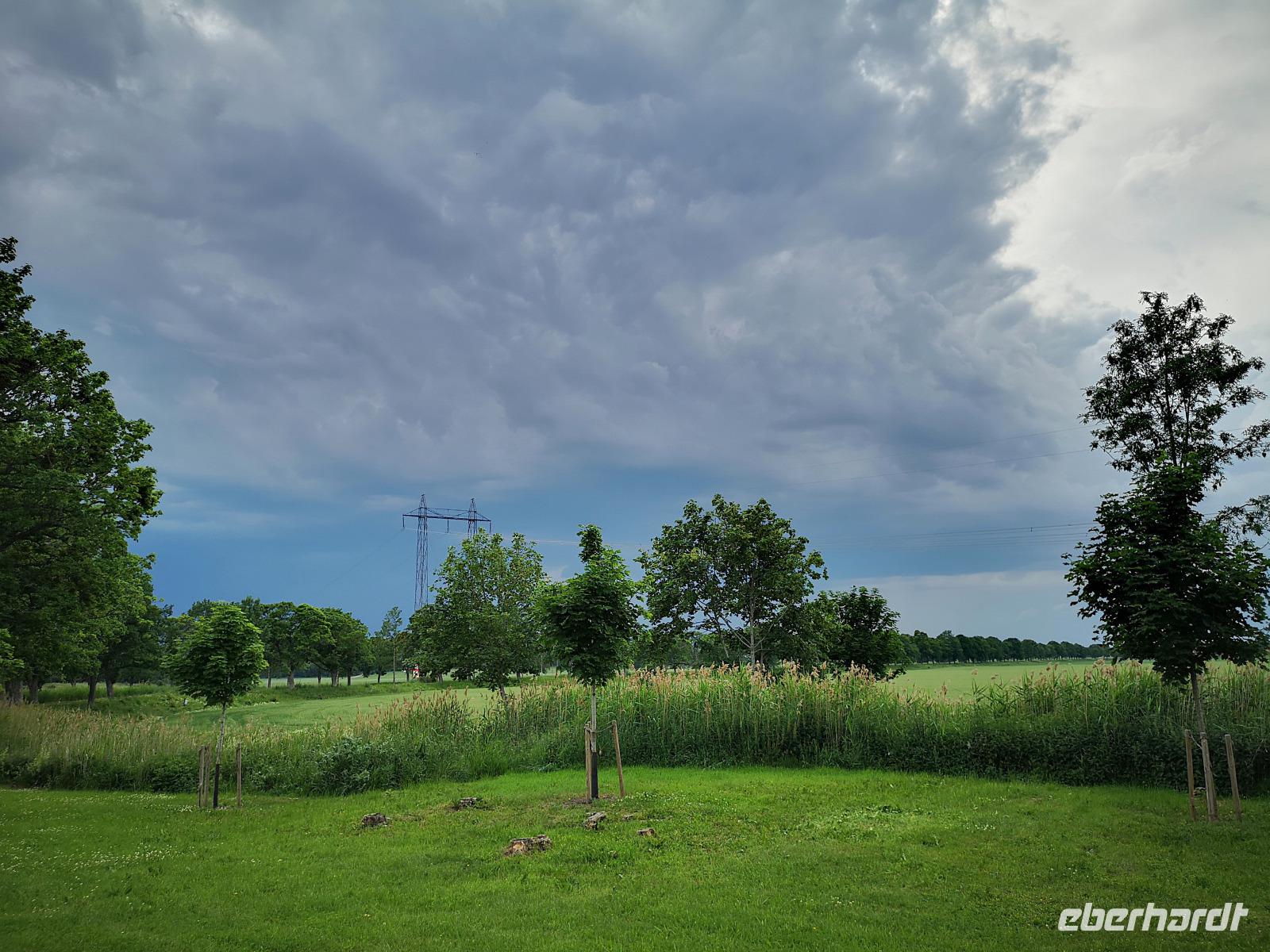 Nun folgen ca. 23 km Radweg direkt am Ufer des Göta Kanals - angenehm zu fahren, und weiterhin mit schönen Eindrücken; der Weg führt vorbei an Schleusen, Schiebebrücken und Aquädukten („Wasserbrücke" über der Straße). Aber oh weh.... der Himmel verdunkelt sich zushends und alle treten kräftig in die Pedale, um wenigstens die Bergs slussar trocken zu erreichen. Die 7-Kammern-Schleusentreppe „Carl Johan Slussen" von Berg wird nur noch am Rande wahrgenommen, denn es beginnt bereits zu regnen. Nach rasanter Abfahrt Richtung Roxensee trifft man sich schließlich unter dem Terrassendach eines Cafe´s und ist erstmal „gerettet". Es regnet heftig und es ist außredem spät geworden, so daß wir entscheiden, die Räder zu verladen und mit dem Bus nach Linköping ins Hotel zurück zu fahren.