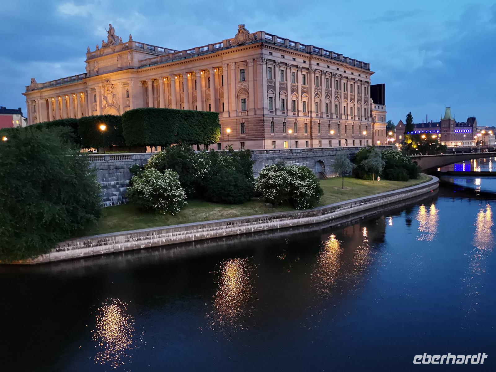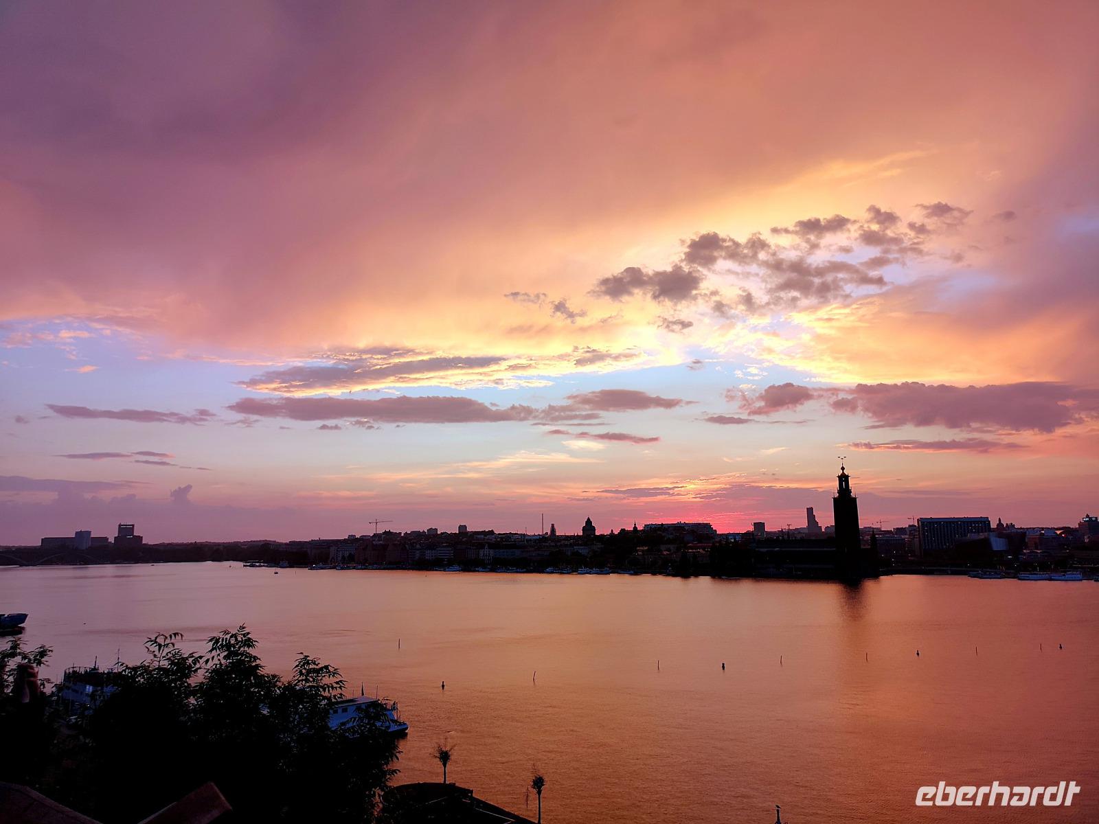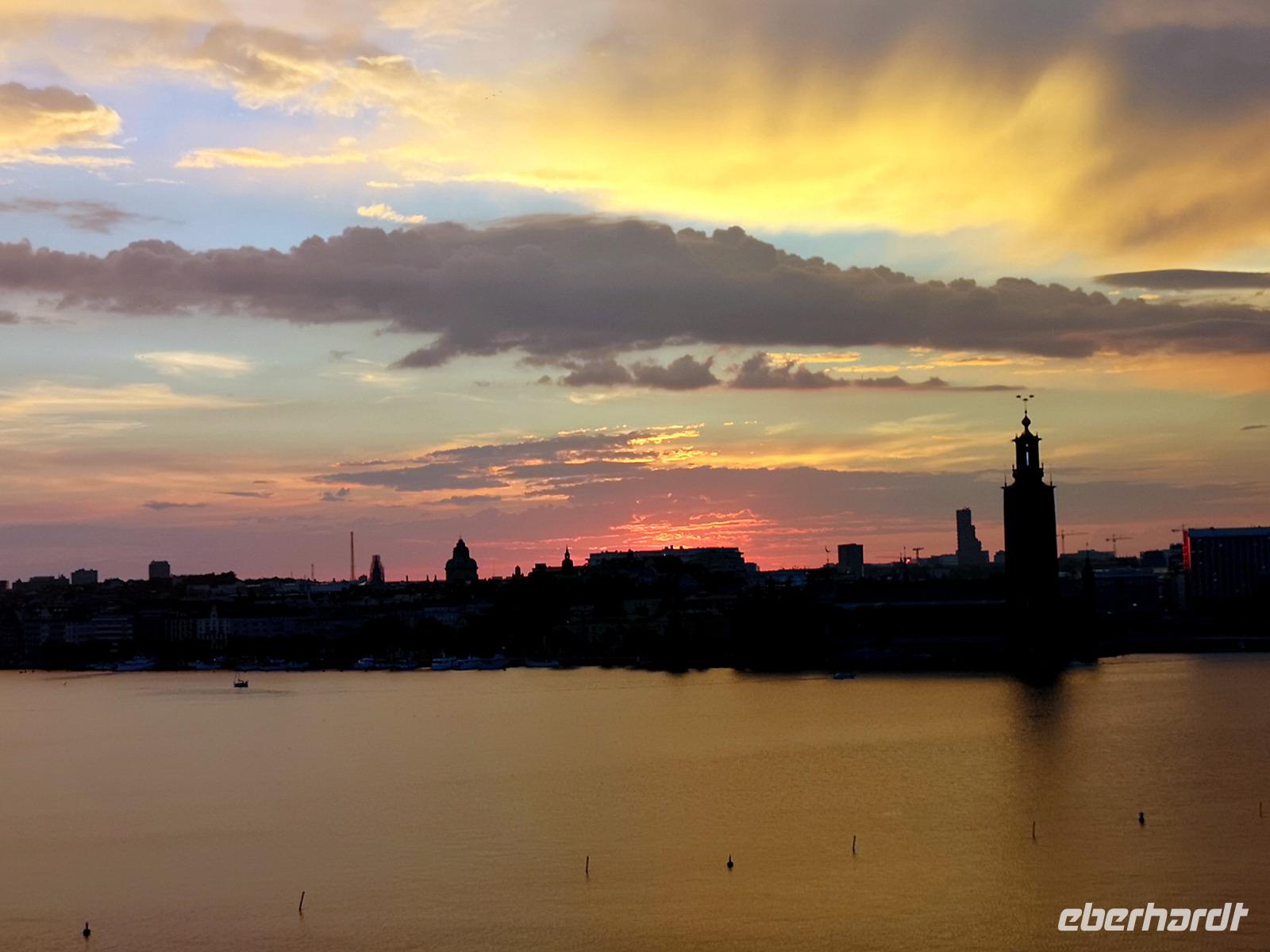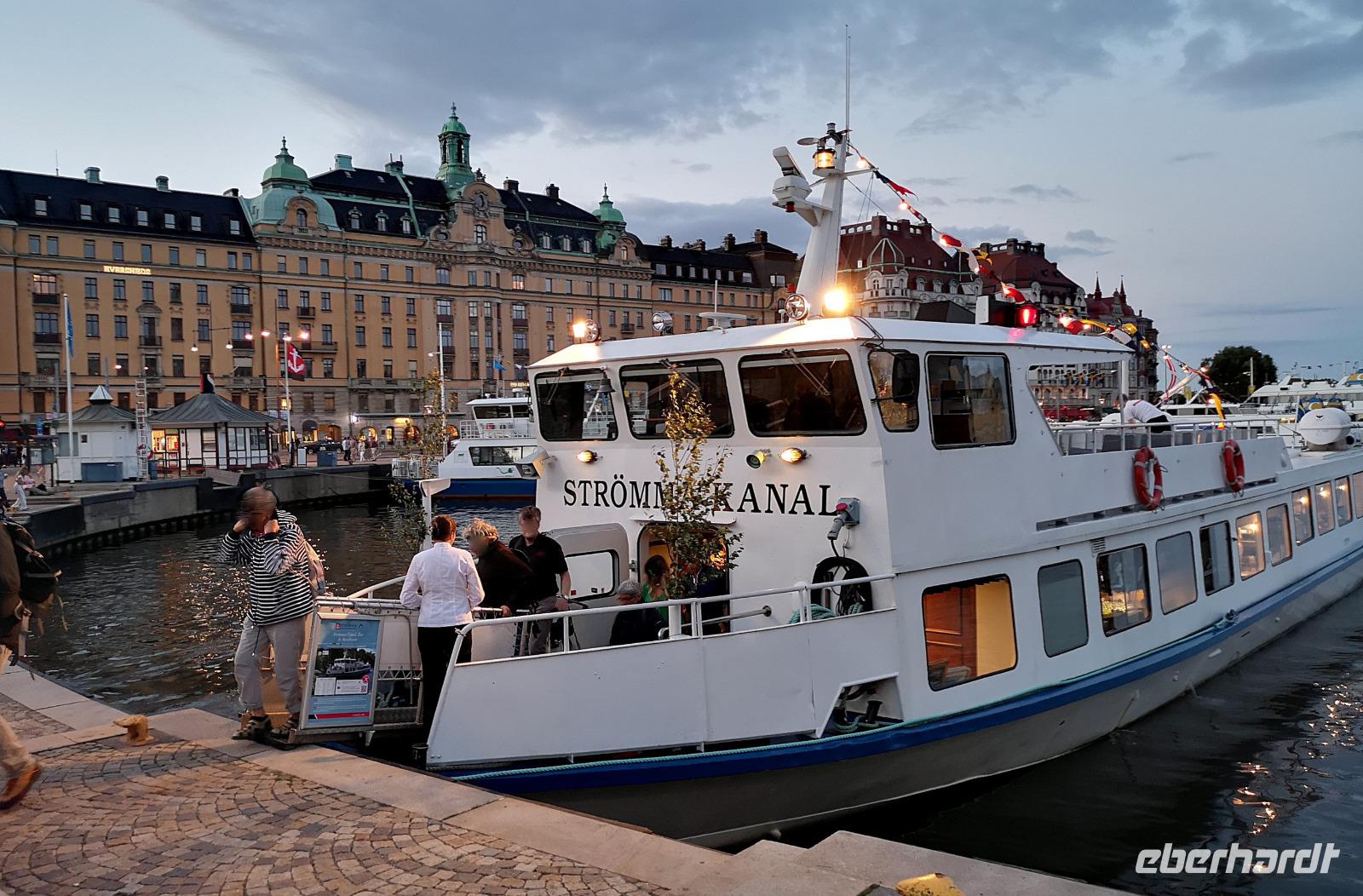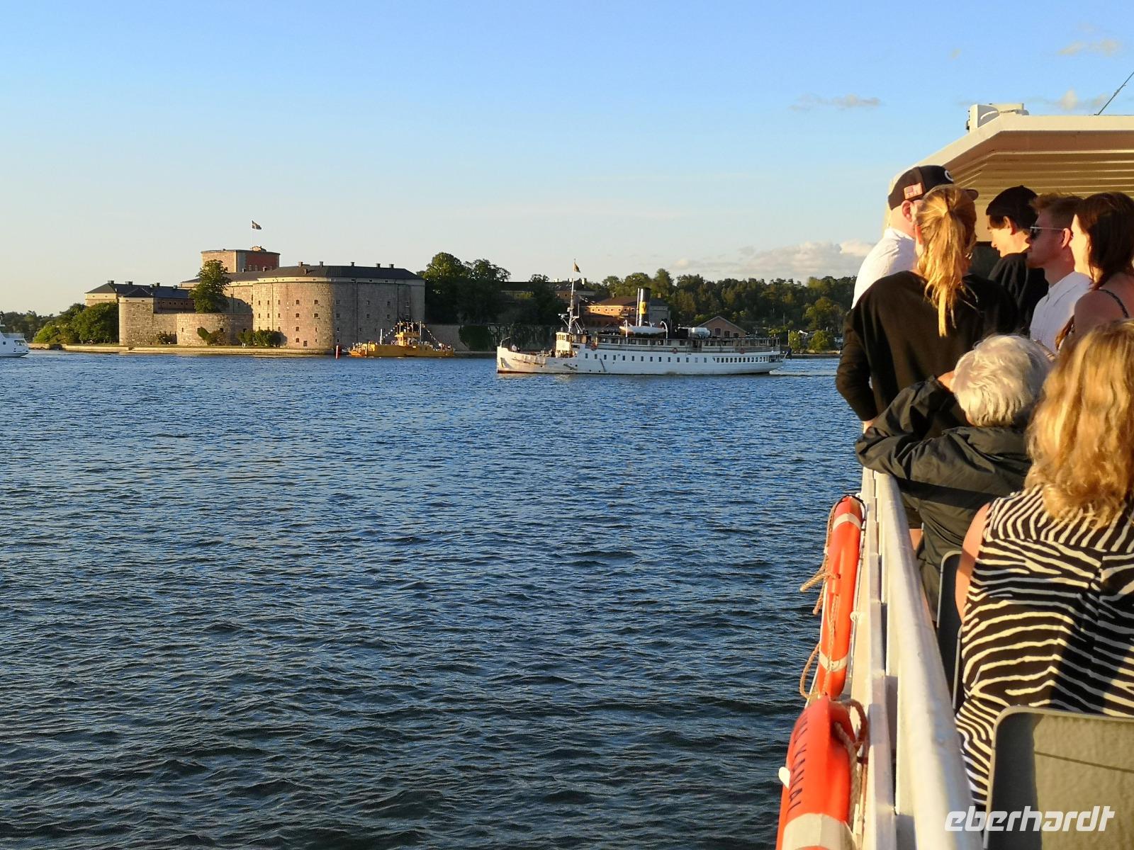 Trotz großen Andrangs schaffen wir es, rechtzeitig am „Tingsvallen" zu sein, um das Spektakel von Beginn an mitverfolgen zu können. Ab hier geht jeder seine eigenen Wege, feiert mit, nimmt eines der zahlreichen Gastroangebote wahr, spaziert durch den Tierpark, oder läuft ca. 15Min zu Fuß ins Stadtzentrum. Es ist reichlich Zeit, denn wir treffen uns erst um 19:00 Uhr wieder am „Nybrokajen 10", wo aus die dreistündige Schärenkreuzfahrt mit Krabben-Buffett beginnt. An dieser Stelle möchte ich ausnahmsweise nichts beschreiben, denn die Abendstimmung zu dieser Jahreszeit ist wirklich unbeschreiblich schön. Das muß man selbst erlebt haben! Die Rückfahrt zum Hotel erfolgt mit der „rosa Linie", der „Pendeltâg". Um Mitternacht dürfen sich alle zufrieden zur Nachtruhe begeben.