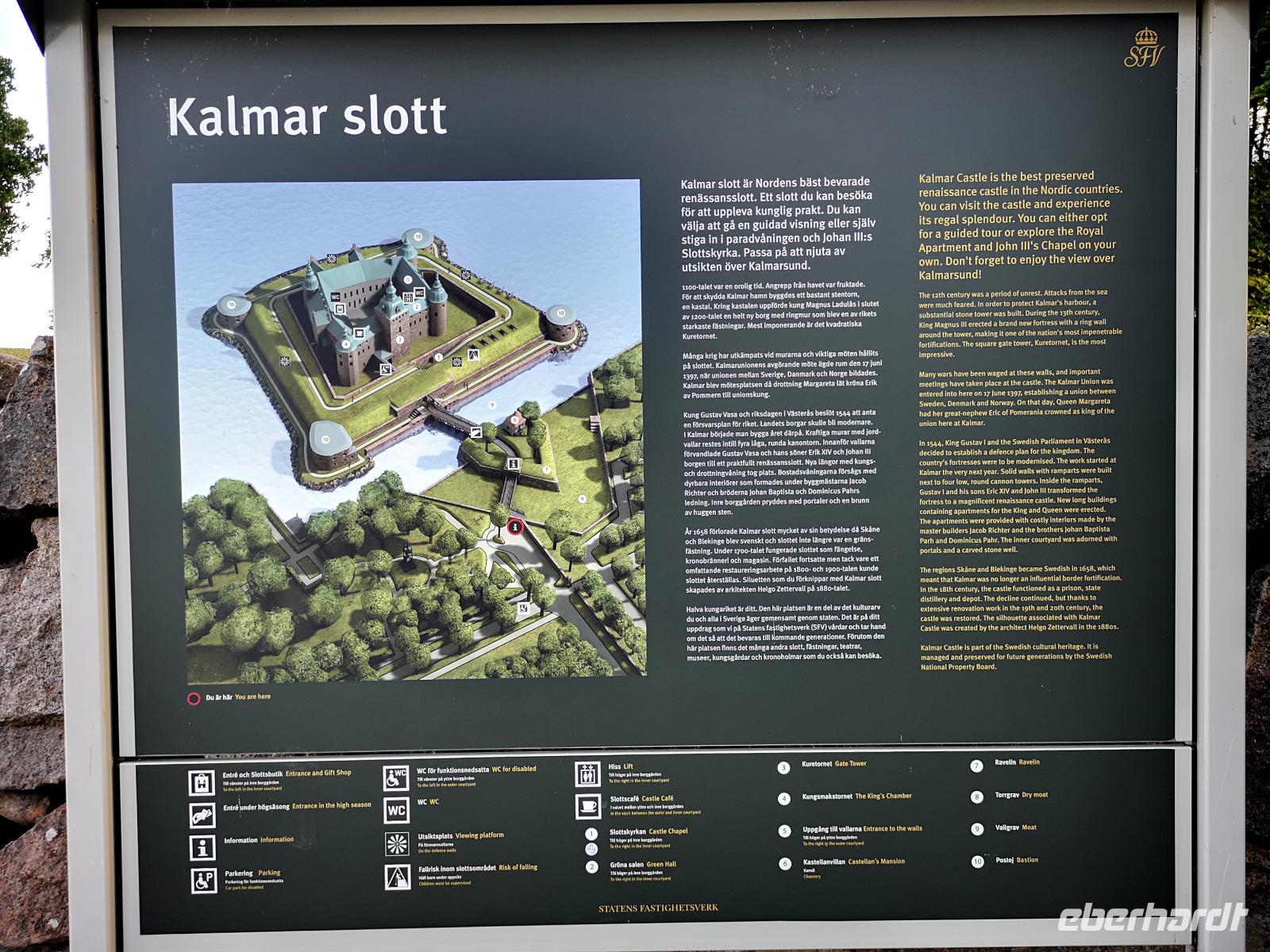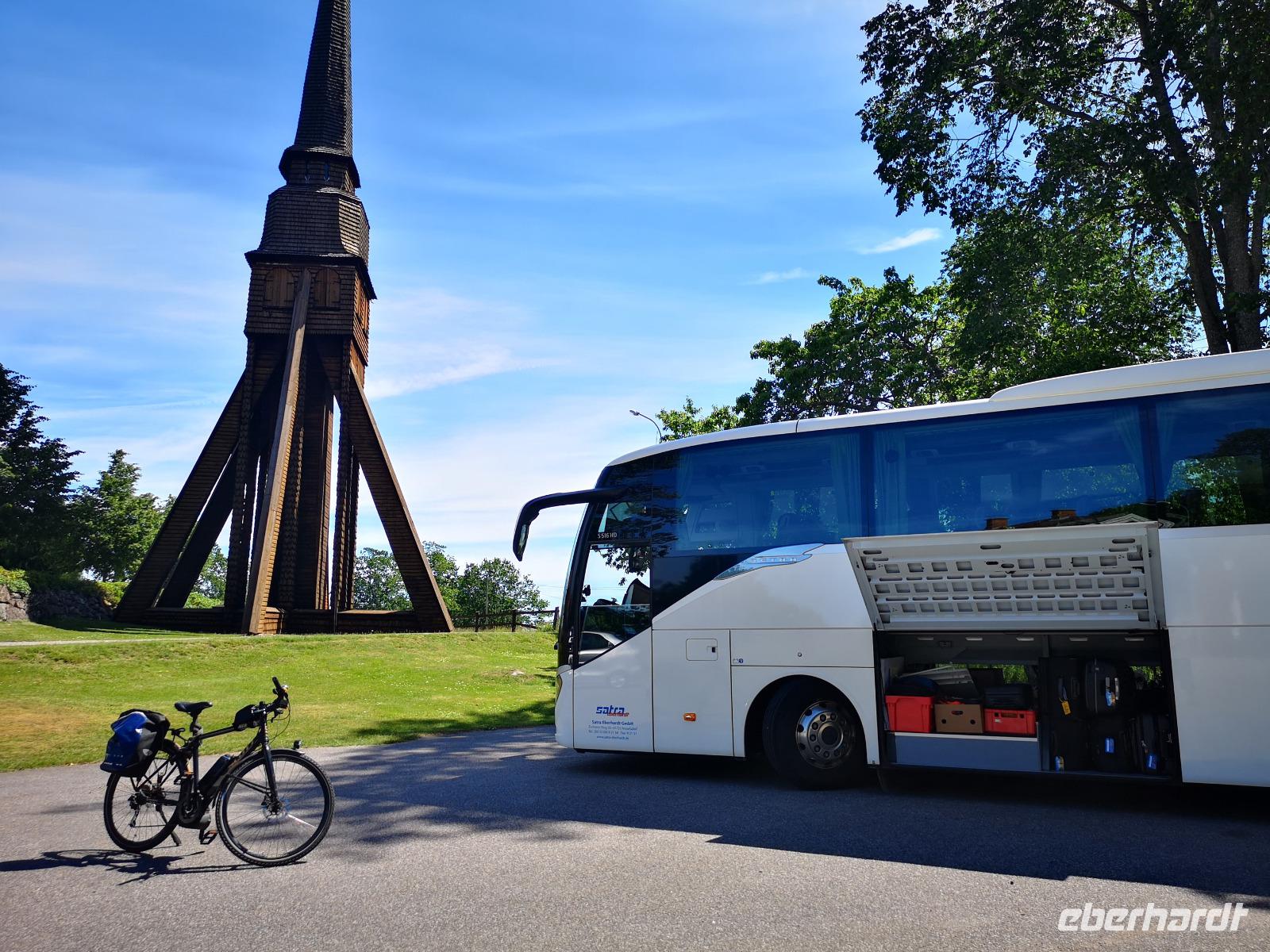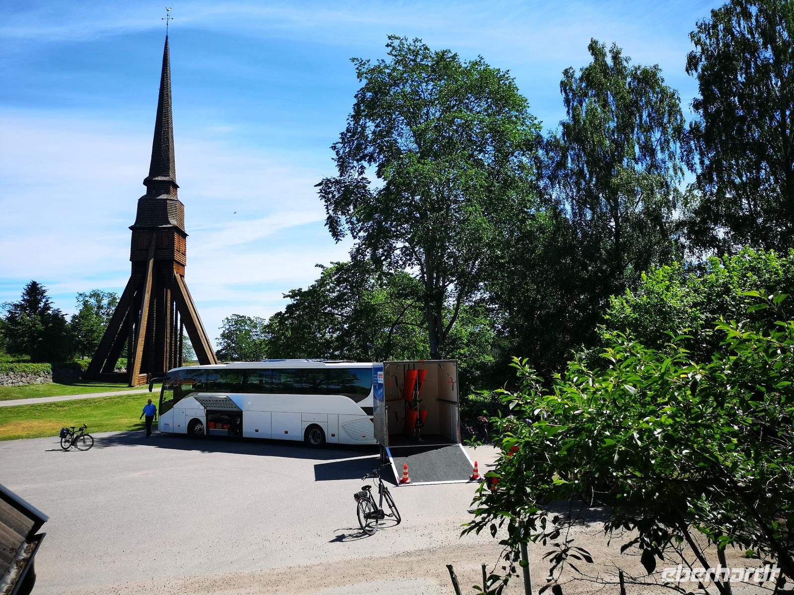 Wir radeln noch ein kleines Stück bis Rumskullaeken, wo wir der „1000-jährigen Eiche" („Kvilleken") einen Besuch abstatten. Um halb sechs in Rumskulla steigen wir in den Bus zur noch anstehenden Fahrt bis Kalmar. Gut zwei Stunden dauert es noch, bis wir in unserem Hotel in Kalmar ankommen. Das sehr sehenswerte Kalmar Slott ist fußläufig in weniger als 15Min. Erreichbar.