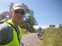 Das Wetter ist fantastisch und so steigen wir um 13:00 motiviert auf die Räder. Unser Reiseleiter möchte uns heute zu einer idyllische Stelle am Mälarenufer führen. Der Weg wird schlechter, das Etappenziel scheint auf dem eingeschlagenen Weg nicht erreichbar, und zu allem Überfluß ziehen auch heute wieder dicke Regenwolken auf. Also doch lieber kehrt machen, aber der Regen holt uns ein und die Gruppe sucht Schutz in einer am Weg gelegenen Scheune. Der Regen will nicht aufhören, weshalb uns Thomas mit dem Bus aus der mißlichen Lage rettet. Dann fahren wir eben im Bus zum Schloß Taxinge, und im Anschluß noch knapp eine Stunde zu unserem Hotel in Strockholm.